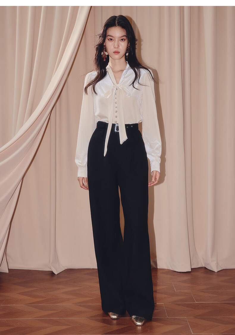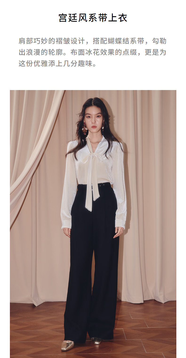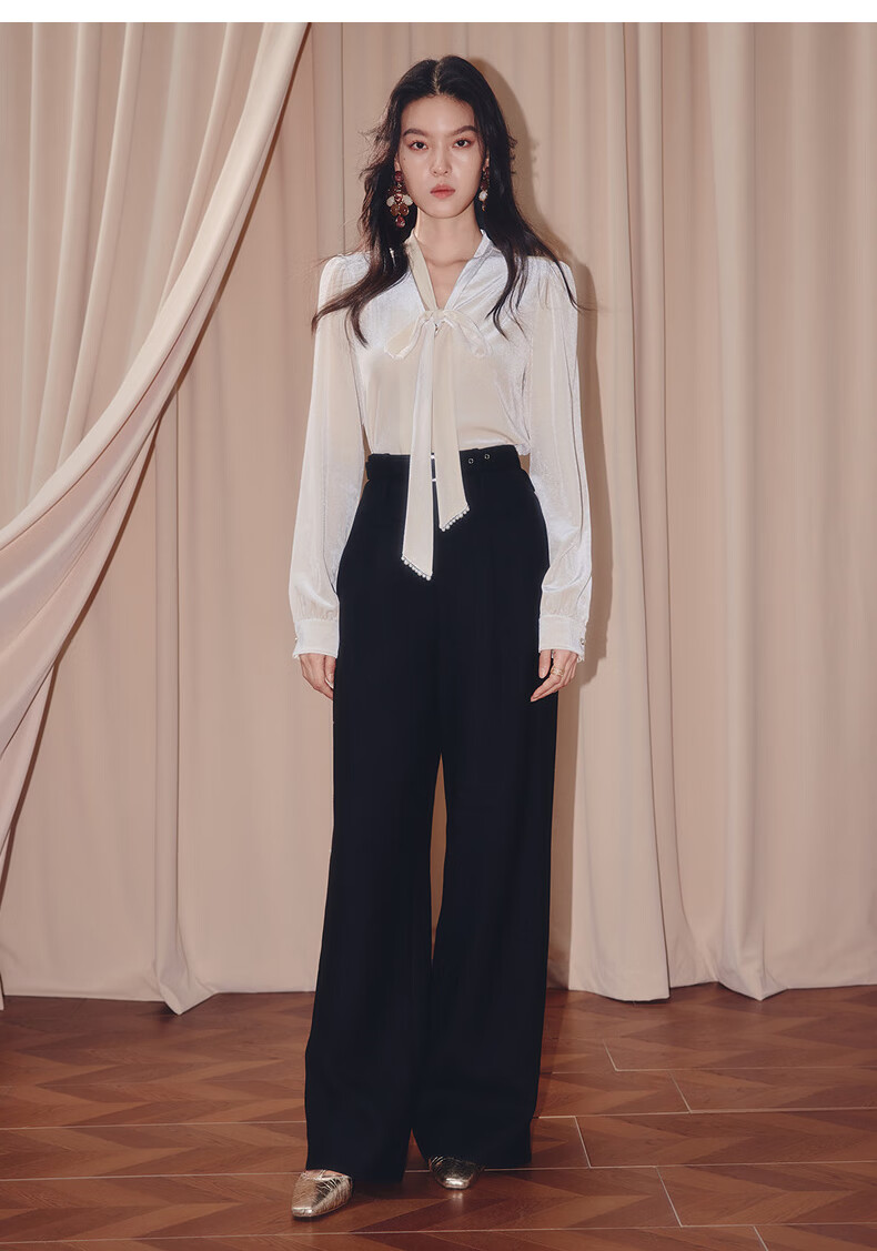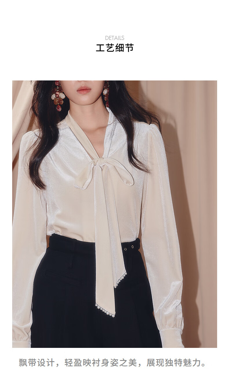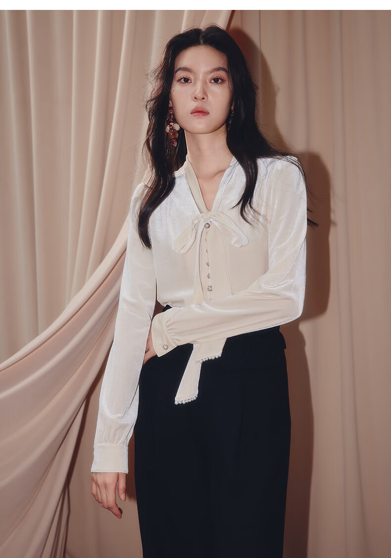 MAXRIENY French retro v-neck velvet shirt 25 winter commuting wear loose tie long-sleeved top off-white M