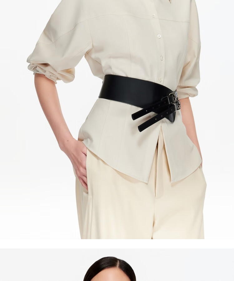 VEROMODA shirt 2025 winter new style detachable waist rope high-quality tops vertical cut version surface texture 325405012 Eiger white M