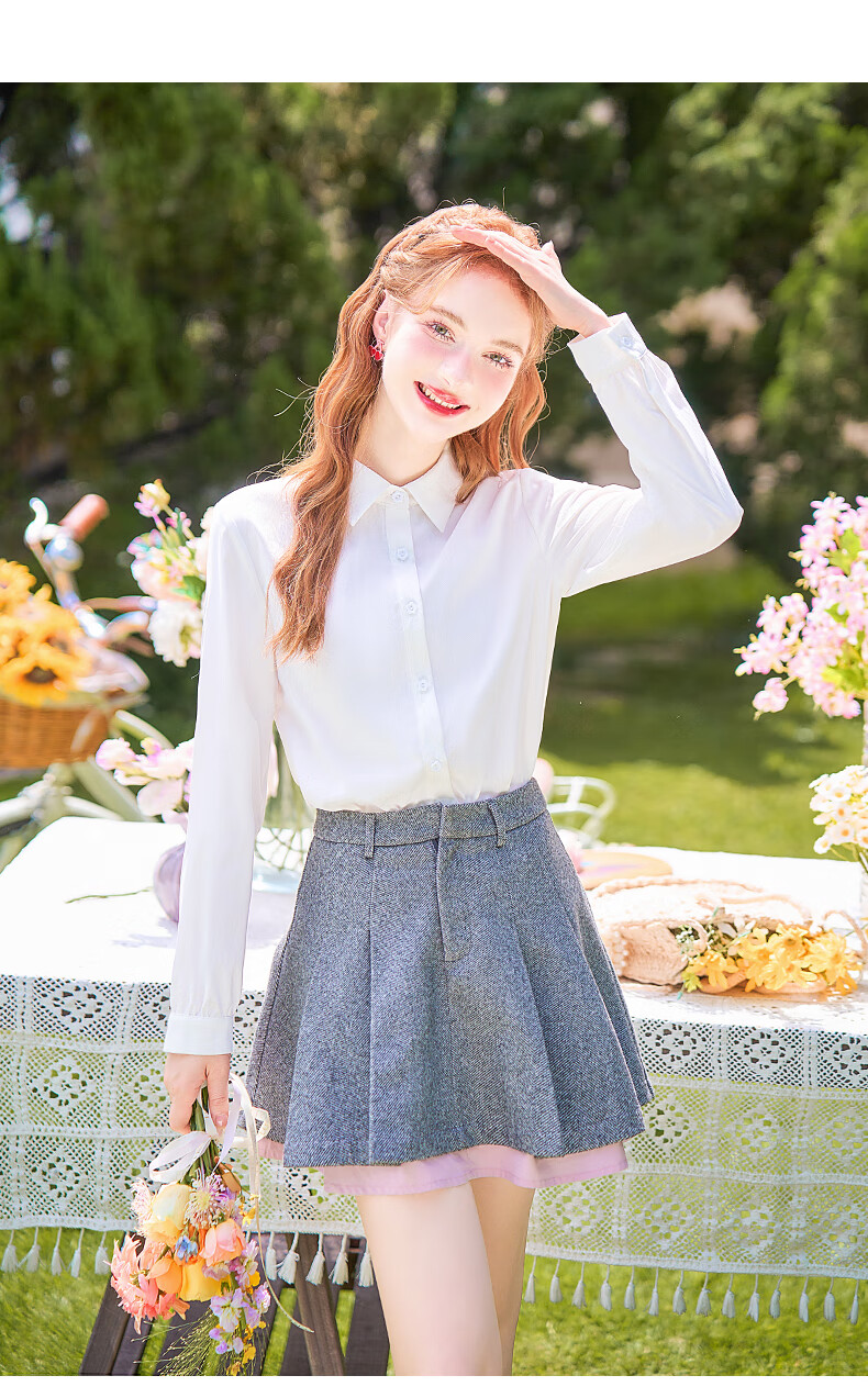 Ge Yini 2025 autumn and winter new shirt women's French white casual petty bourgeoisie style versatile bottoming shirt white shirt top white S