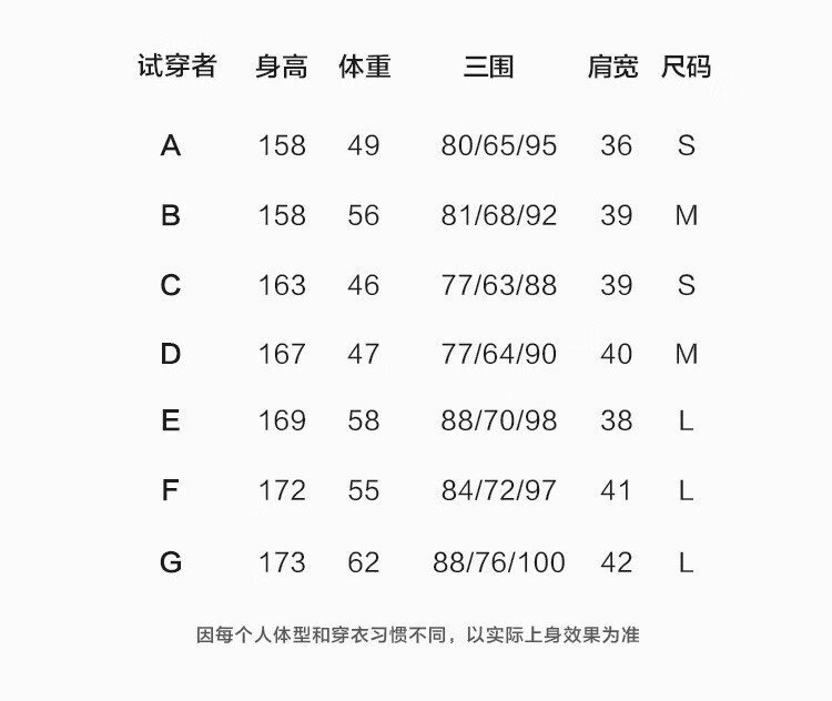 China (cm) 160-165/84-86 165-170 / 88-90 167-172 / 92-96 168-173 / 98-102 170-176 / 106-110