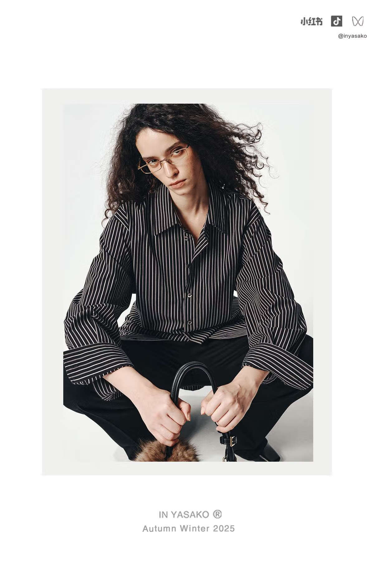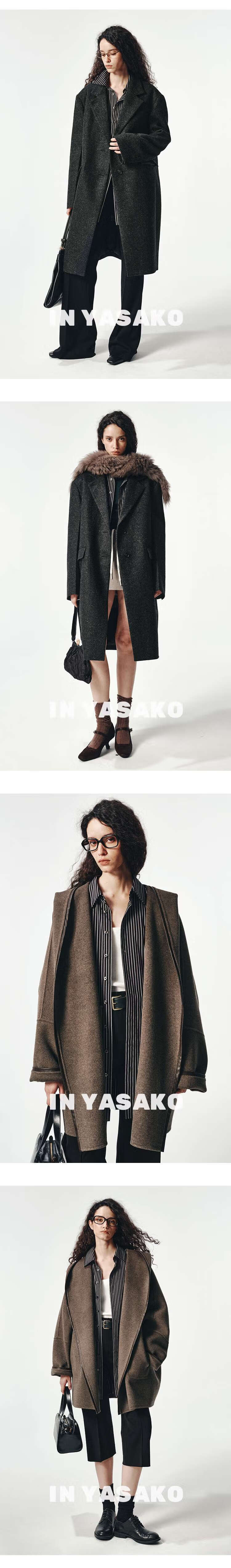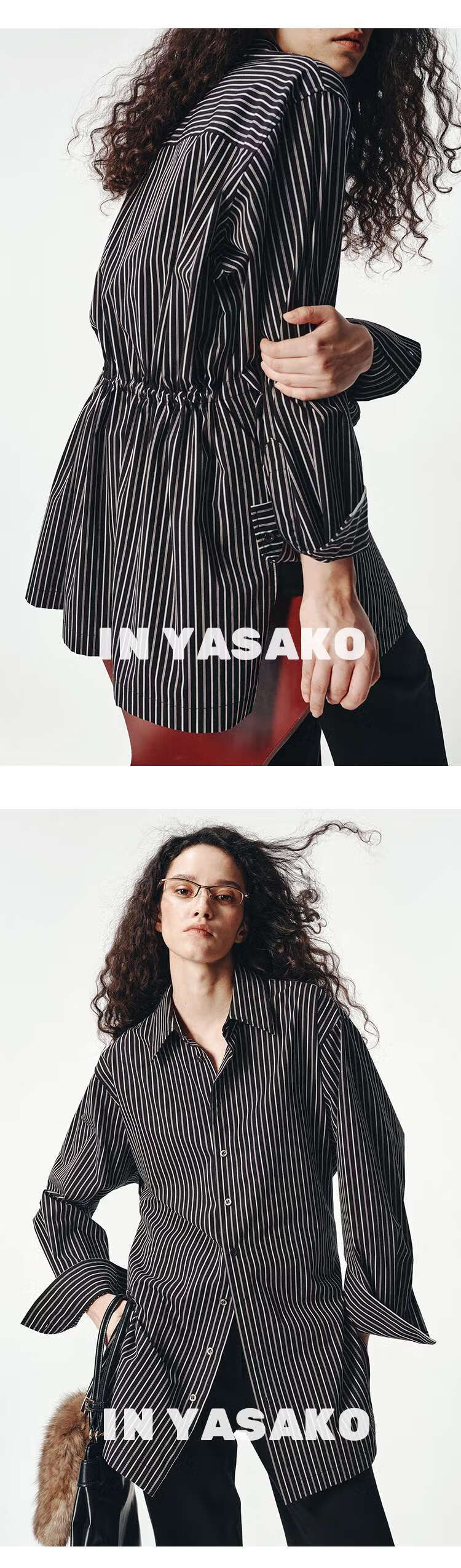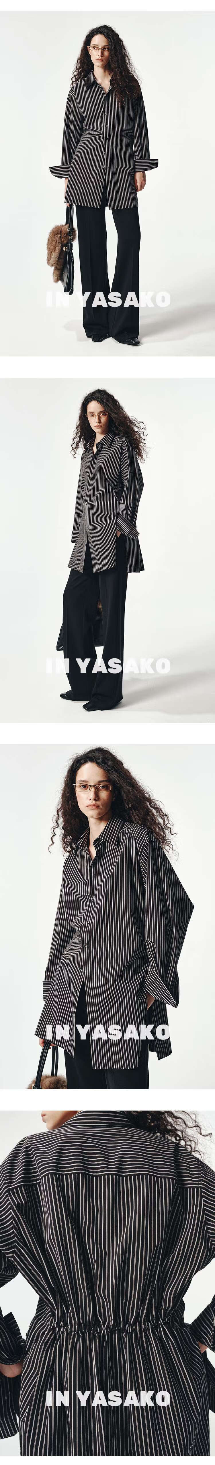 IN YASAKO metropolitan yarn-dyed striped large-size drawstring jacket-like shirt New York black and gray stripes (pre-10.12-10.19) S