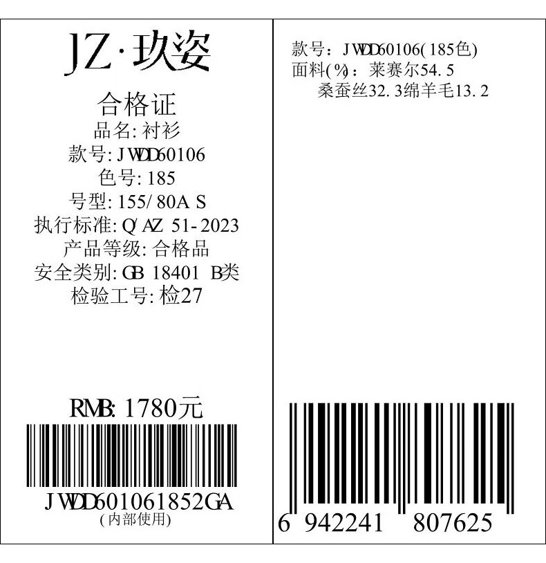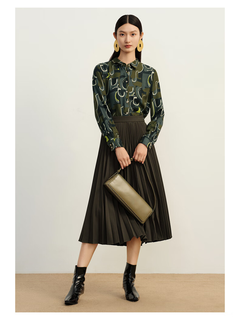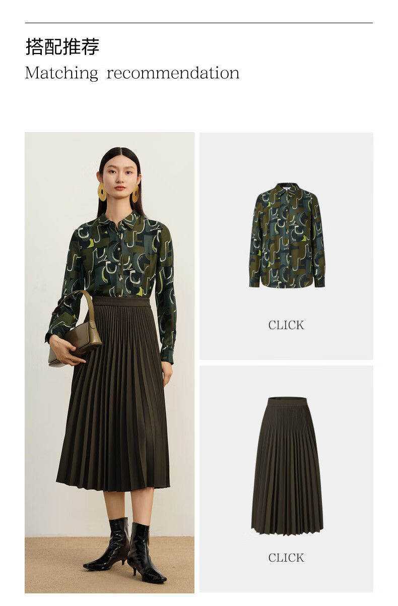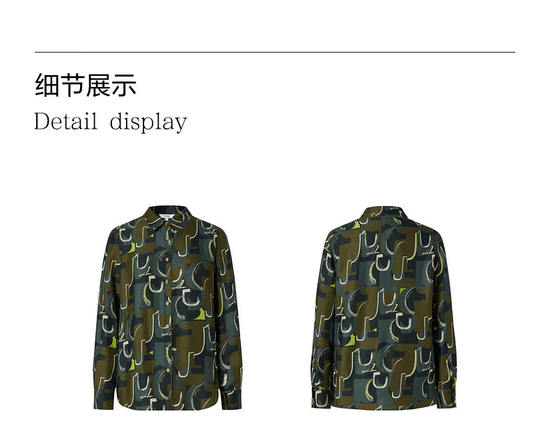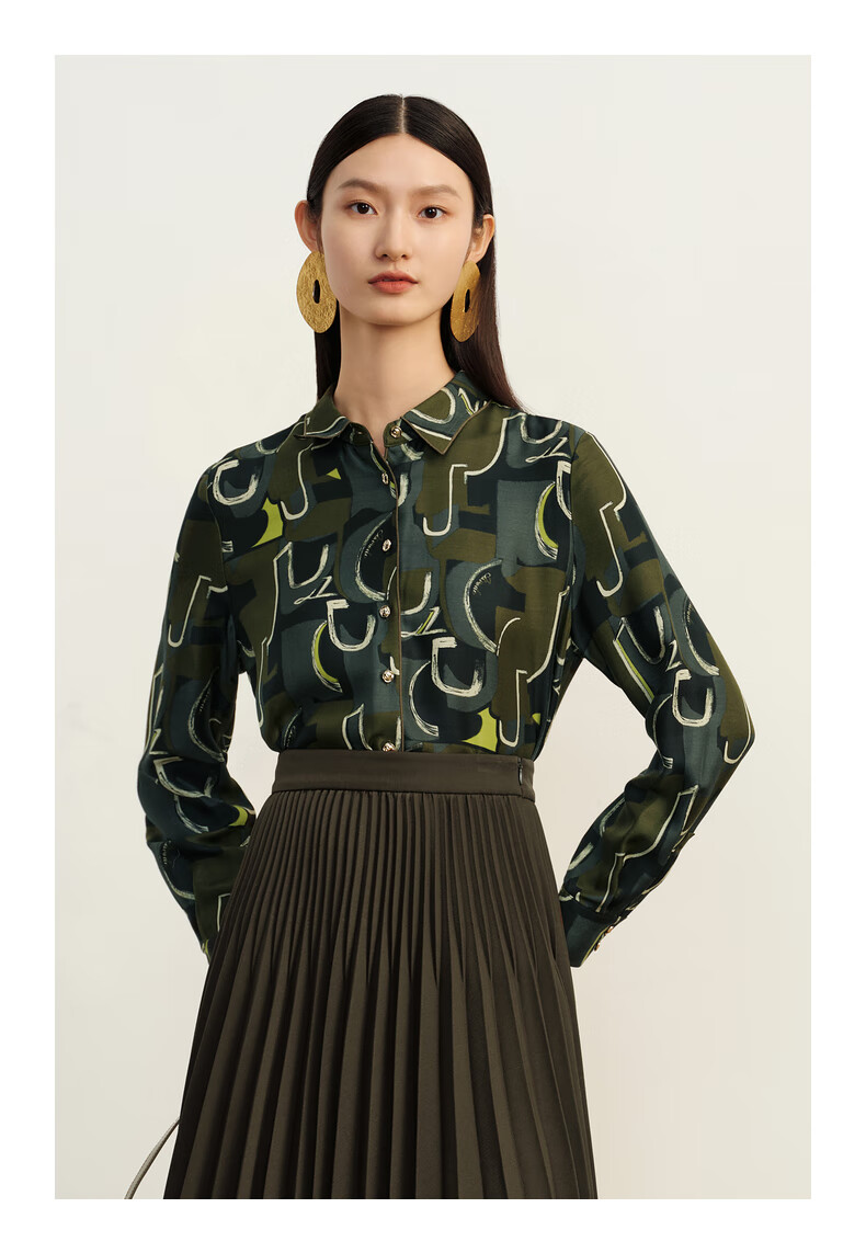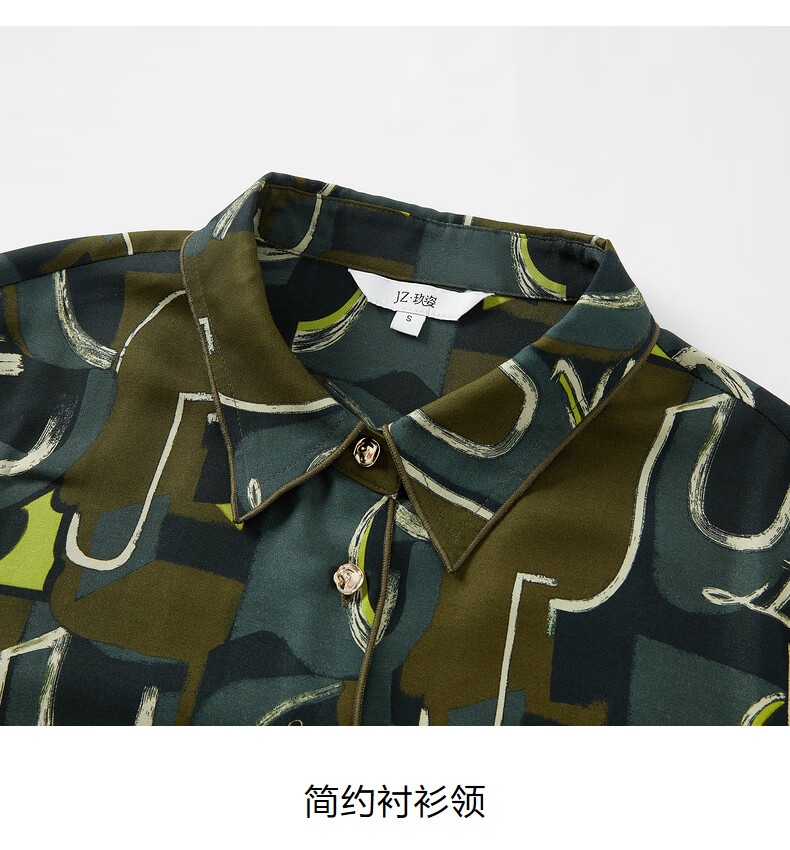 JUZUI Shopping Mall Same Style JZ JUZUI Geometric Eco-friendly Lyocell Wool Shirt Women 2023 Winter JWDD60106 Flower Army Green L