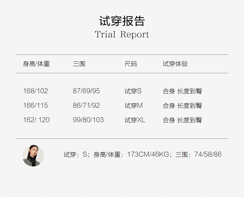 China (cm) 160-165/84-86 165-170 / 88-90 167-172 / 92-96 168-173 / 98-102 170-176 / 106-110
