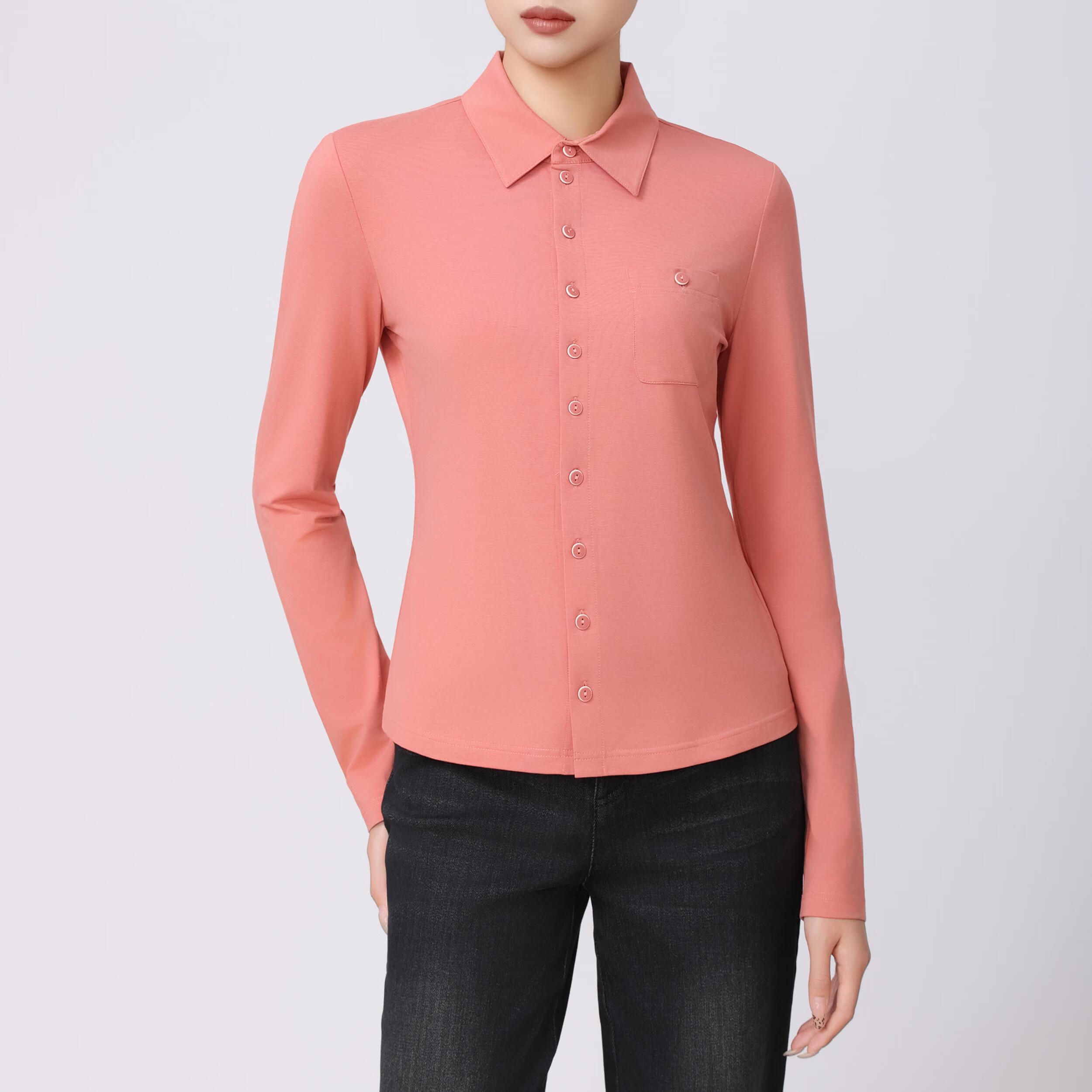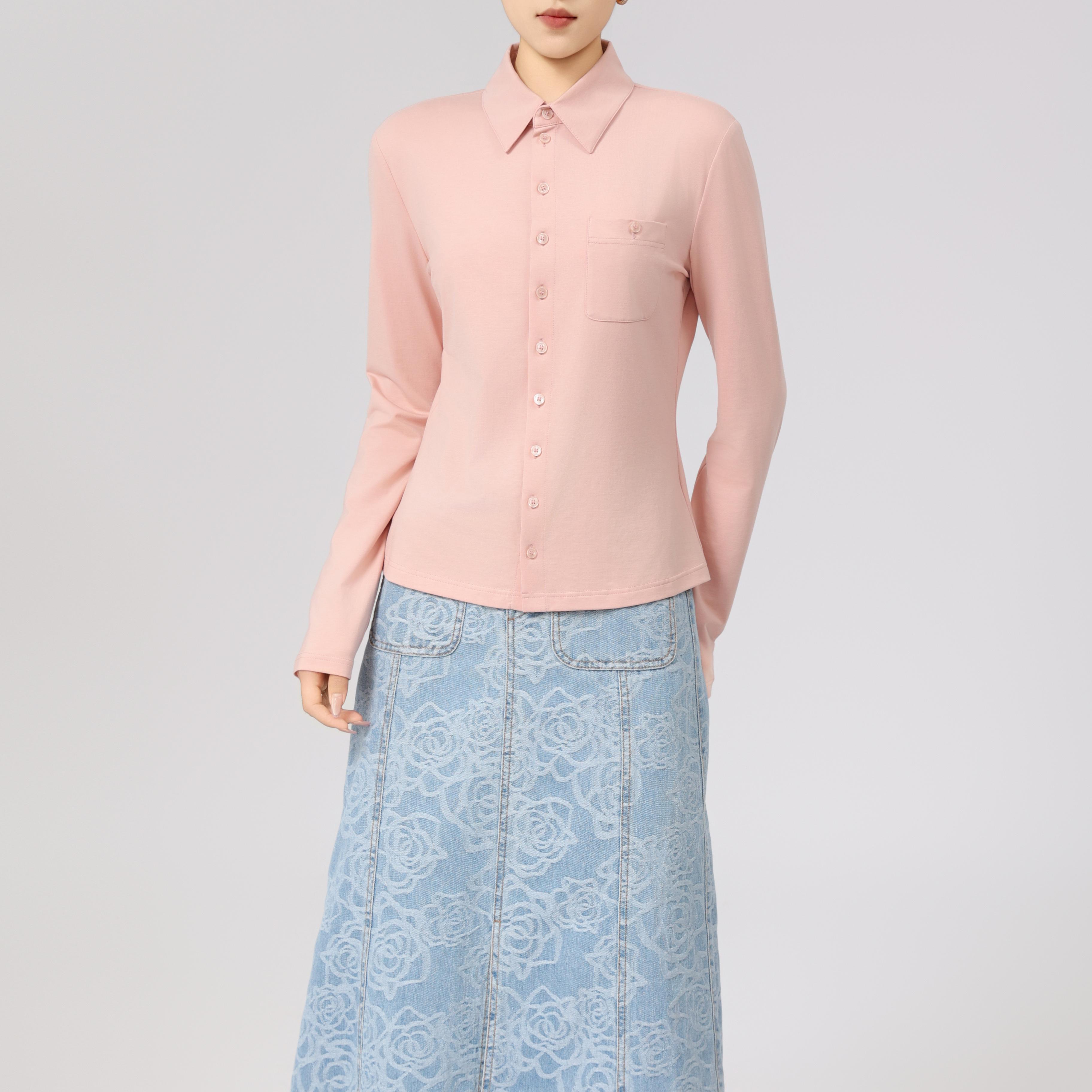 GIRDEAR/Brother solid color versatile simple niche design slim long-sleeved romantic shirt 1300820 black one size L four sizes