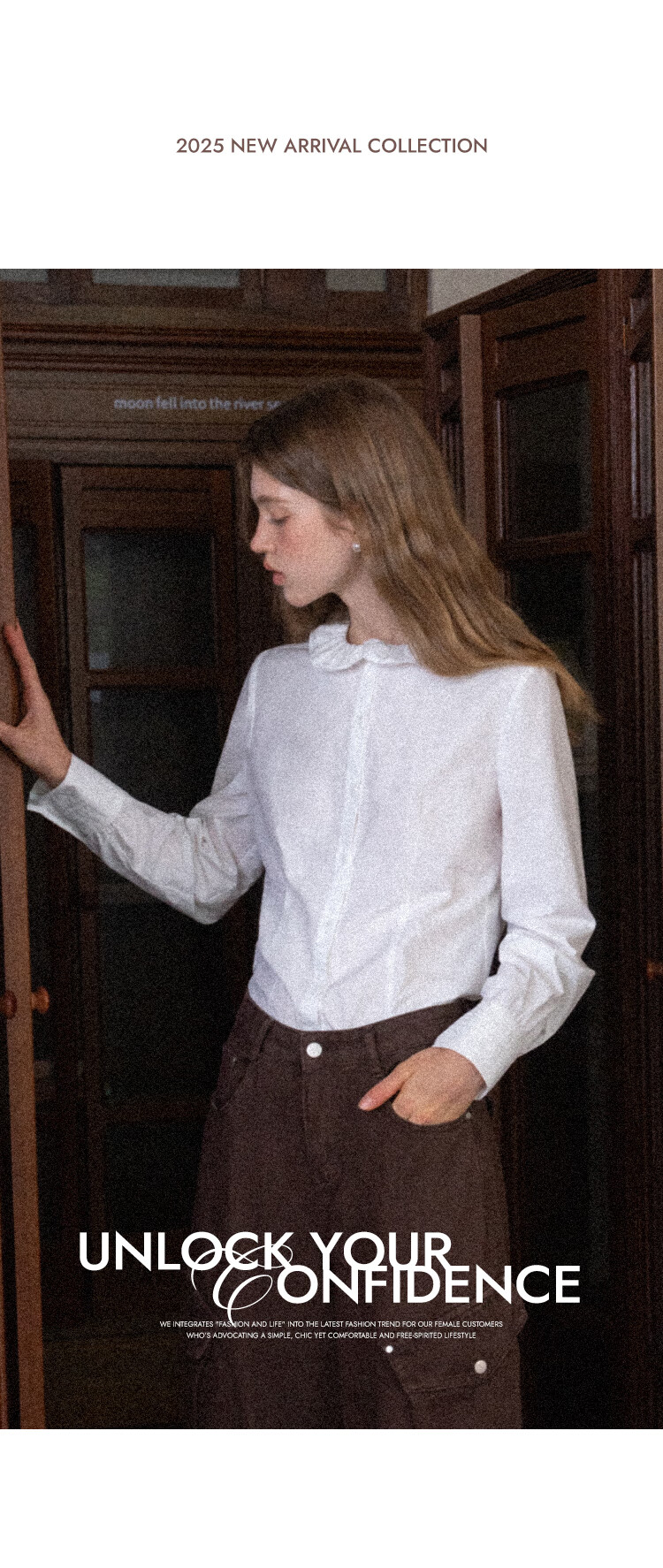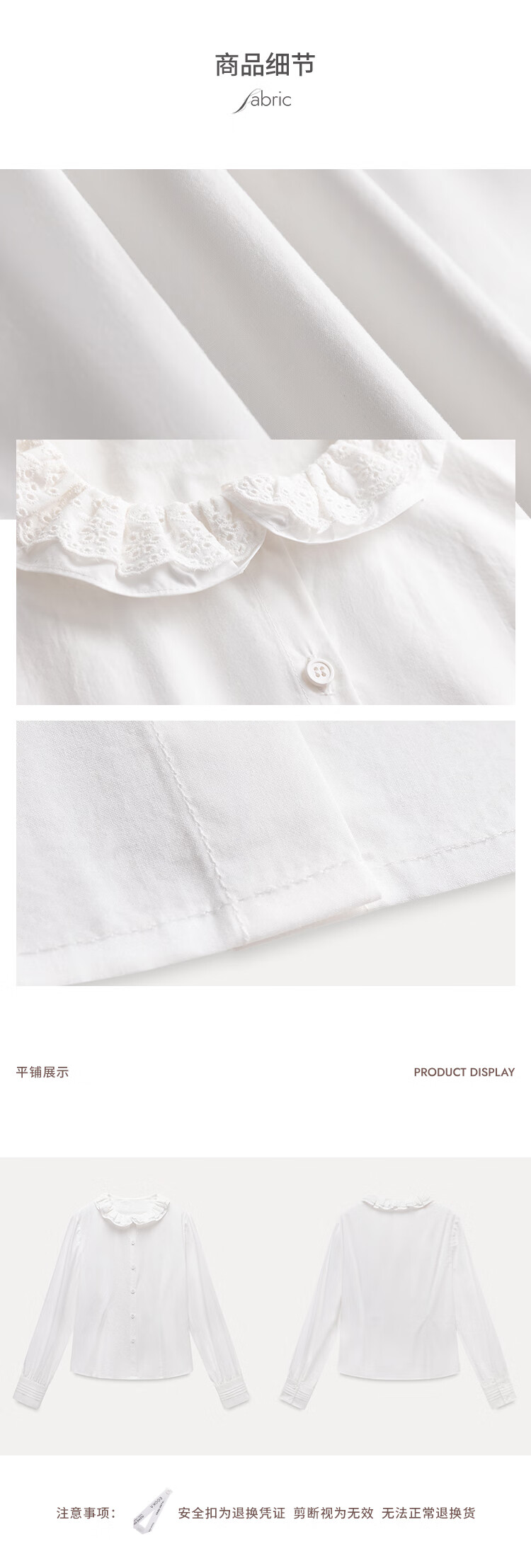 EGGKA French lace collar white shirt, slim and loose, long-sleeved sweet top E25A6570YM White M