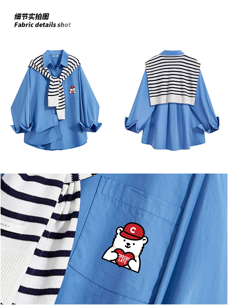 CHOCOOLATE it women's trendy brand high-end Korean wear shirt for women autumn and winter new design striped shawl shirt for women striped shawl + shirt M