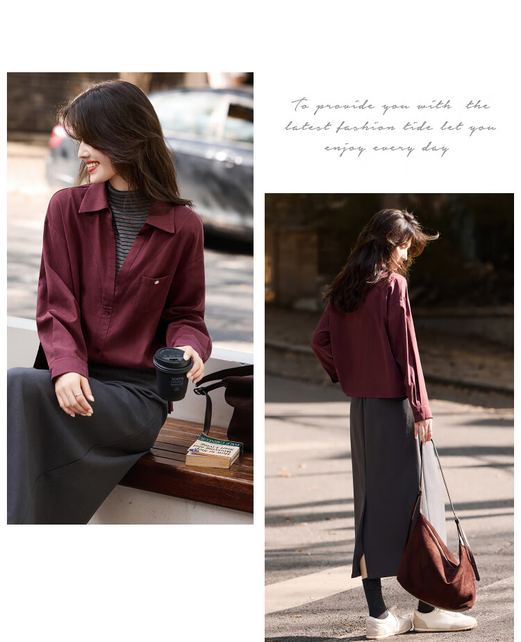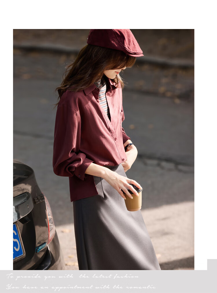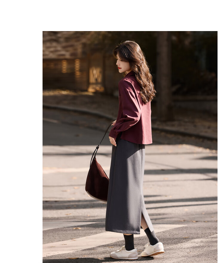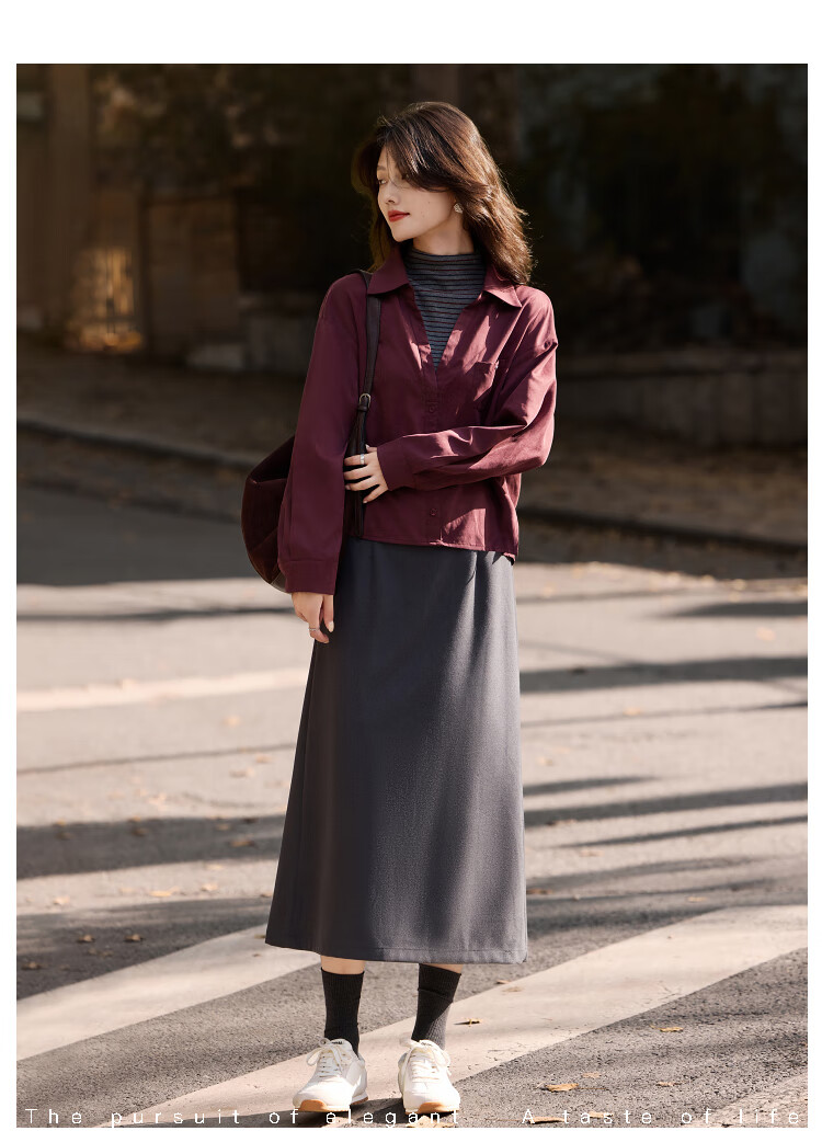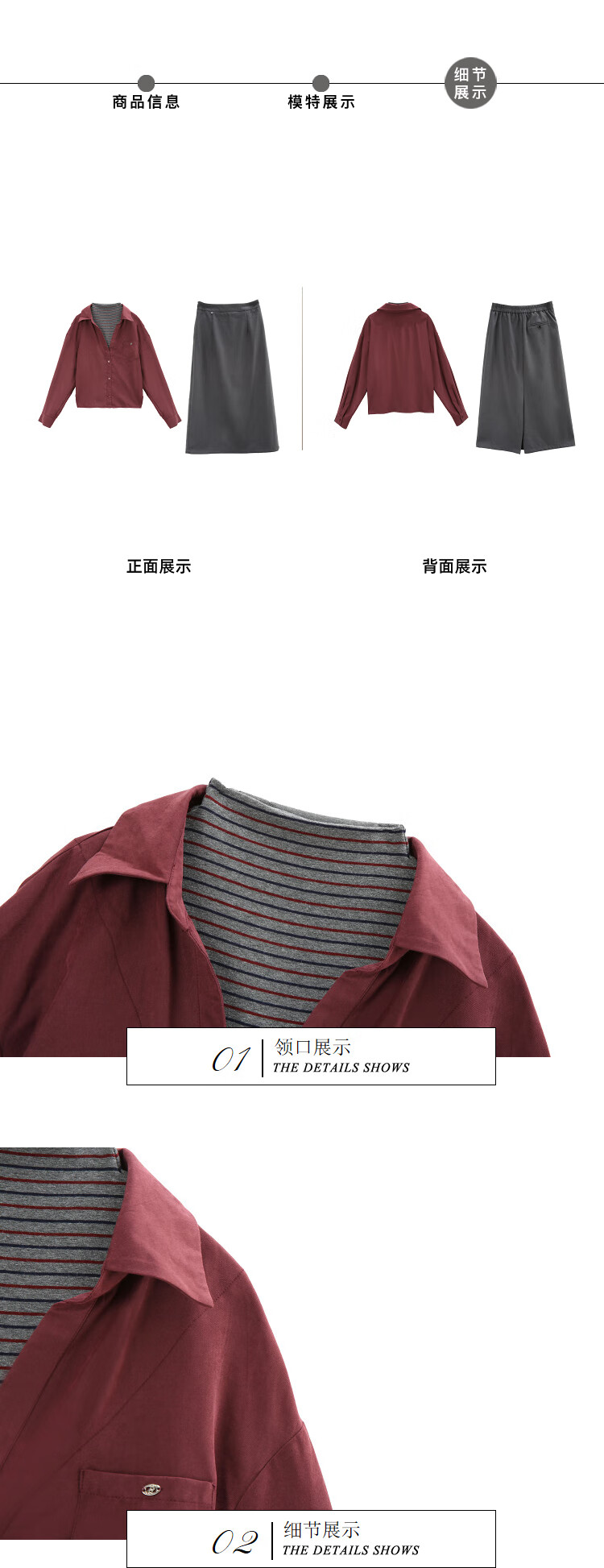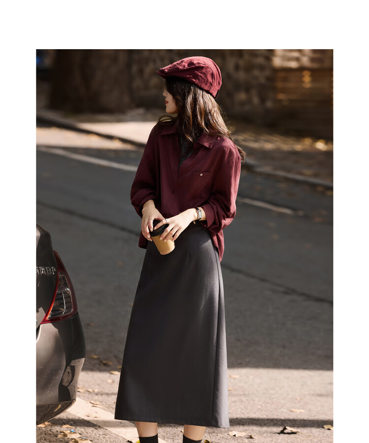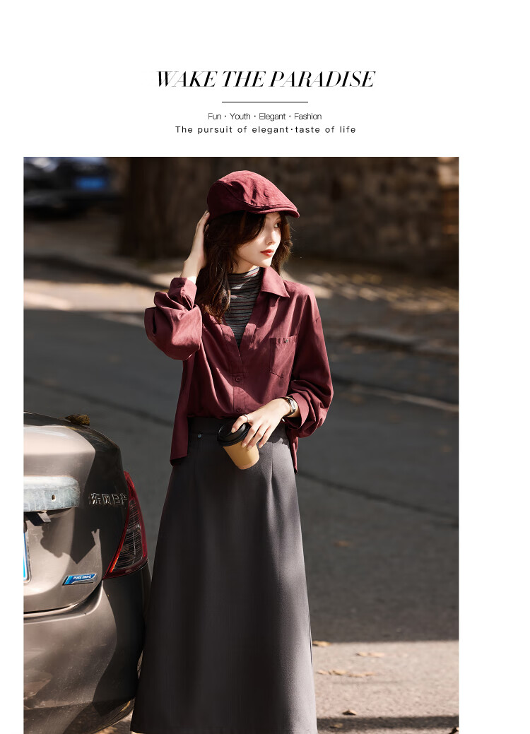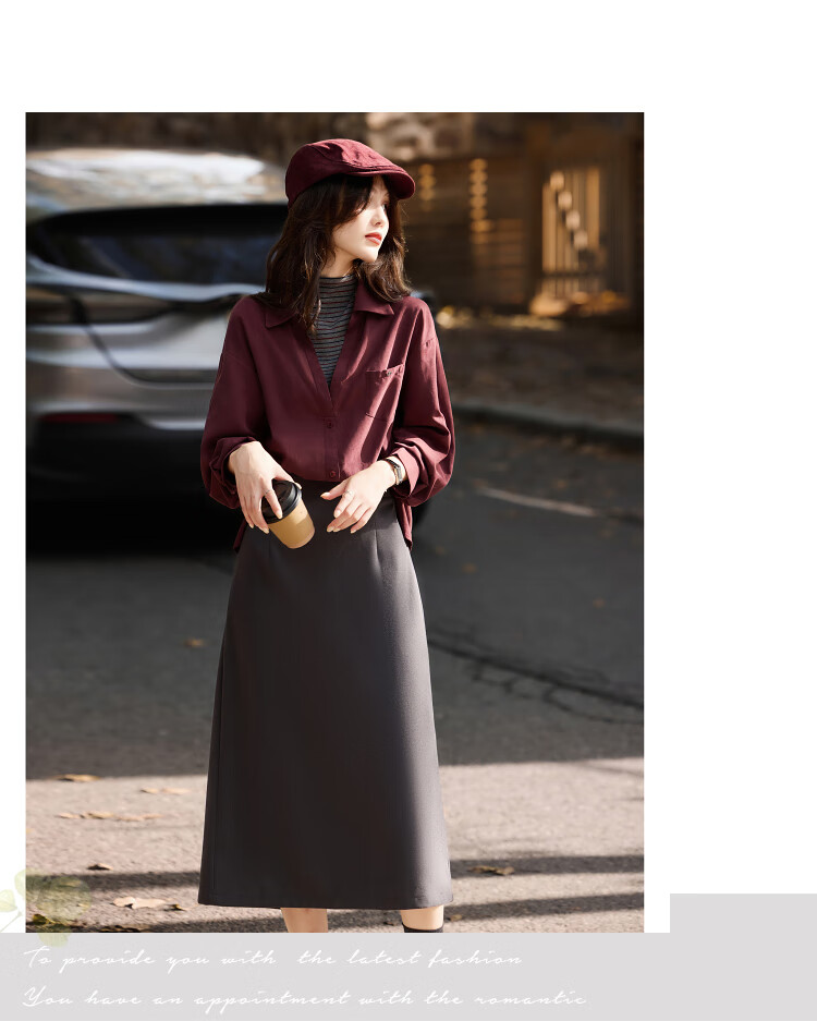 Awakening Paradise Fake Two-piece Shirt and Skirt Set Autumn and Winter Intelligent and Exquisite Retro Shirt A-Line Skirt Two-piece Set Gray S