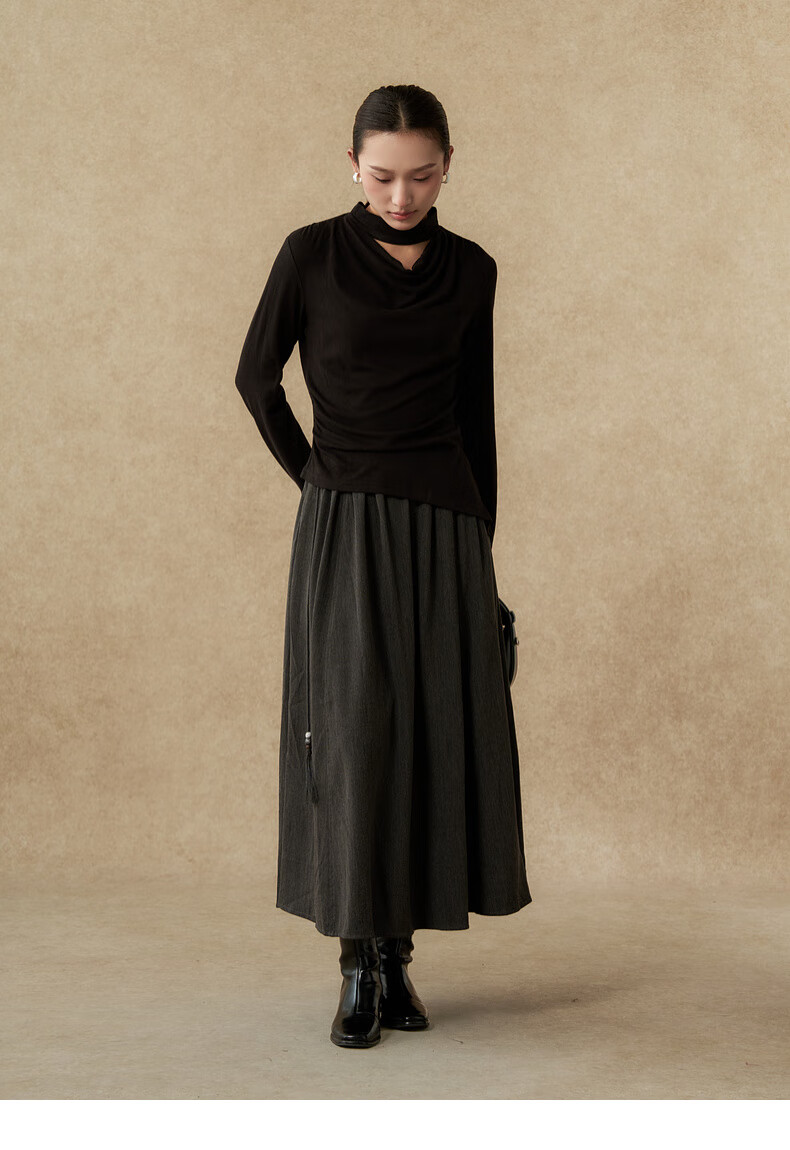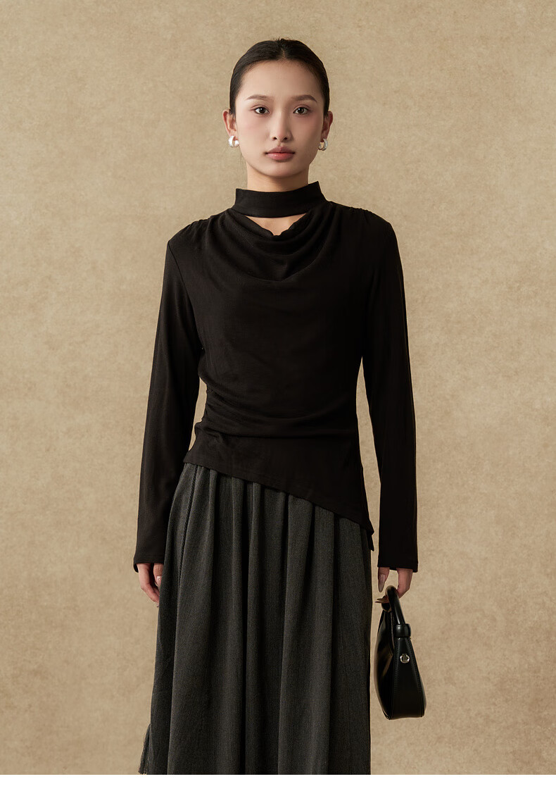 Nishimachi Muraya (SETIROM) Korean style women's blouse 2025 winter new style swing collar pinch pleated sexy top XHAD10445 dark gray one size