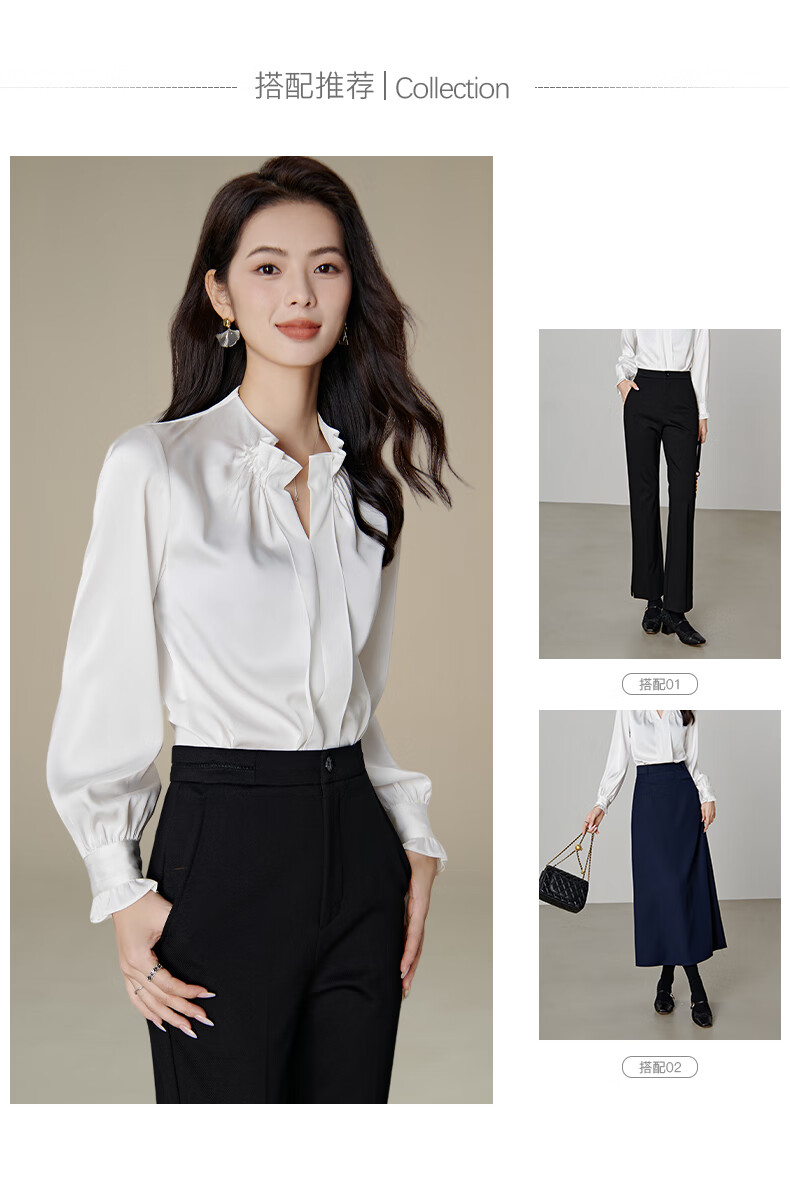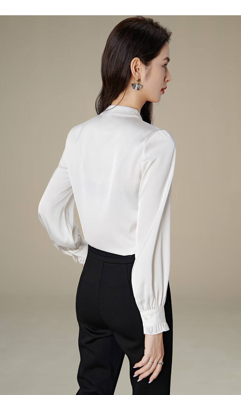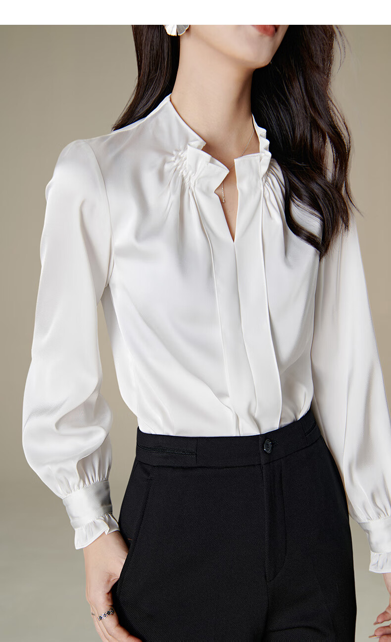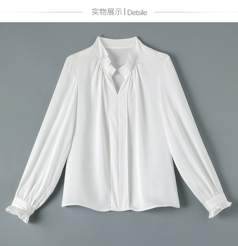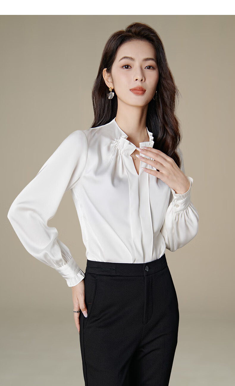 Late White New Product 2025 Autumn Solid Color Temperament Top Slim, Comfortable and Versatile Commuting Shirt for Women White XL