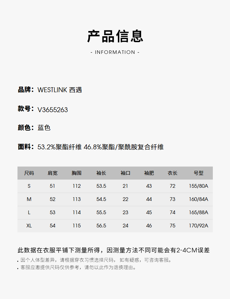 China (cm) 160-165/84-86 165-170 / 88-90 167-172 / 92-96 168-173 / 98-102 170-176 / 106-110