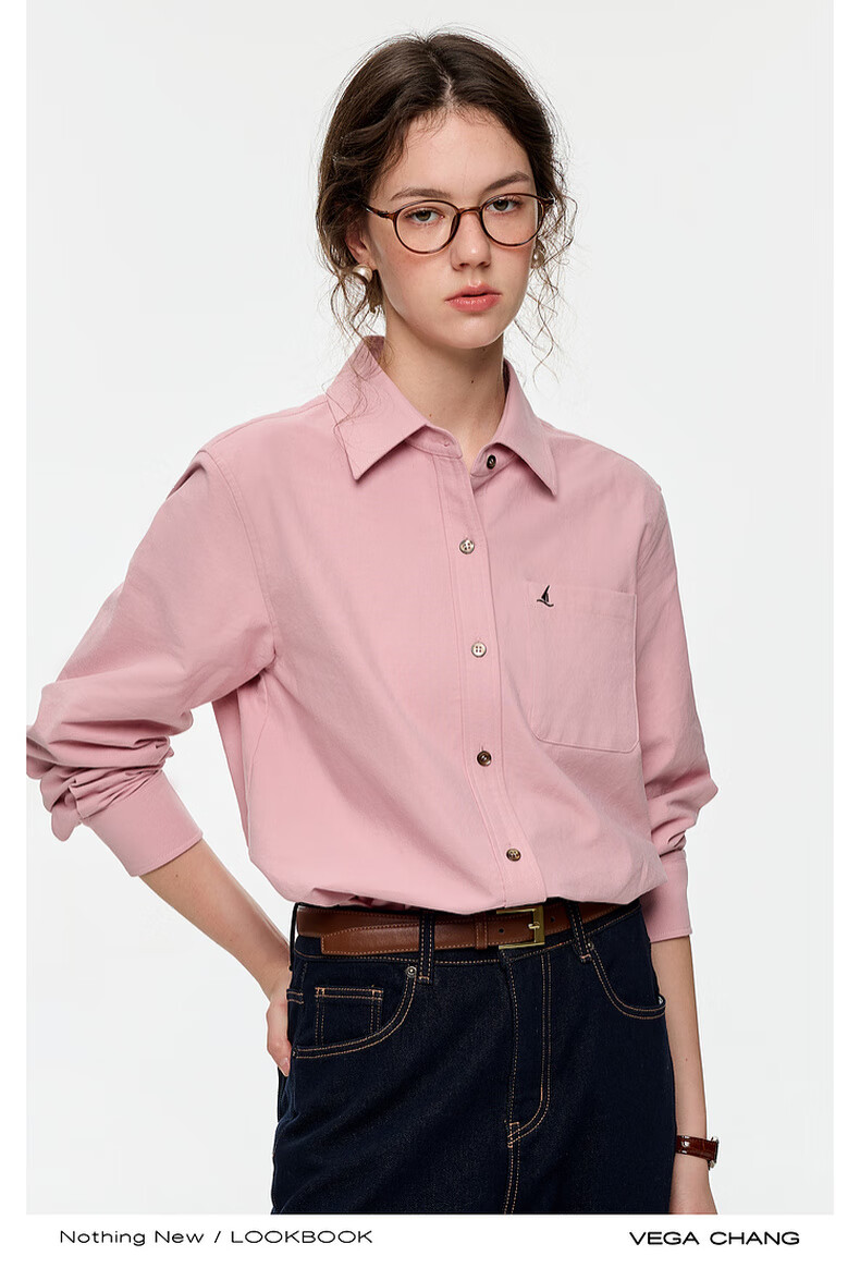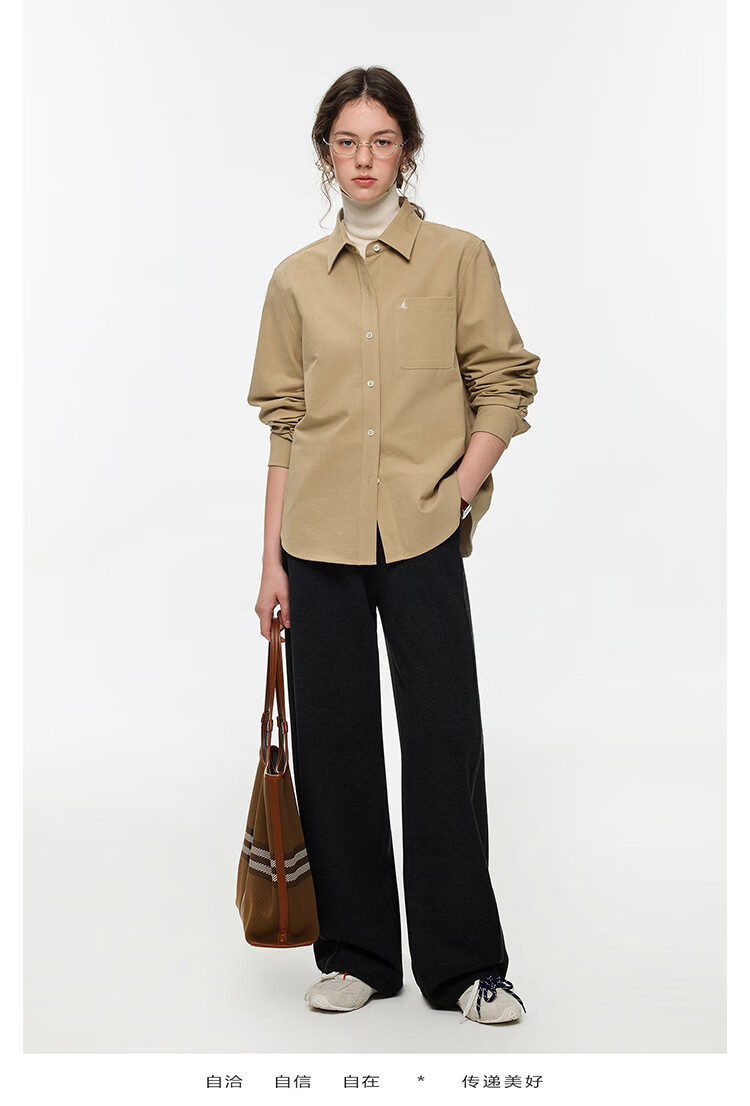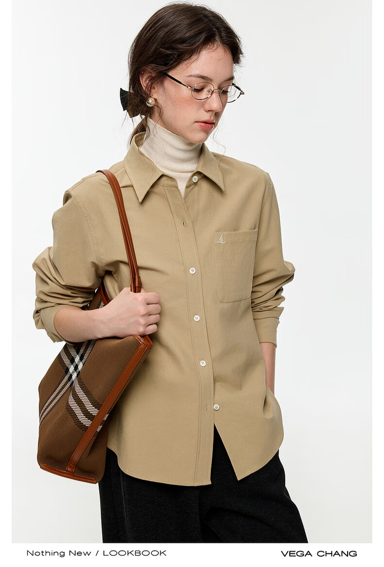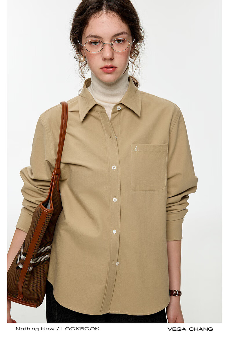 VEGA CHANG brown rhyme simple luxury long-sleeved shirt for women 2025 new autumn and winter simple high-end shirt soft sand brown (shirt) M