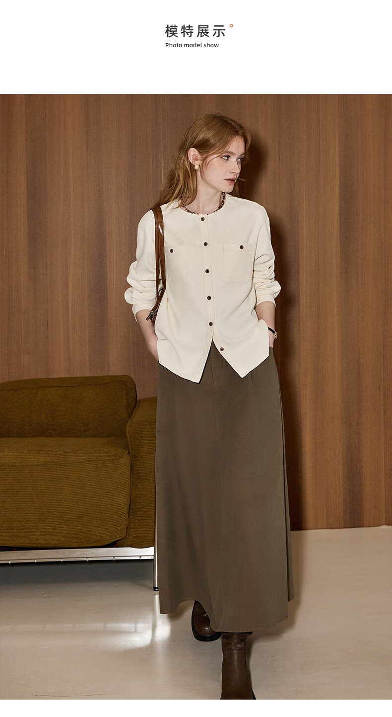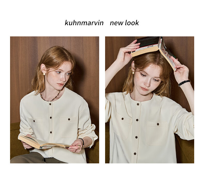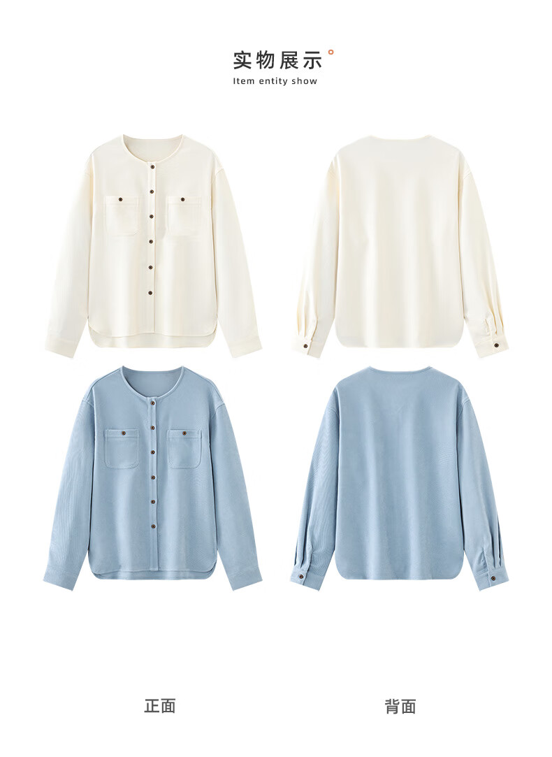KUHNMARVIN Quiet Luxury Style Round Neck Long Sleeve Shirt Women's 2025 Winter New Elegant Temperament Commuting Casual Jacket K20655 Blue S