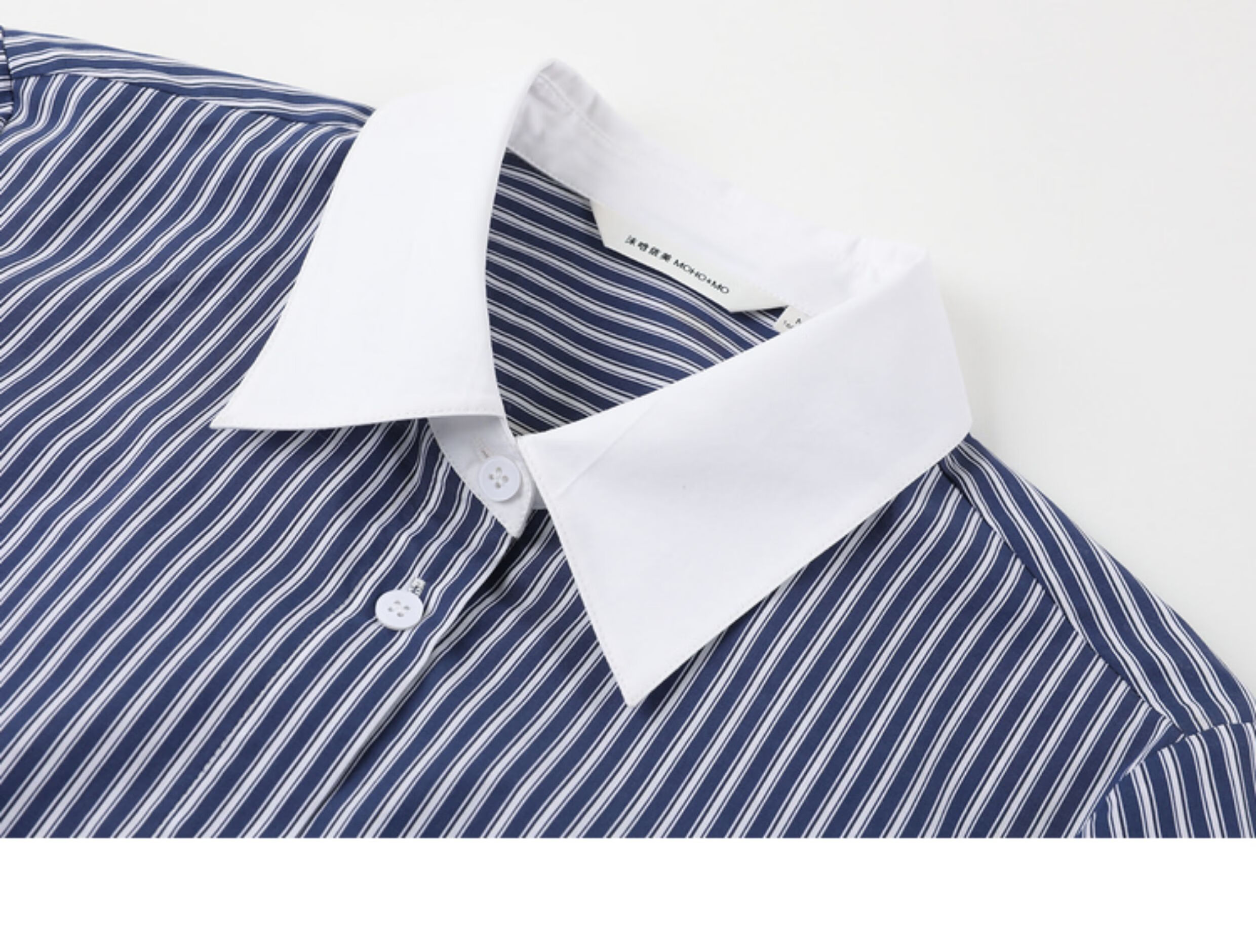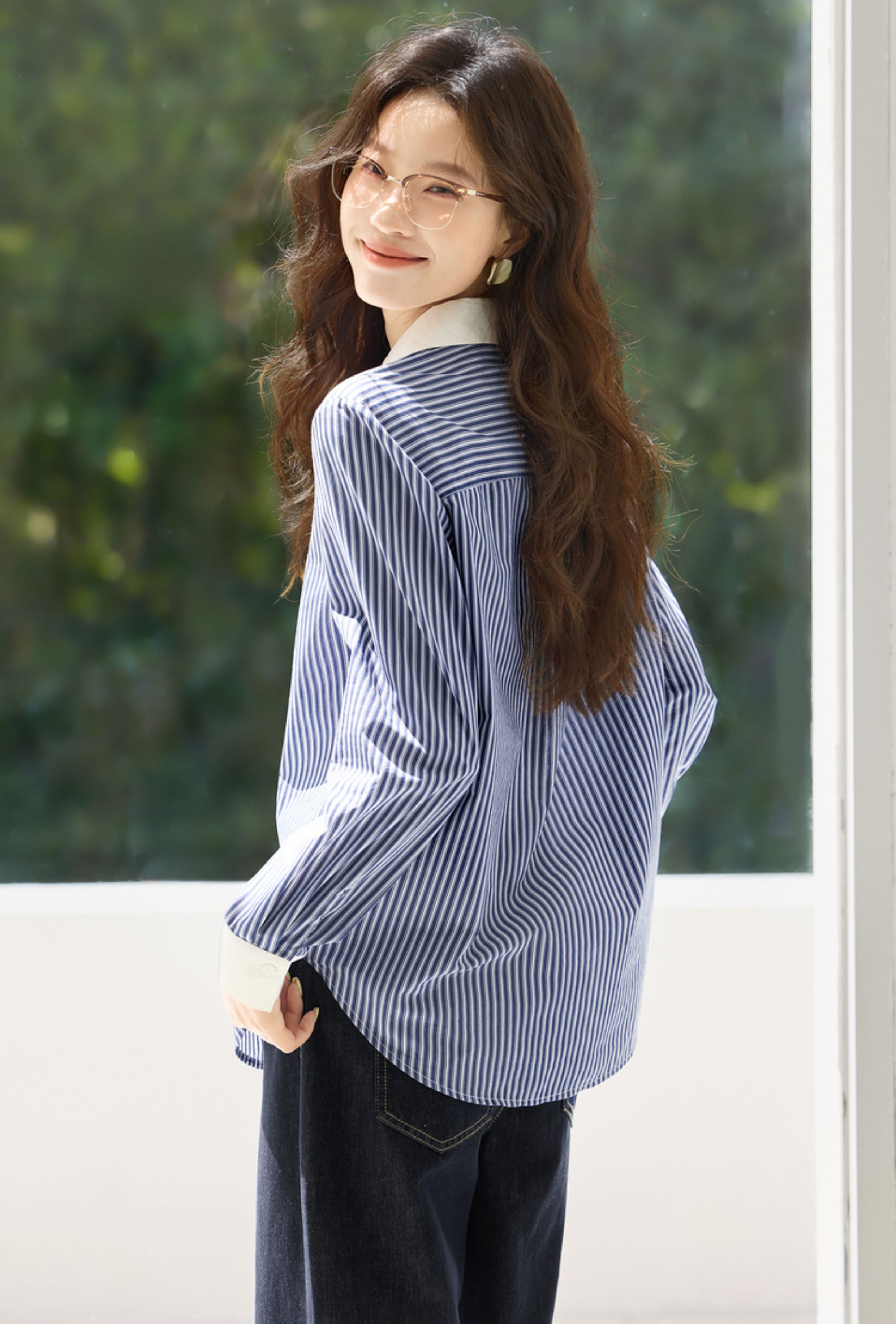Mohan Yimei blogger's same style Mohan Yimei women's shirt top 2025 autumn new small shirt striped lapel shirt apricot color M
