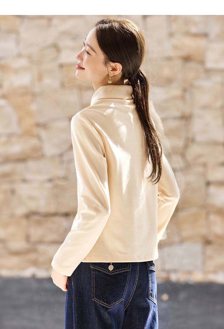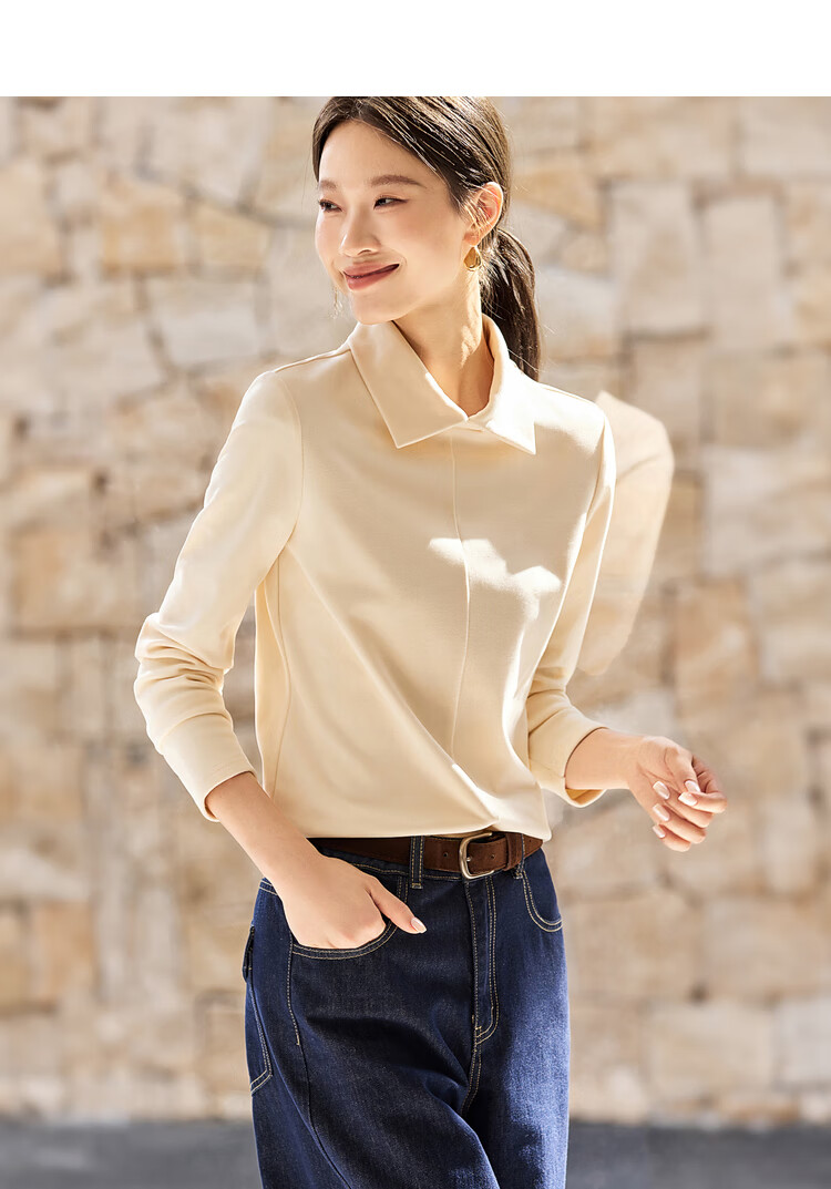 Mohan Yimei POLO collar velvet feel shirt 2025 winter basic velvet feel inner POLO collar long-sleeved warm shirt off-white 2XL