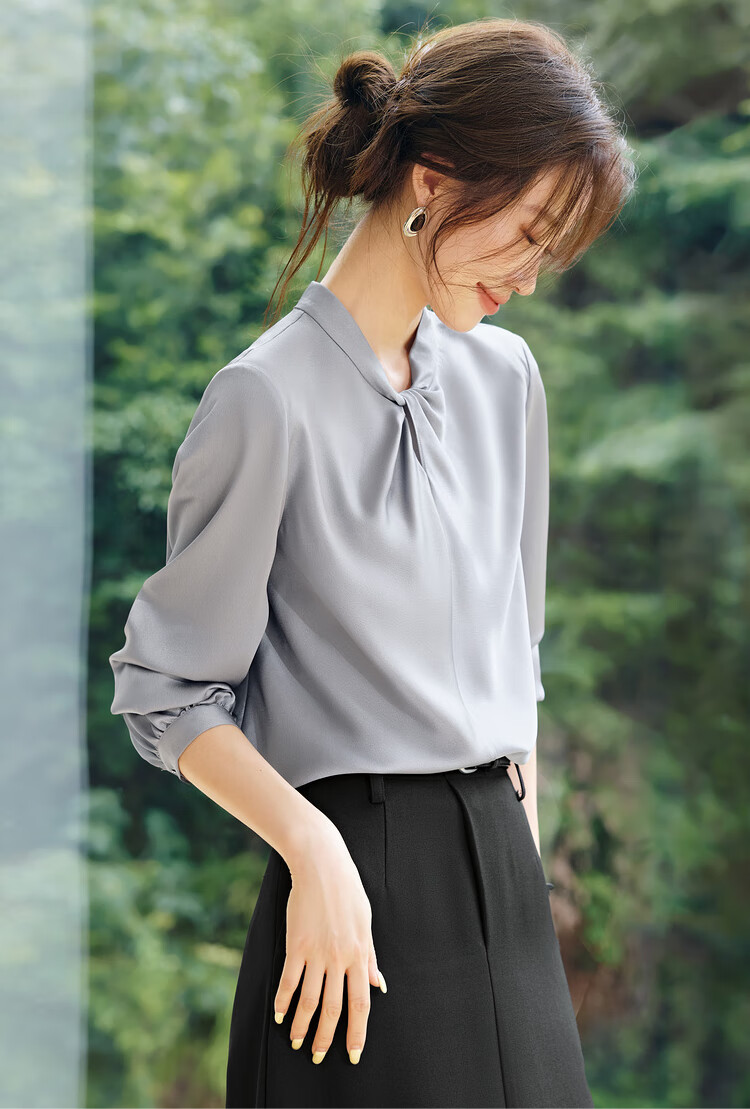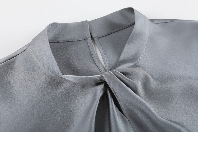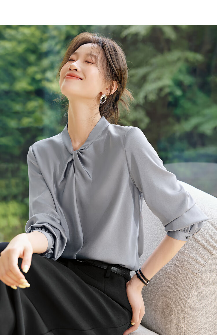 Mohan Yimei Comfortable Satin Shirt 2025 Autumn New Design Structural Twist Texture Versatile Shirt for Women Gray M