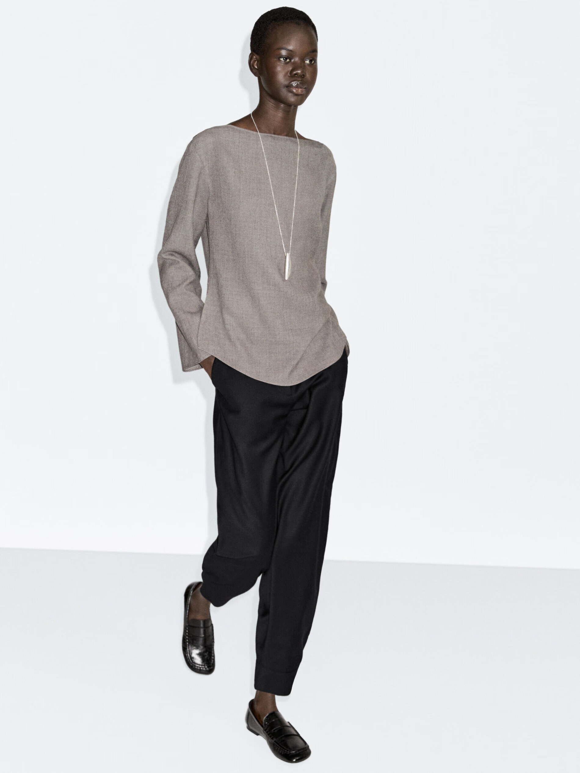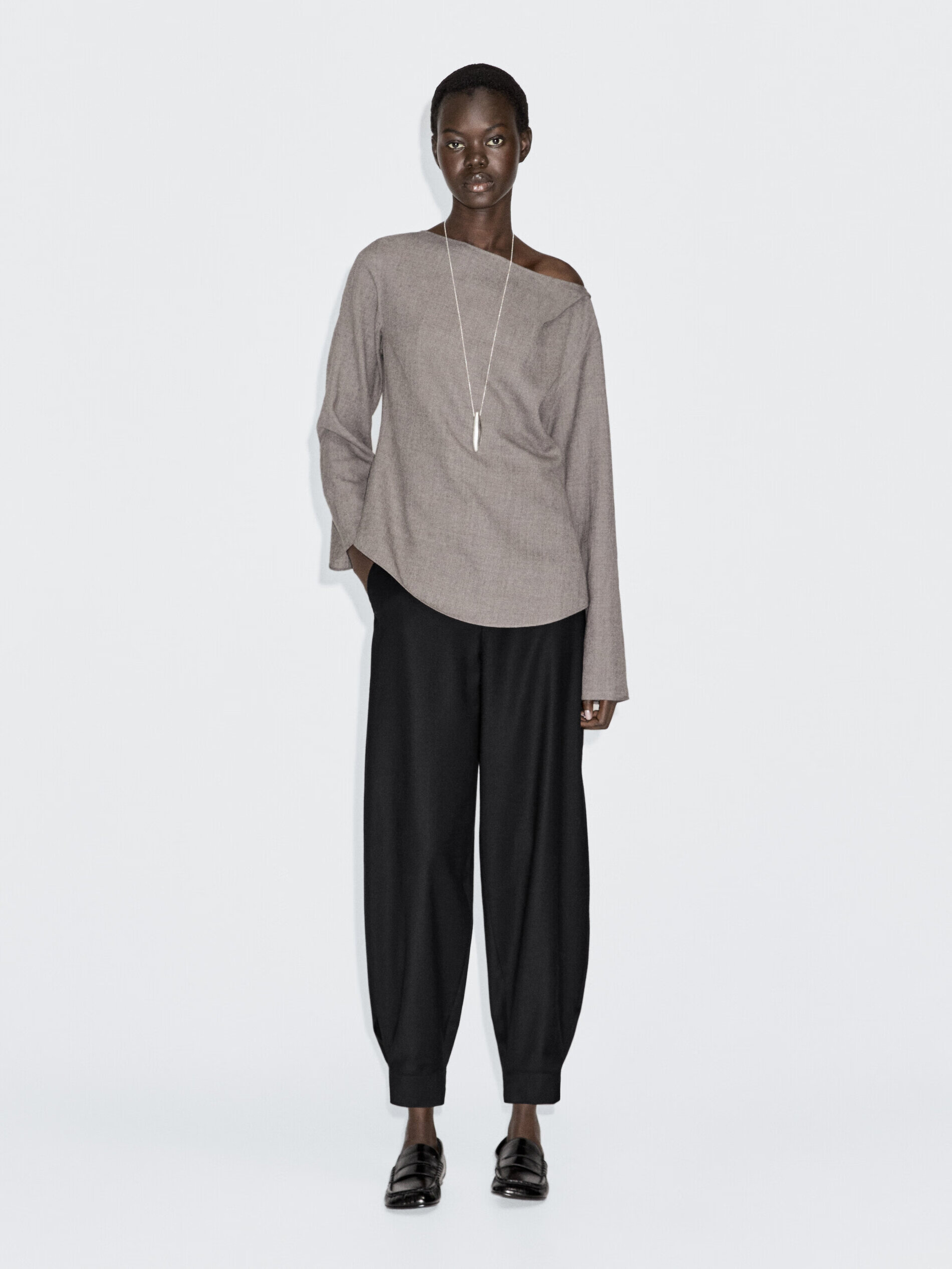 Massimo Dutti autumn and winter new product 2025 women's elegant quiet luxury style high-end felt texture boat neck blouse shirt 05173973 Mocha Brown XS (165/84A)