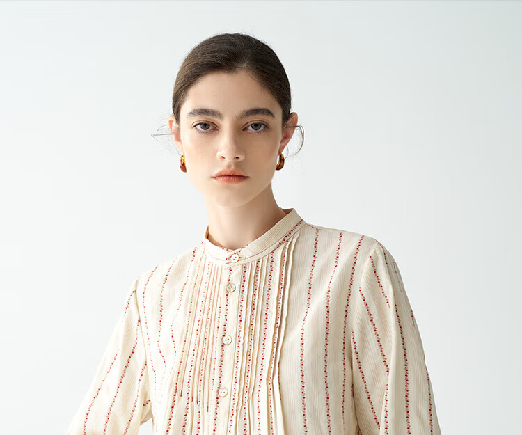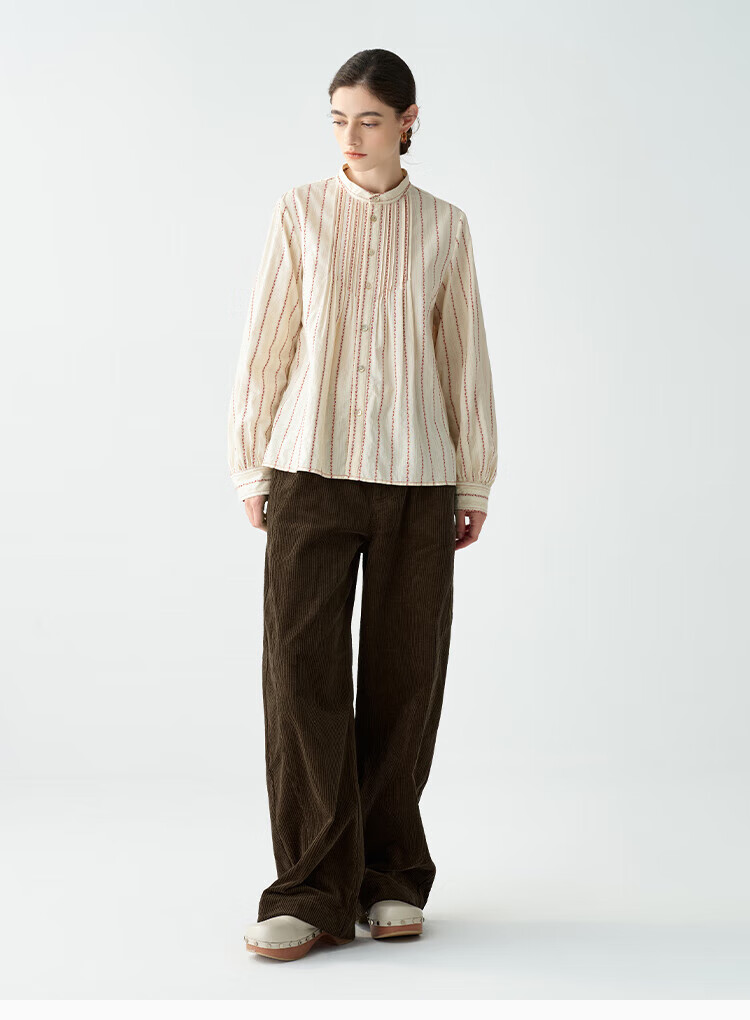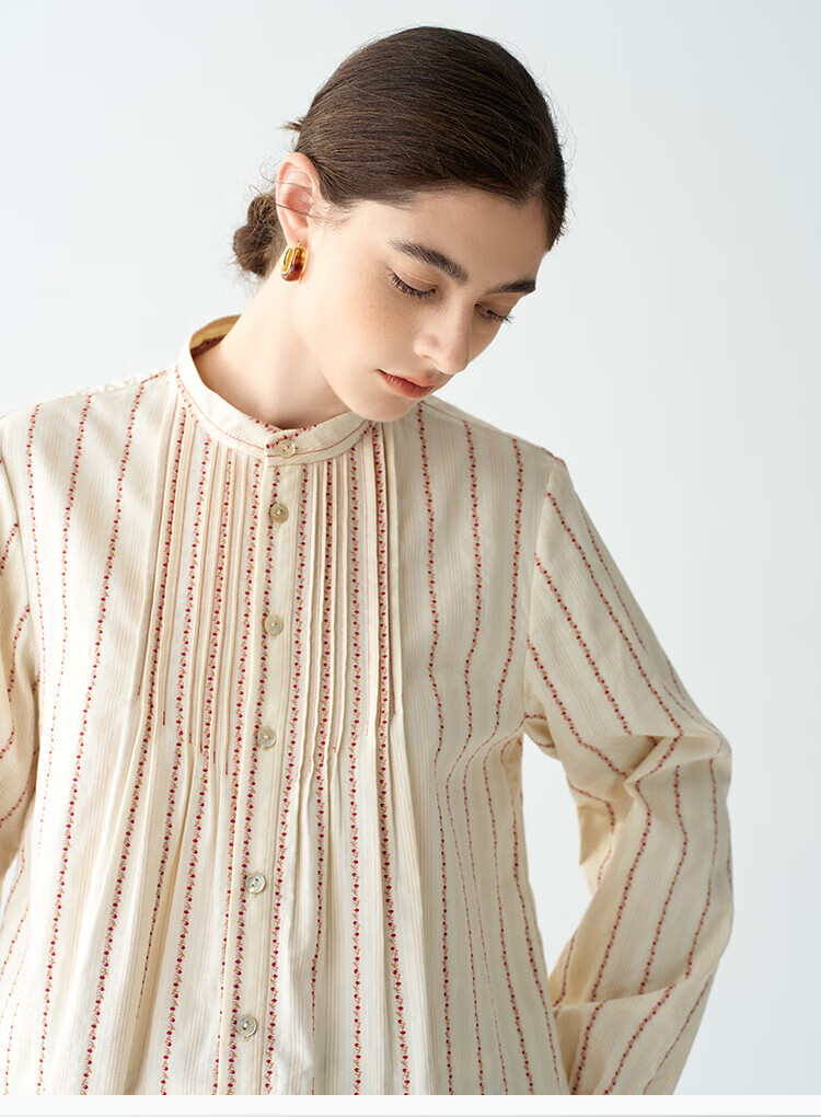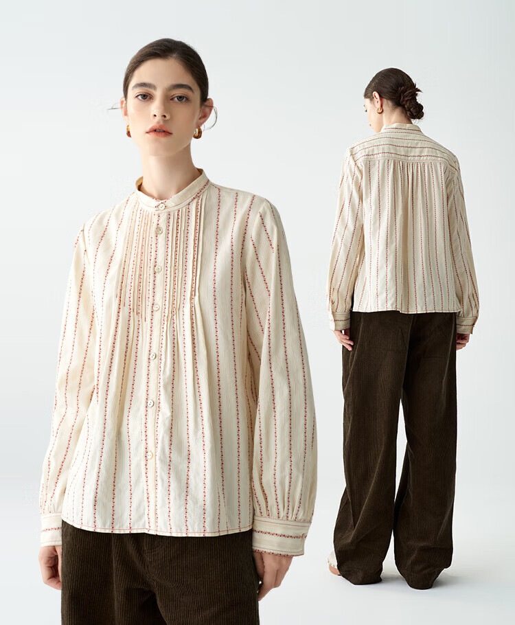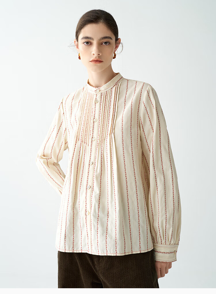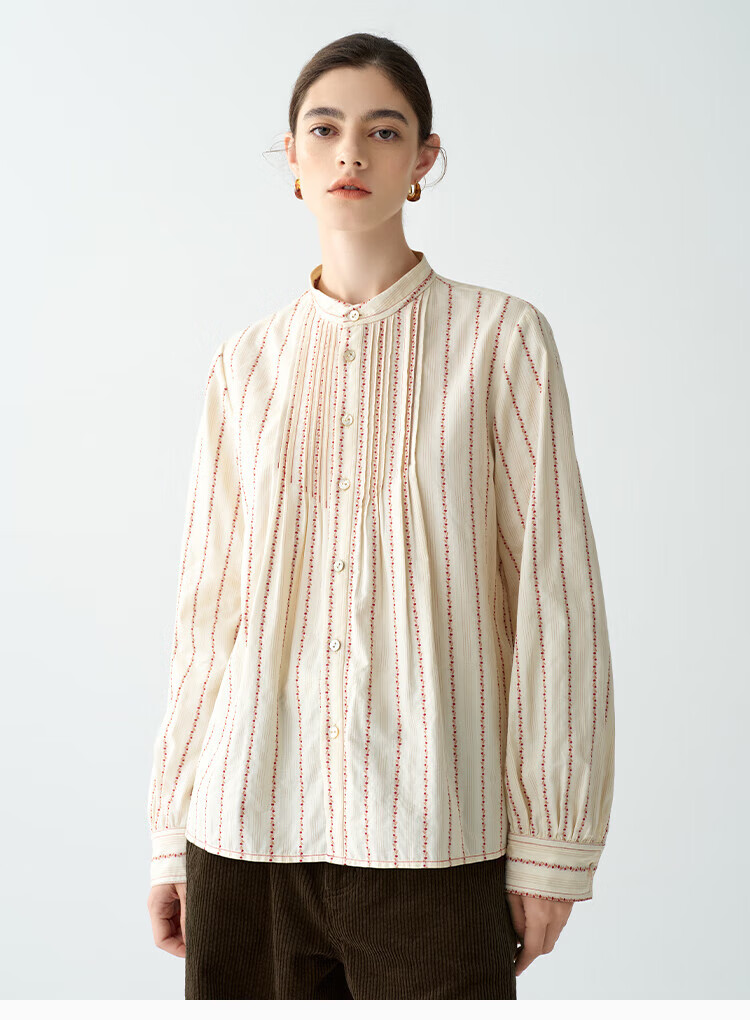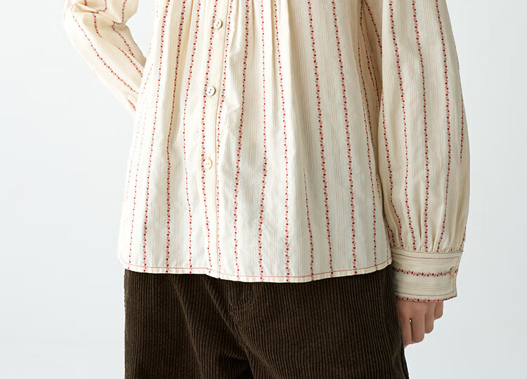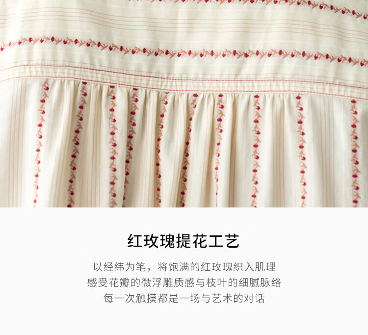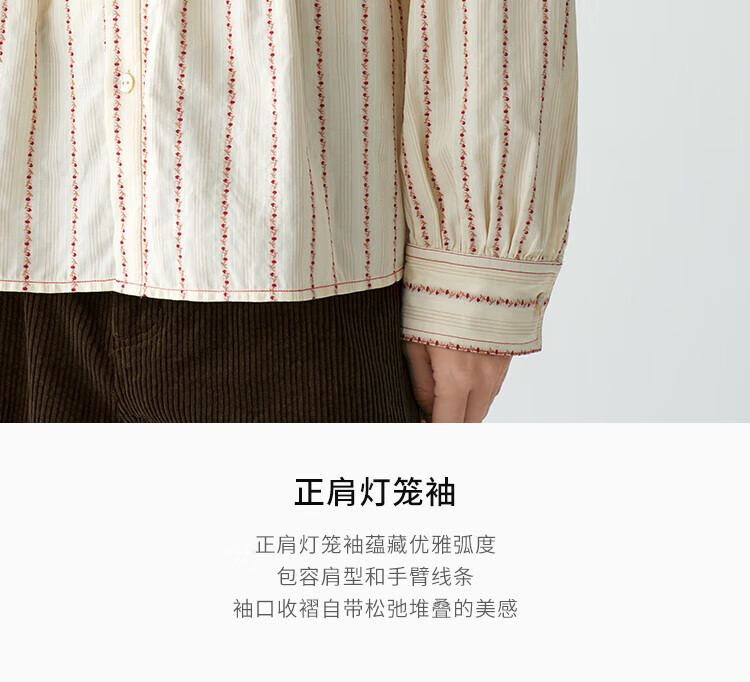 EIN PURE Country Vintage Rose Cotton Jacquard Lantern Sleeve Artistic Shirt Women 2025 Autumn New Style Red L