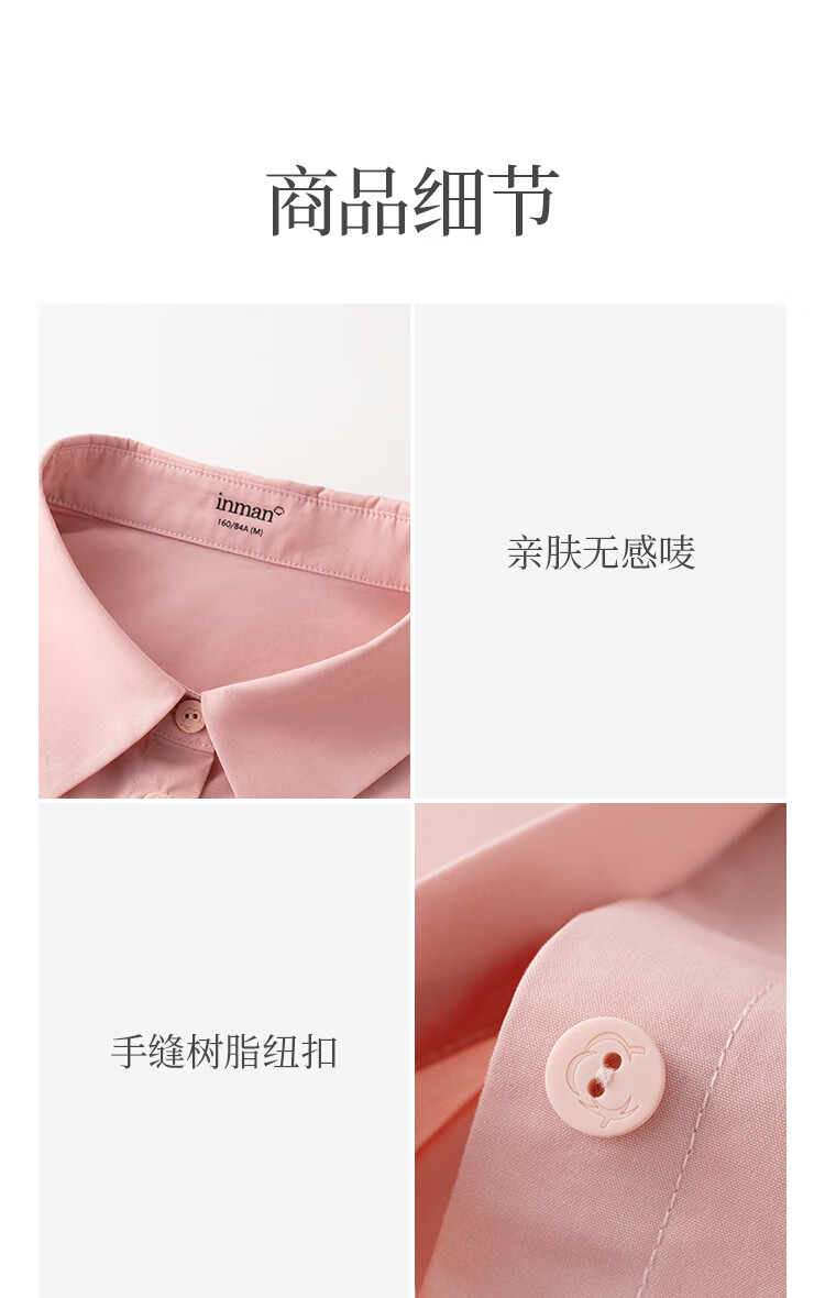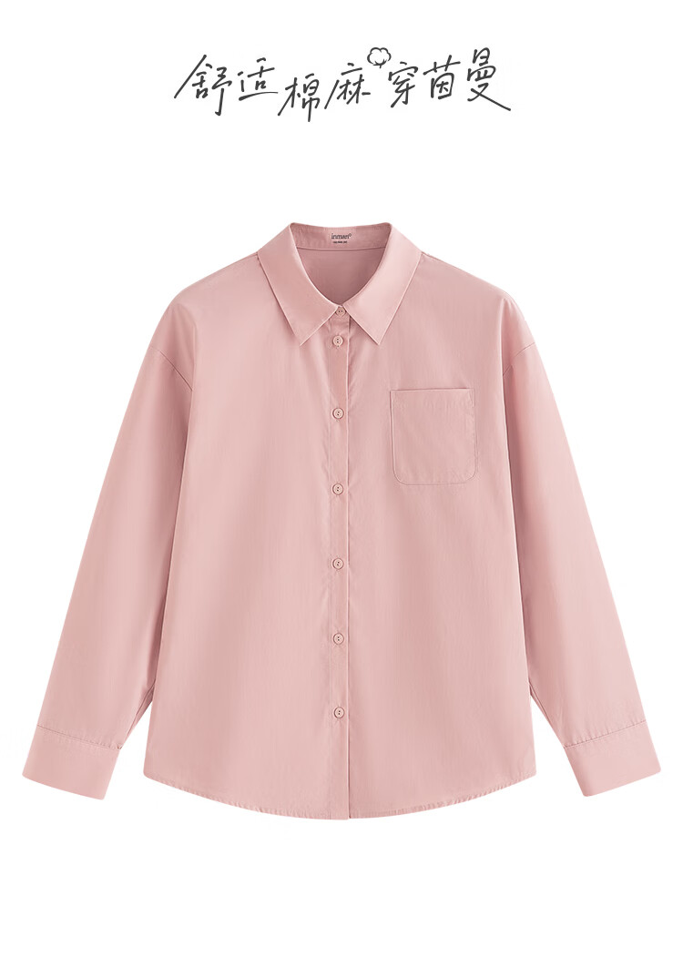 INMAN Simple Commuting Long Sleeve Shirt Women's 2025 Autumn Professional Versatile Embroidered Loose Stacking Shirt Top Lotus Pink-18538749 S
