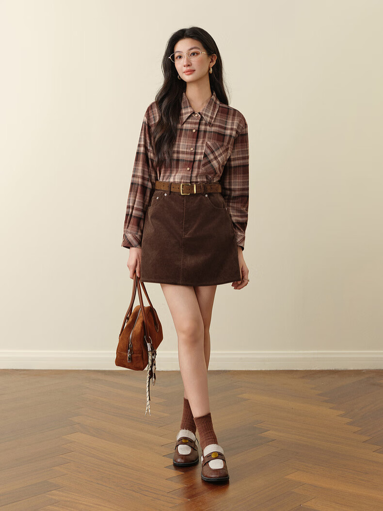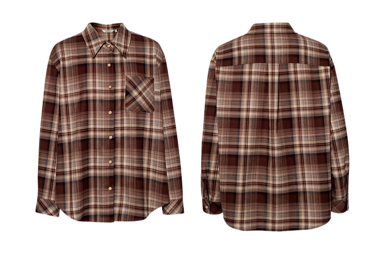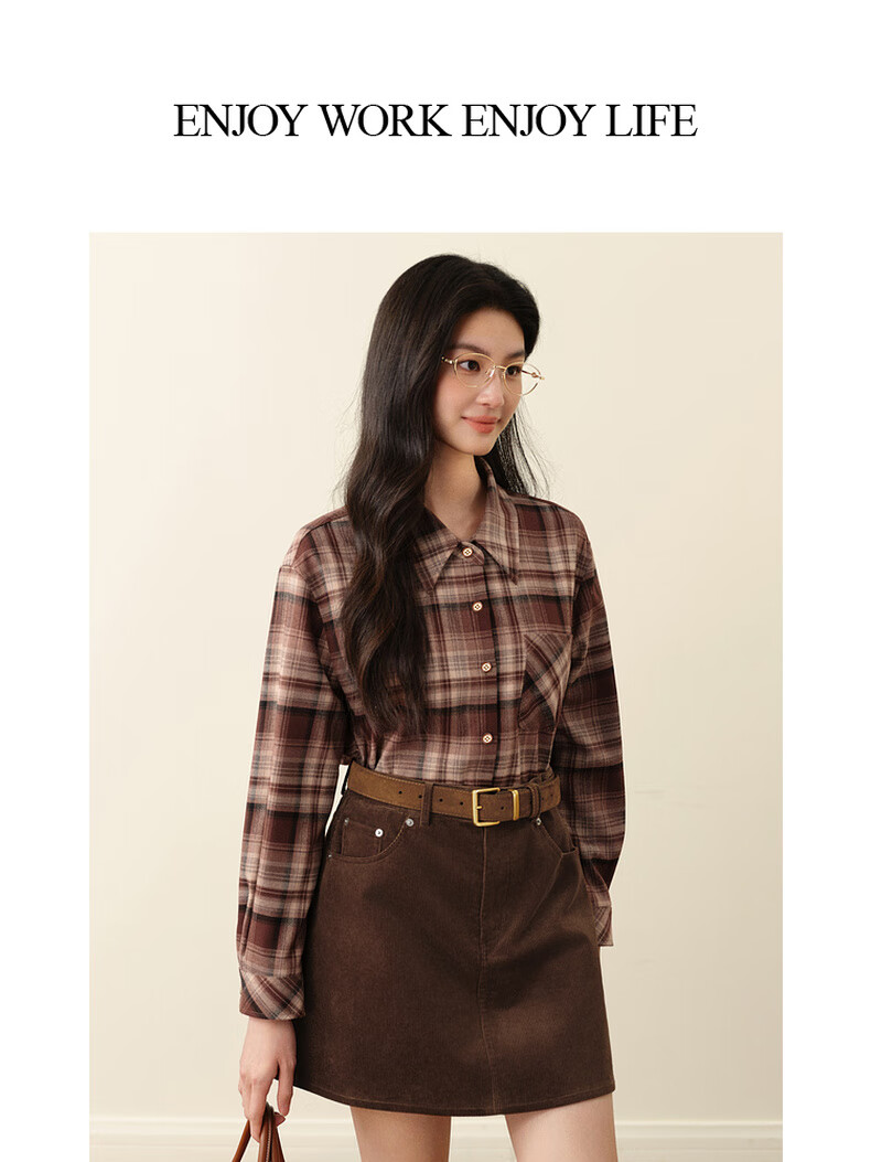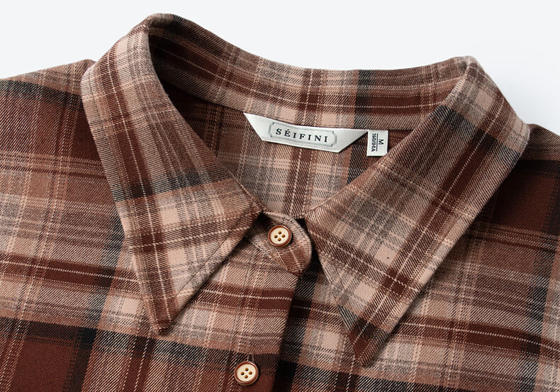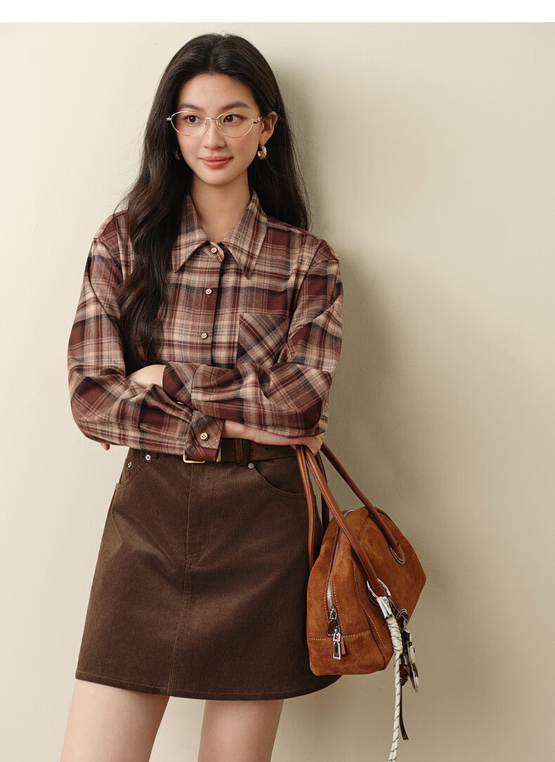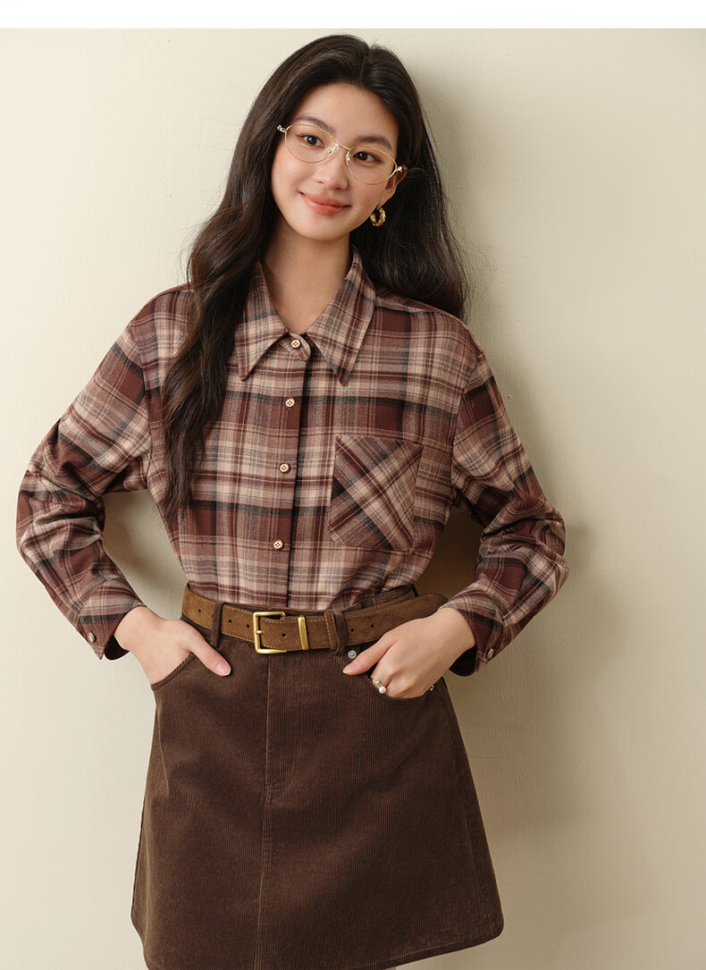 SEIFINI Hong Kong style retro commuter shirt 2025 autumn and winter new contrast color plaid long-sleeved temperament lapel top for women black M