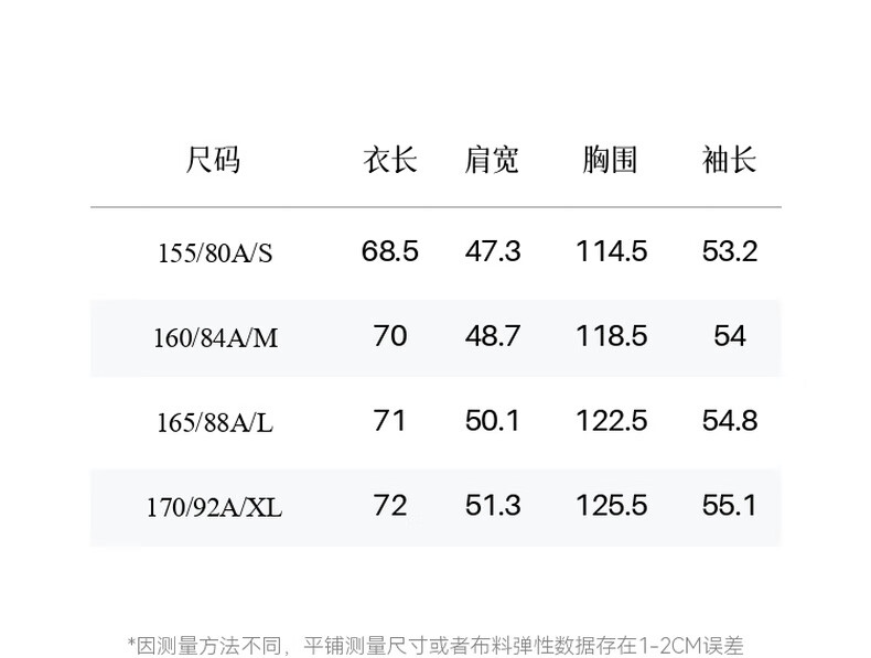 China (cm) 160-165/84-86 165-170 / 88-90 167-172 / 92-96 168-173 / 98-102 170-176 / 106-110