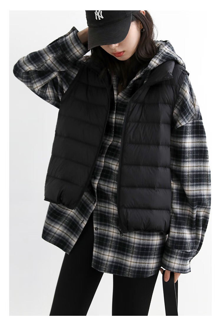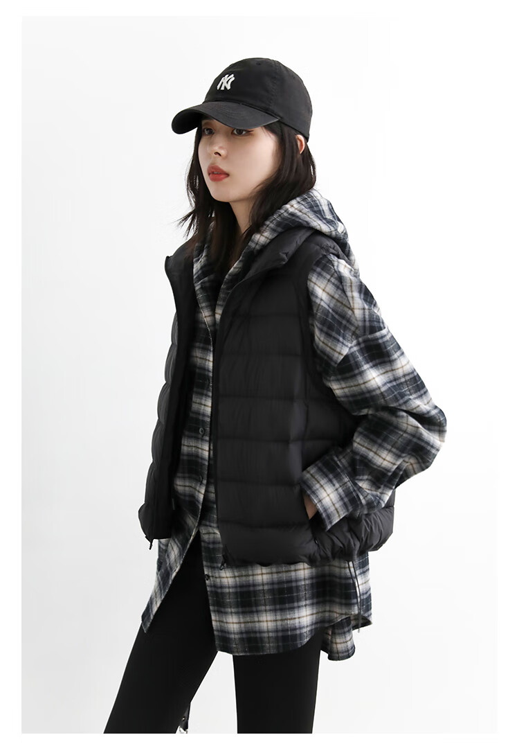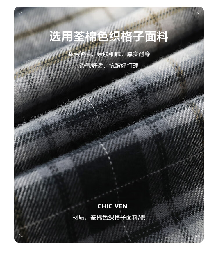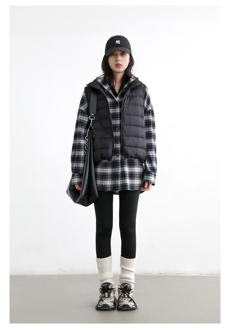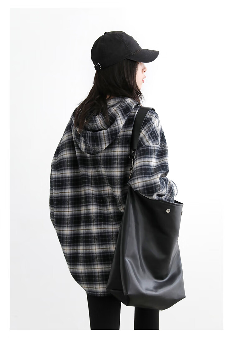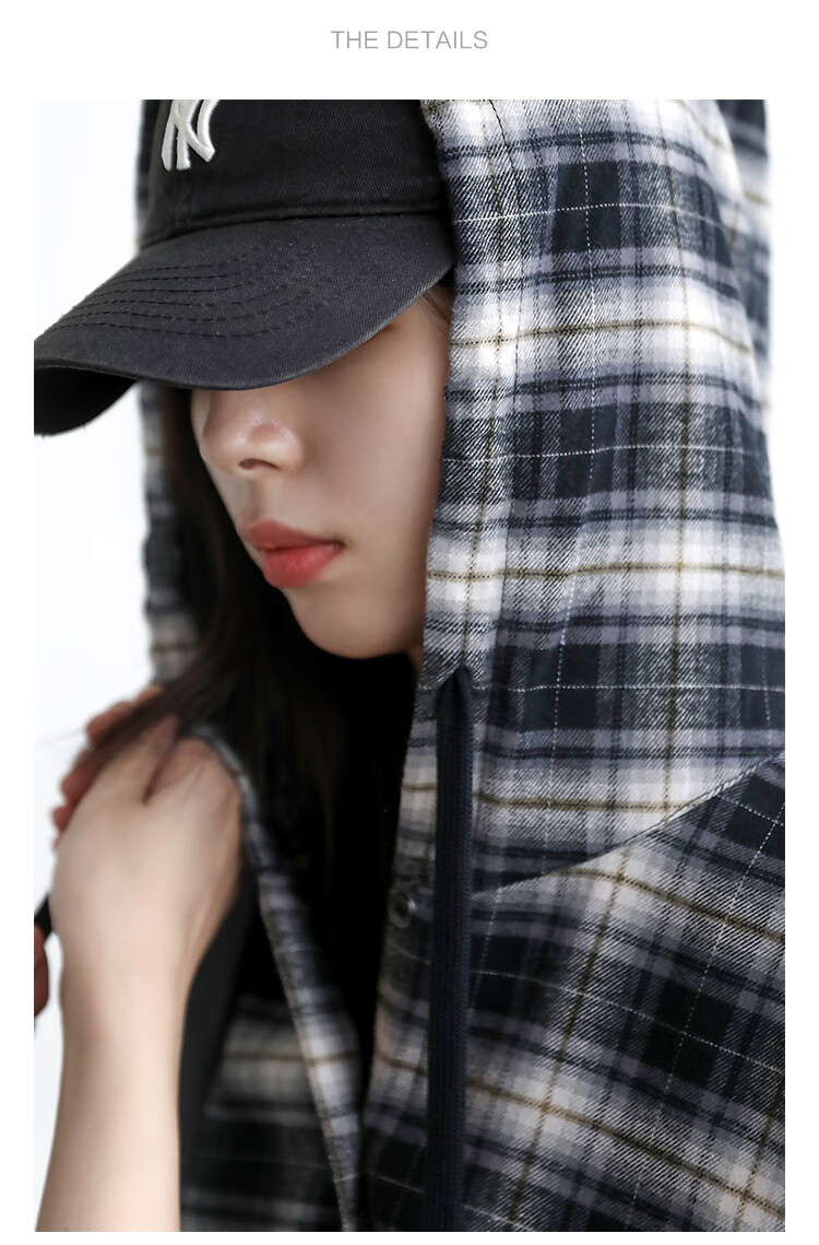 CHIC VEN 2025 Autumn and Winter Cotton Brushed Feel Versatile Hooded Plaid Shirt Lazy Feeling Long Sleeve Shirt Women chicven navy plaid S (43-58kg)
