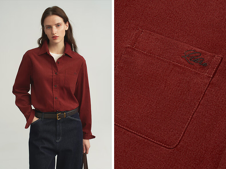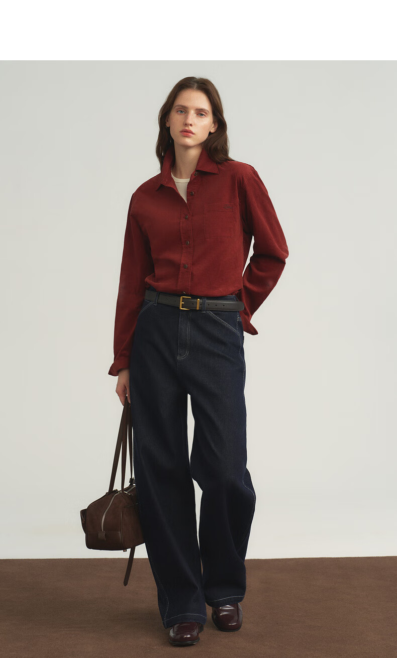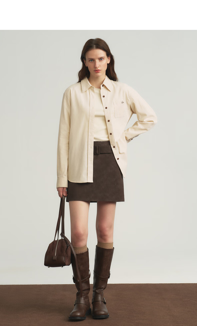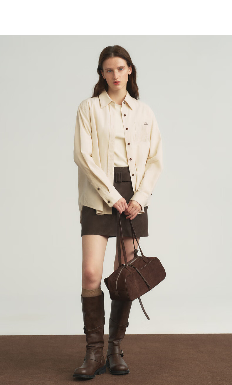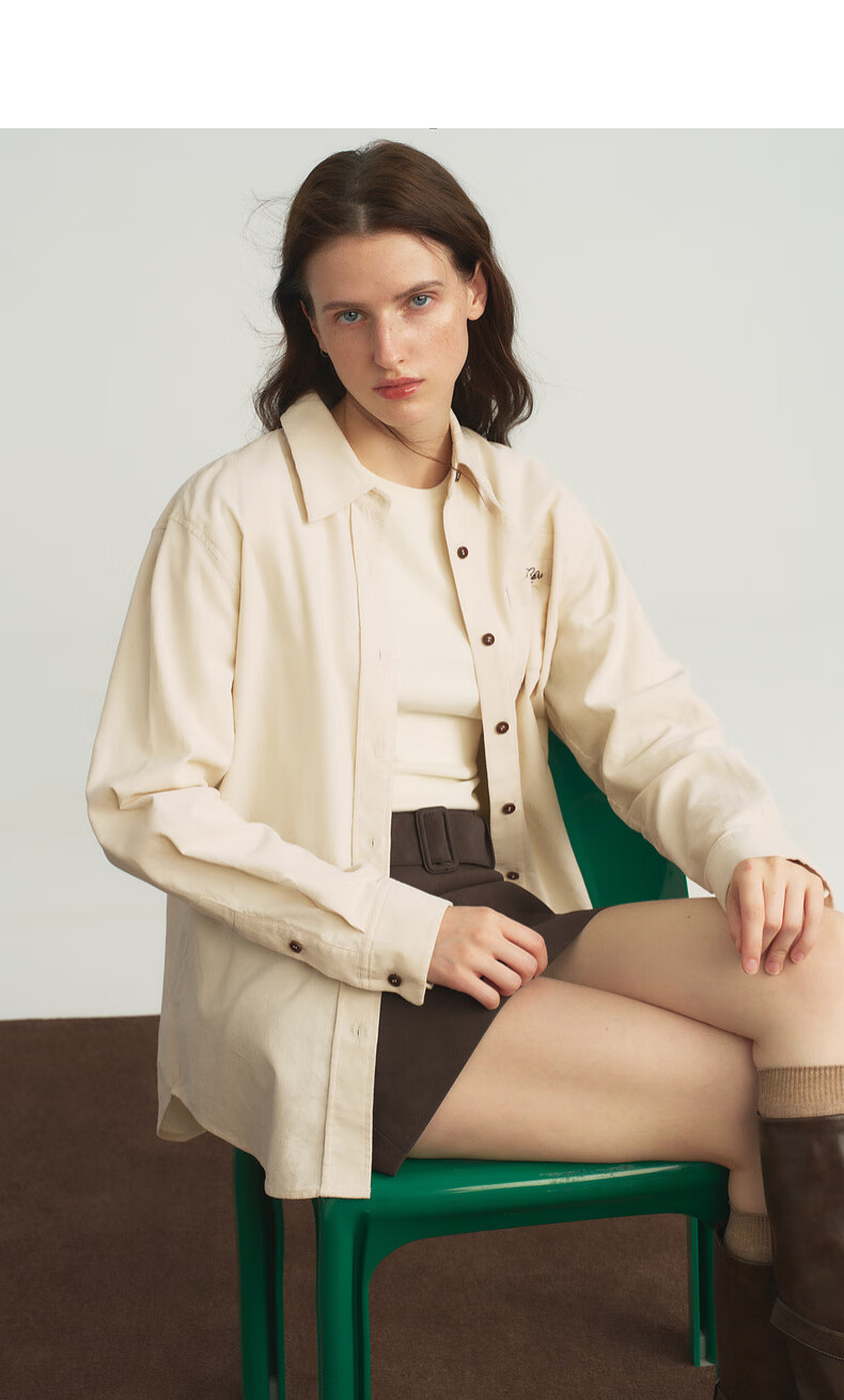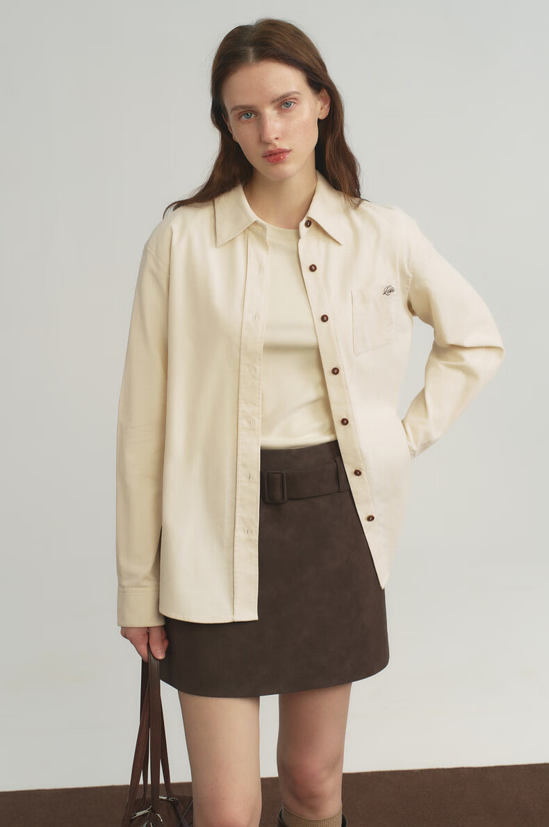 Orangedesire main line shirt orange desire cotton embroidered corduroy long-sleeved shirt 2025 winter new style cloud white S