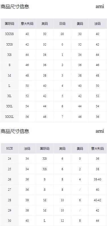 China (cm) 160-165/84-86 165-170 / 88-90 167-172 / 92-96 168-173 / 98-102 170-176 / 106-110