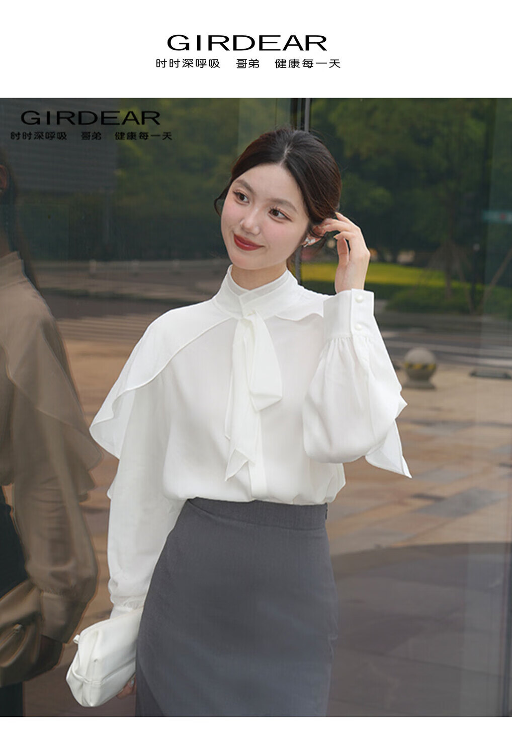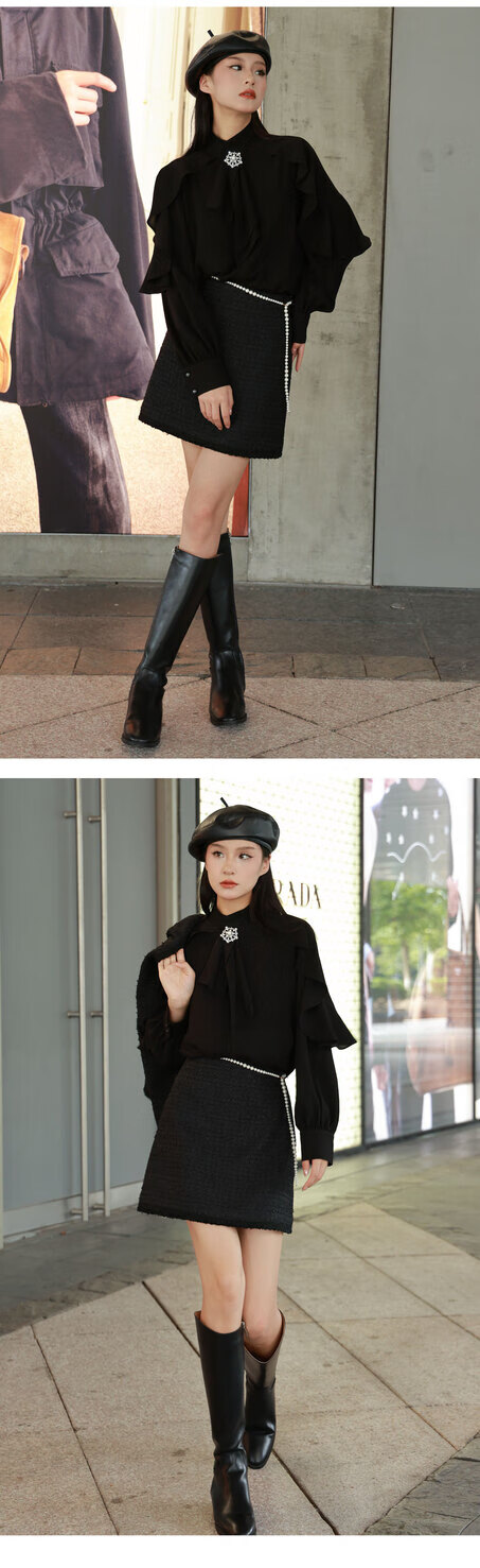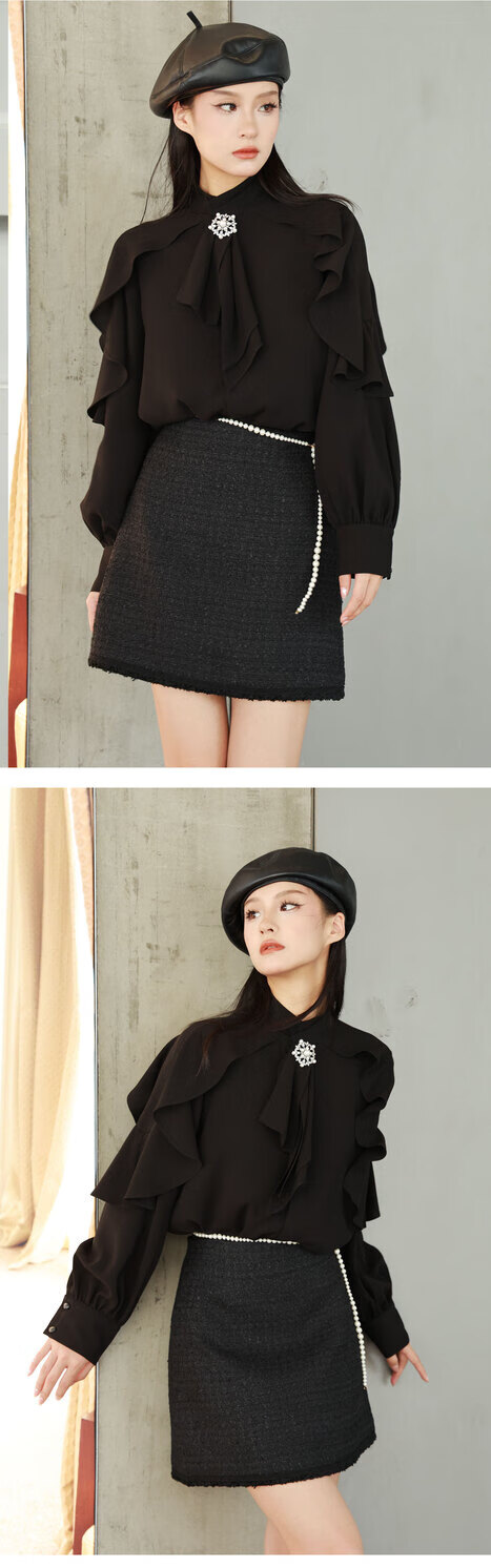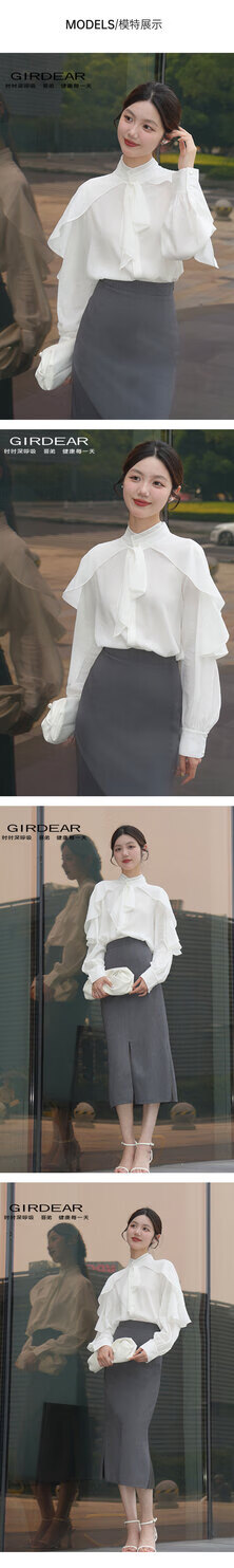 GIRDEAR Human Tea White New Palace French Fashion Romantic Ribbon Premium Shirt 130079 Black M (3)