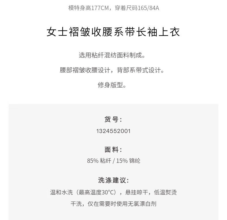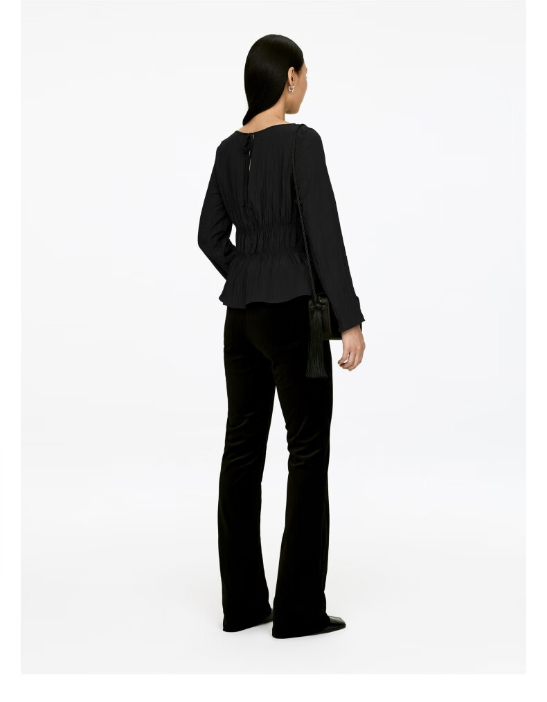 ARKET Women's Pleated Waist Belted Long-Sleeved Top Black Autumn New Style 1324552001 Black XXS 155/76A 32
