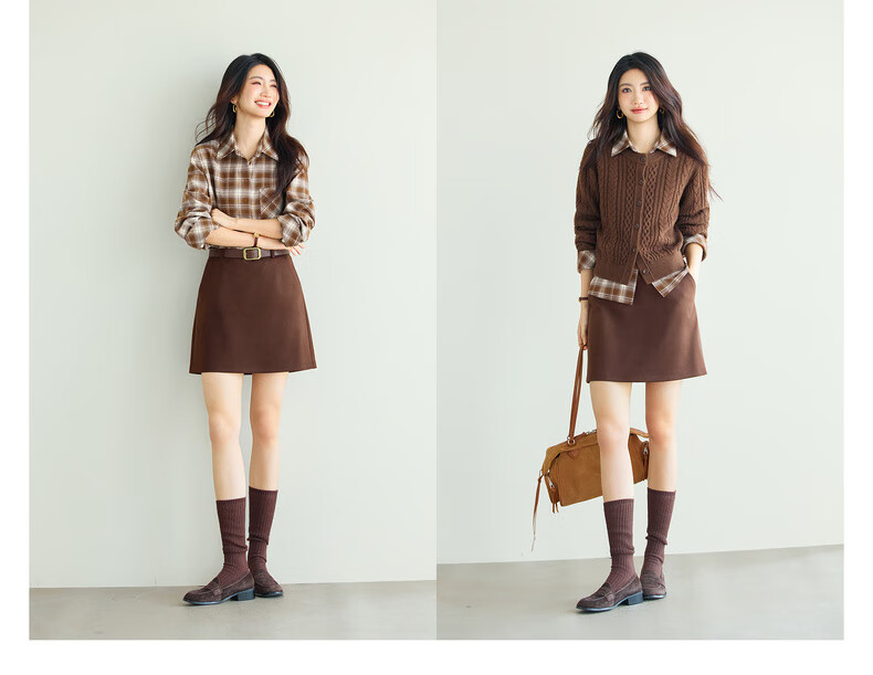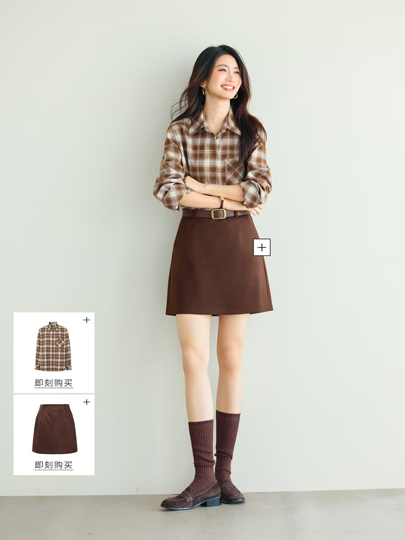 Eveli (eifini) Jiang Xin endorses Eveli Warm Maillard Brushed Commuting Comfortable Shirt 25 Winter New Top Women Brown S 80-105Jin Jin is equal to 0.5 kg