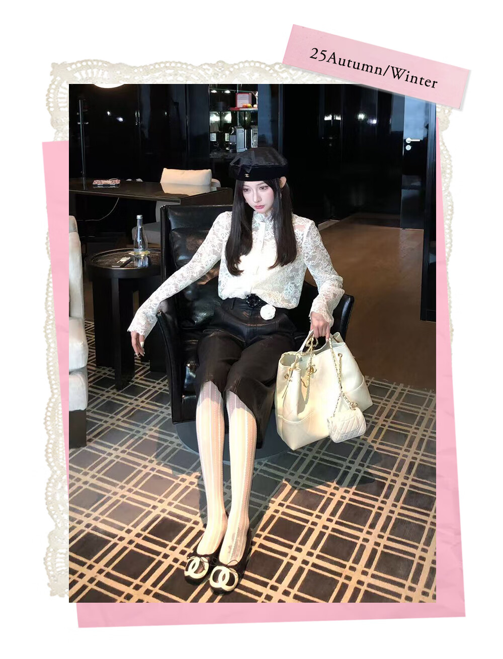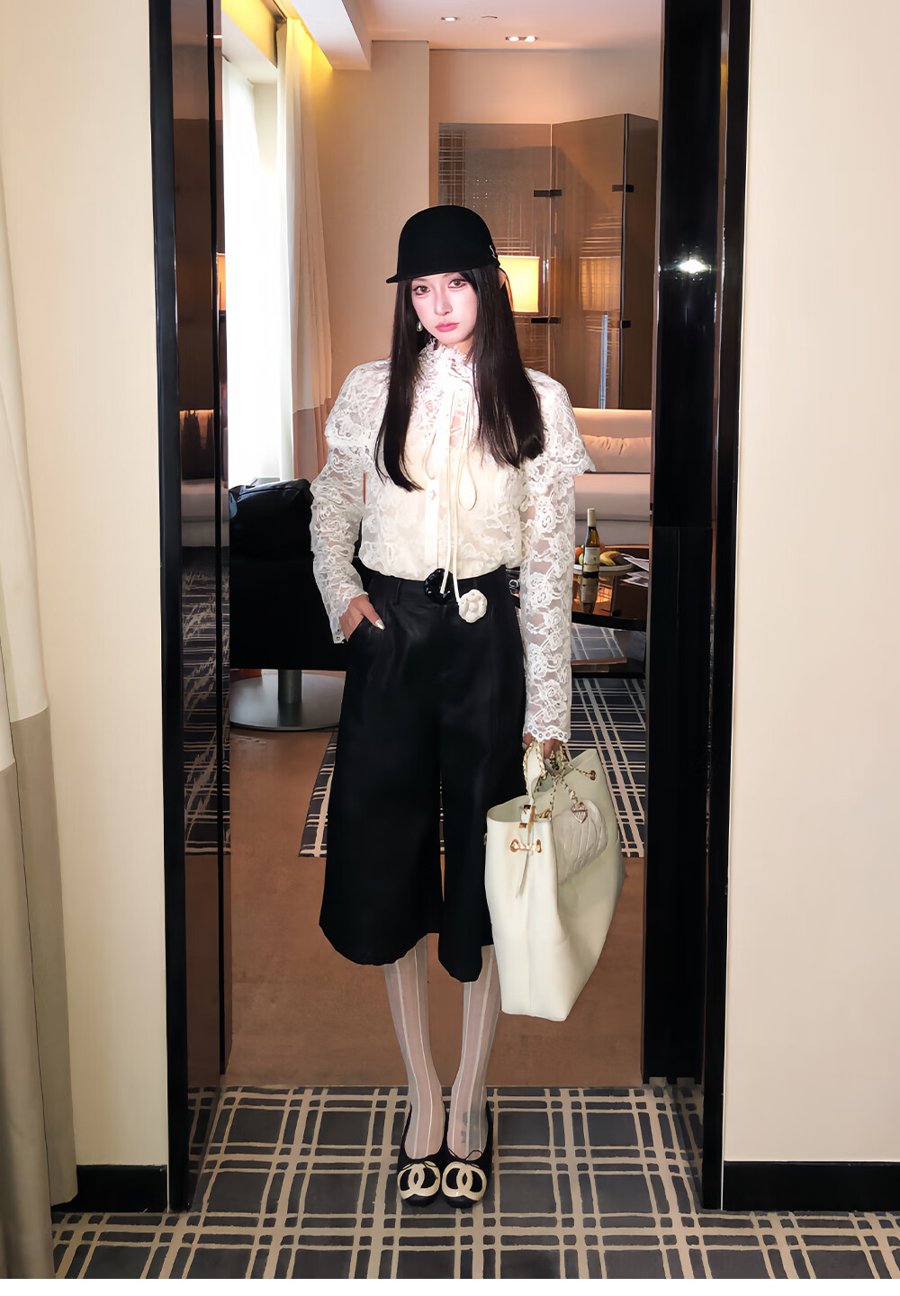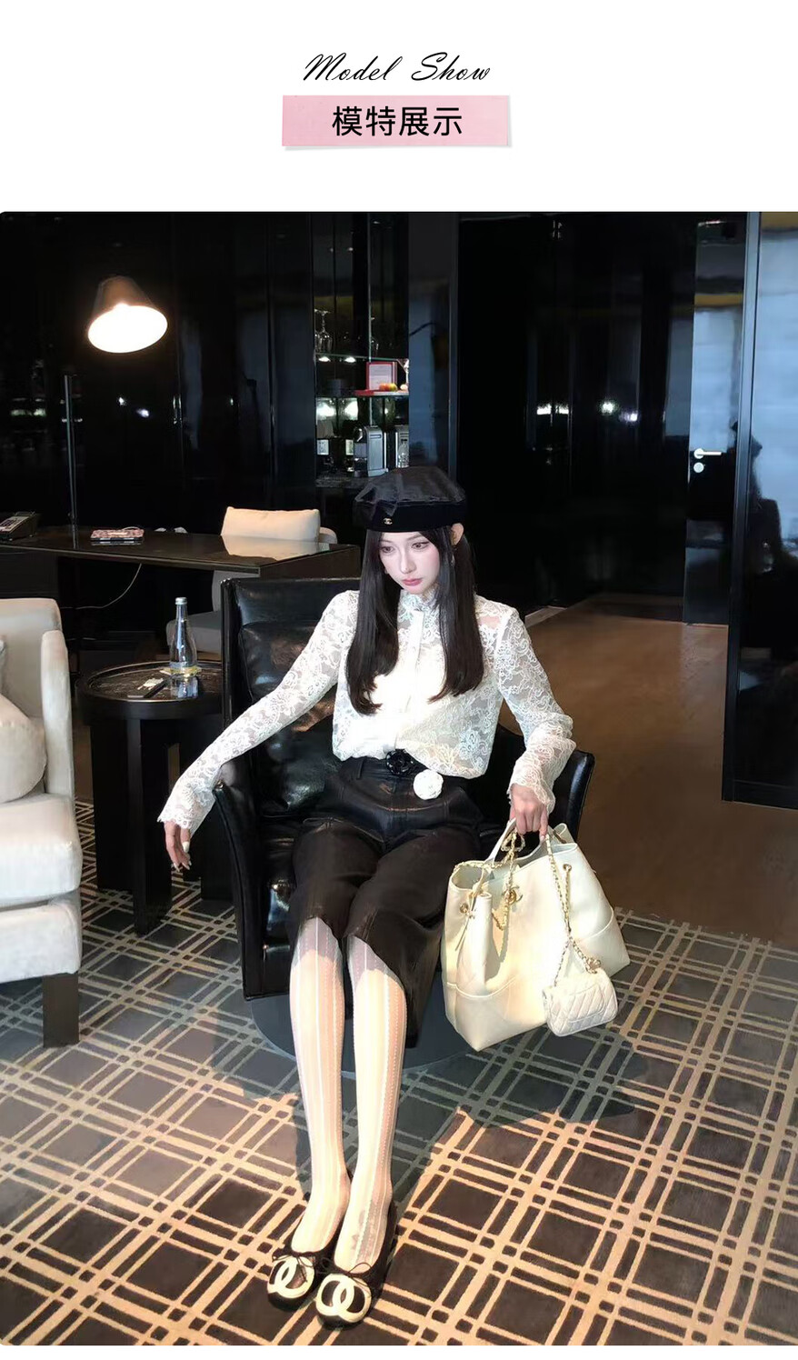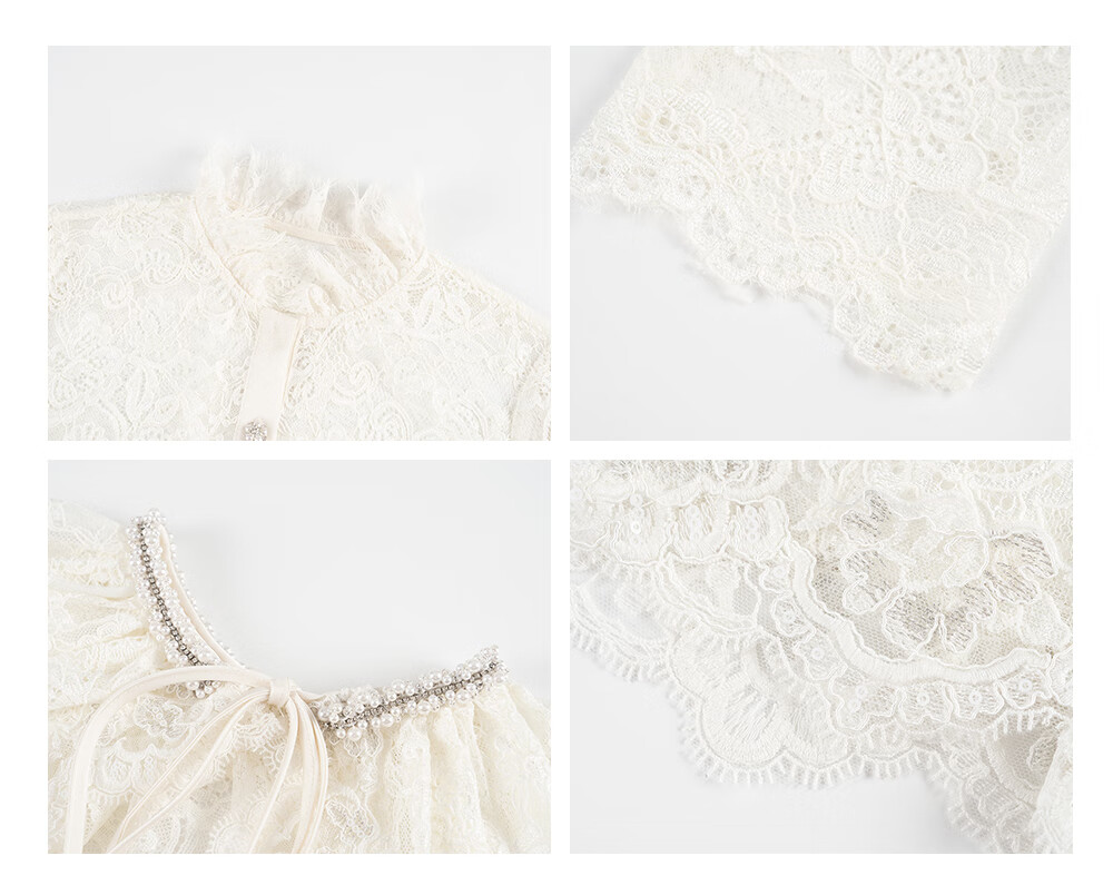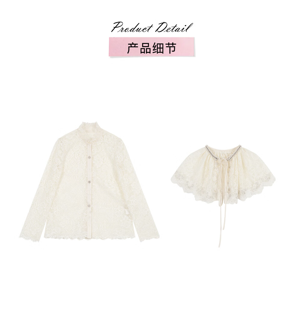 Du Butipitao's original gentle poem autumn slimming temperament long-sleeved white lace bottoming shirt suit shawl + shirt XS