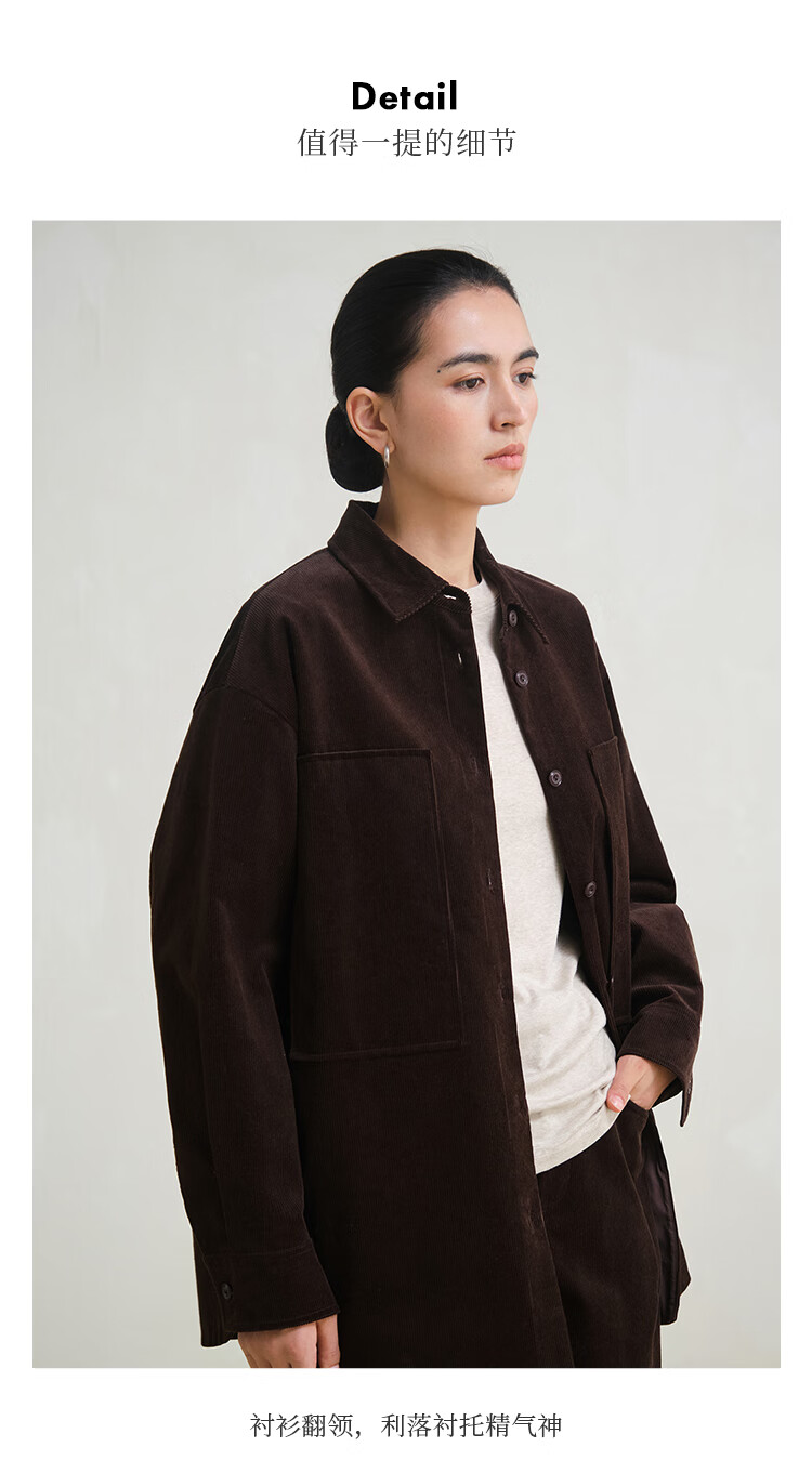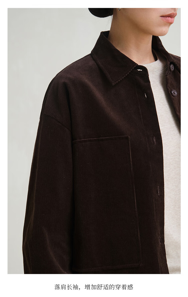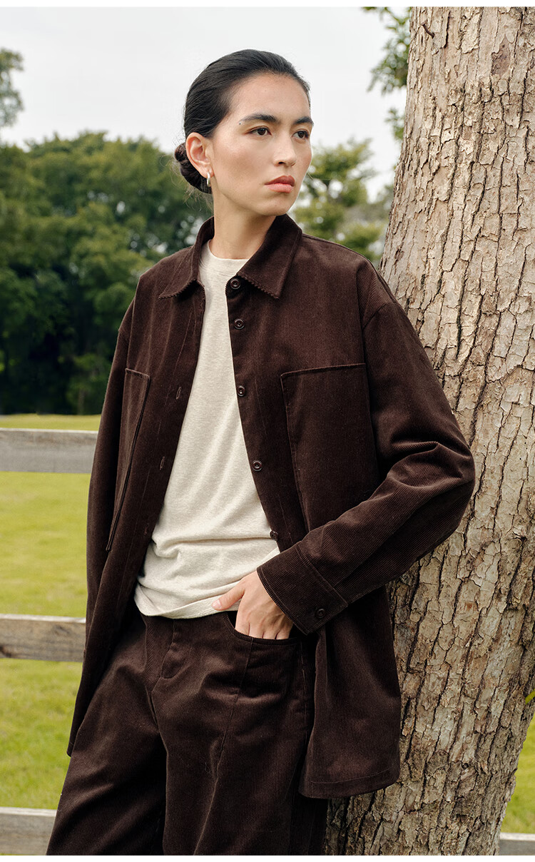 Journey original ltyp pima cotton corduroy oversize shirt fashionable literary shirt top women winter new style ebony coffee S