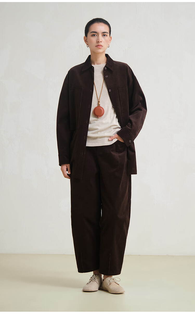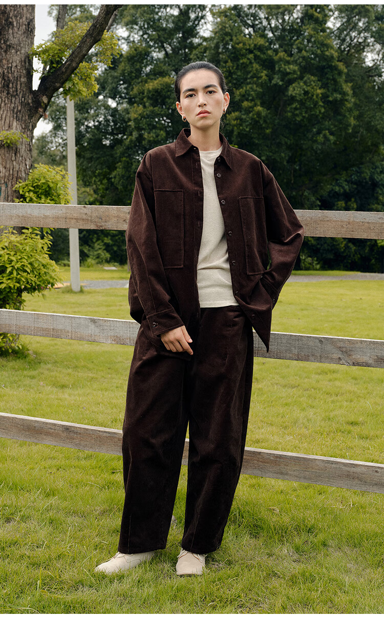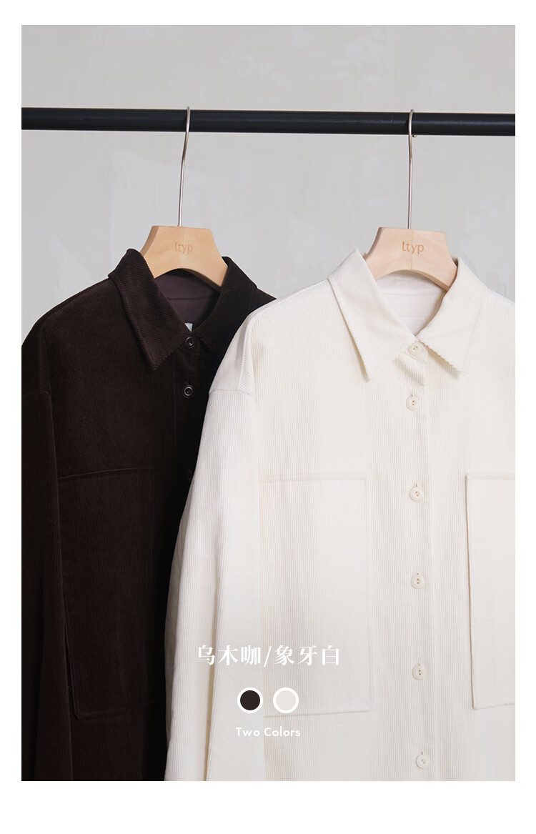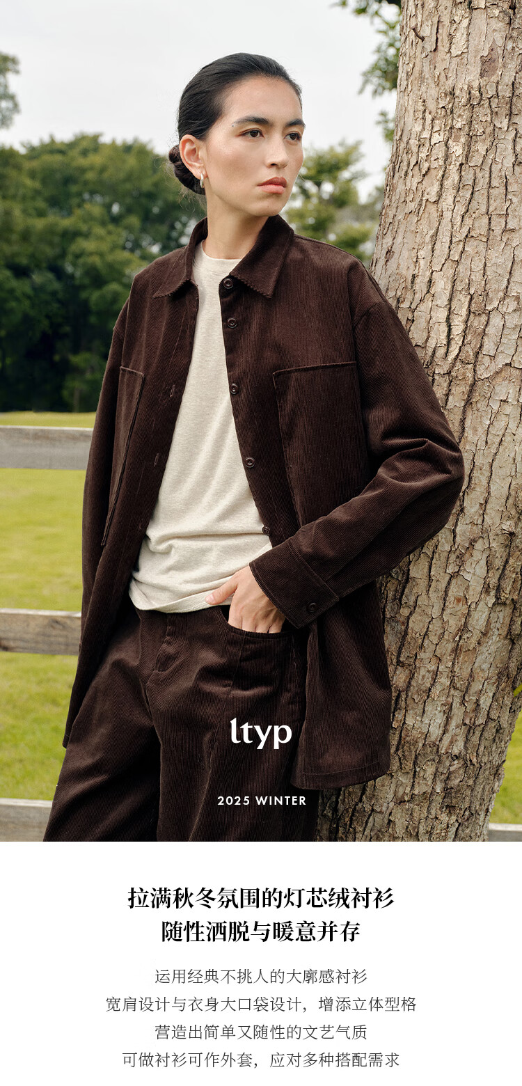 Journey original ltyp pima cotton corduroy oversize shirt fashionable literary shirt top women winter new style ebony coffee S