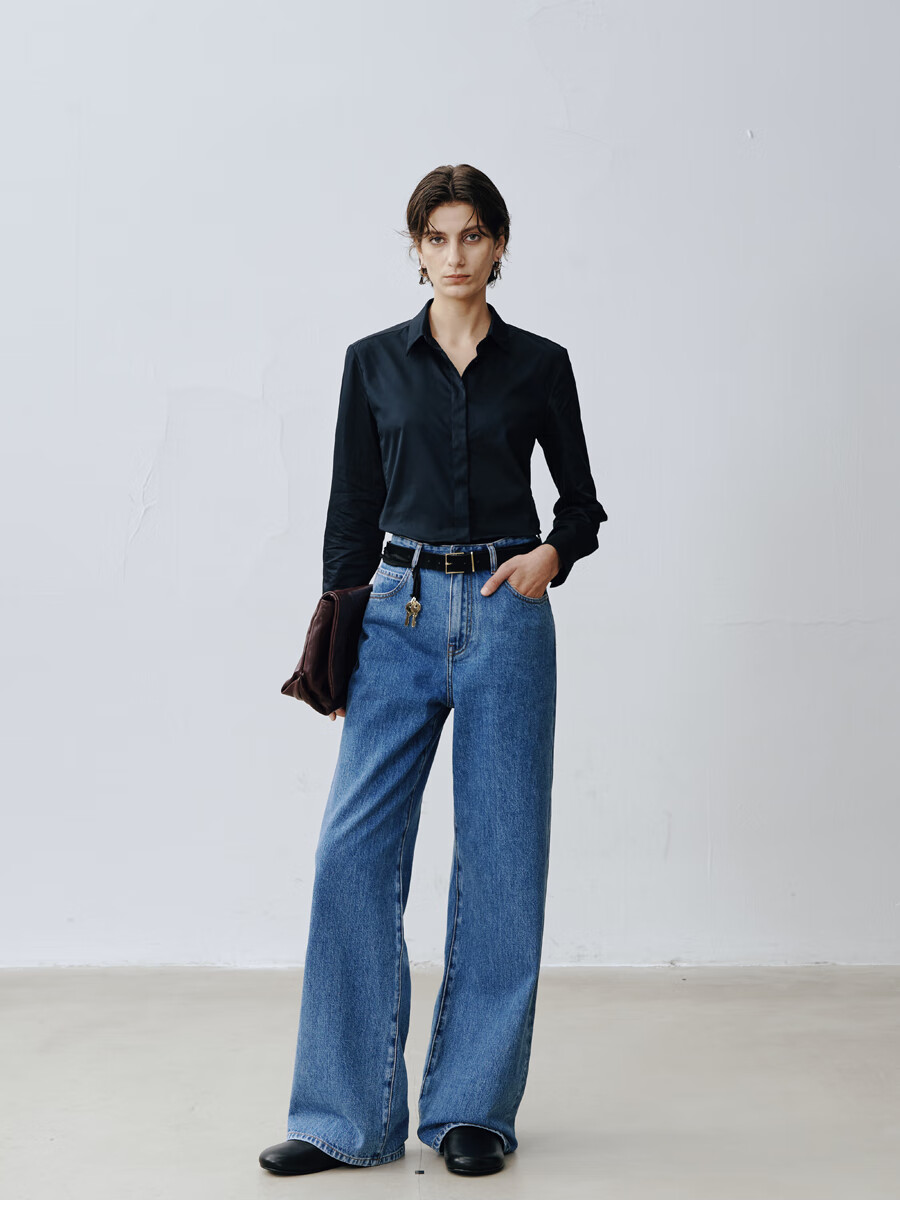 AYUKOAyuko long-termism 80 count long-staple cotton satin weave slightly waist slimming minimalist small version shirt for commuting cloud white-ready stock 48 hours delivery 36