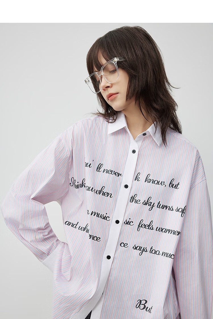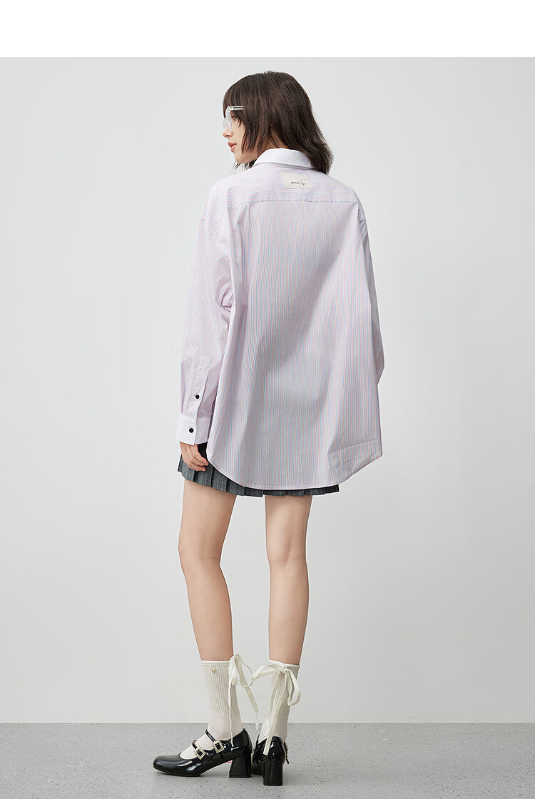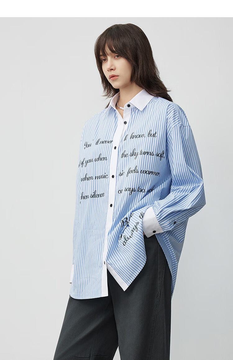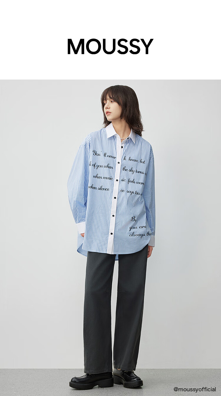 Moussy 2025 autumn new casual style letter printed striped long-sleeved shirt for women 028IAA30-2011 115 pattern blue one size