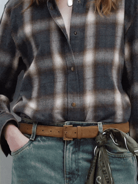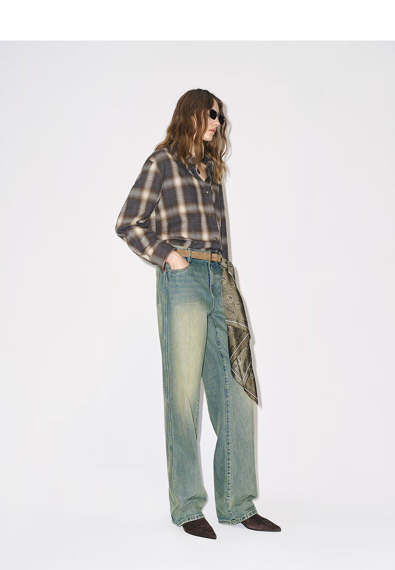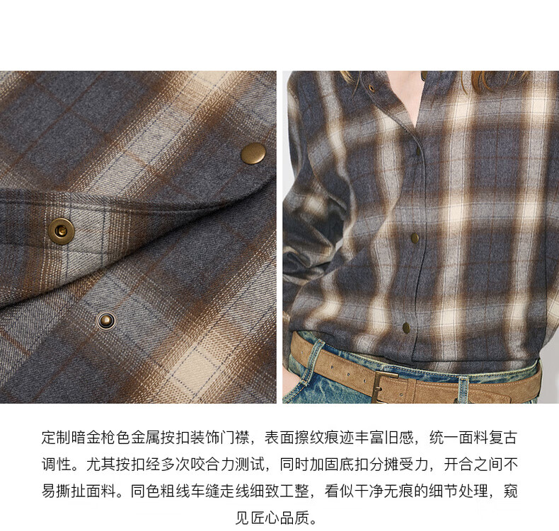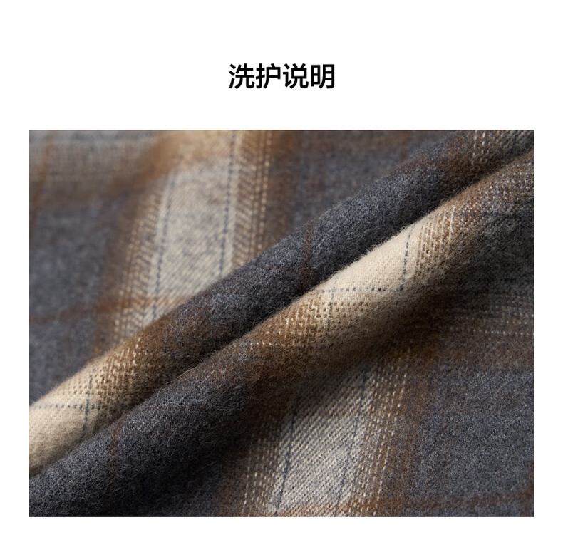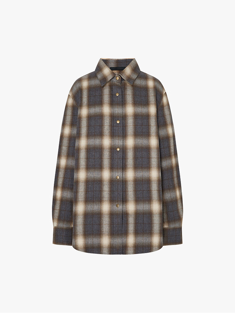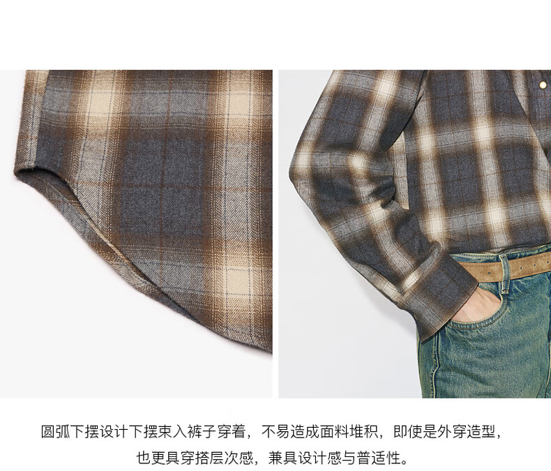 MO&Co. Shirt 2025 Winter New Product Double-sided Brushed Thick Cotton Gradient Plaid Matte Old Feel Unisex MBE4SHT003 Gray Brown Plaid S /160