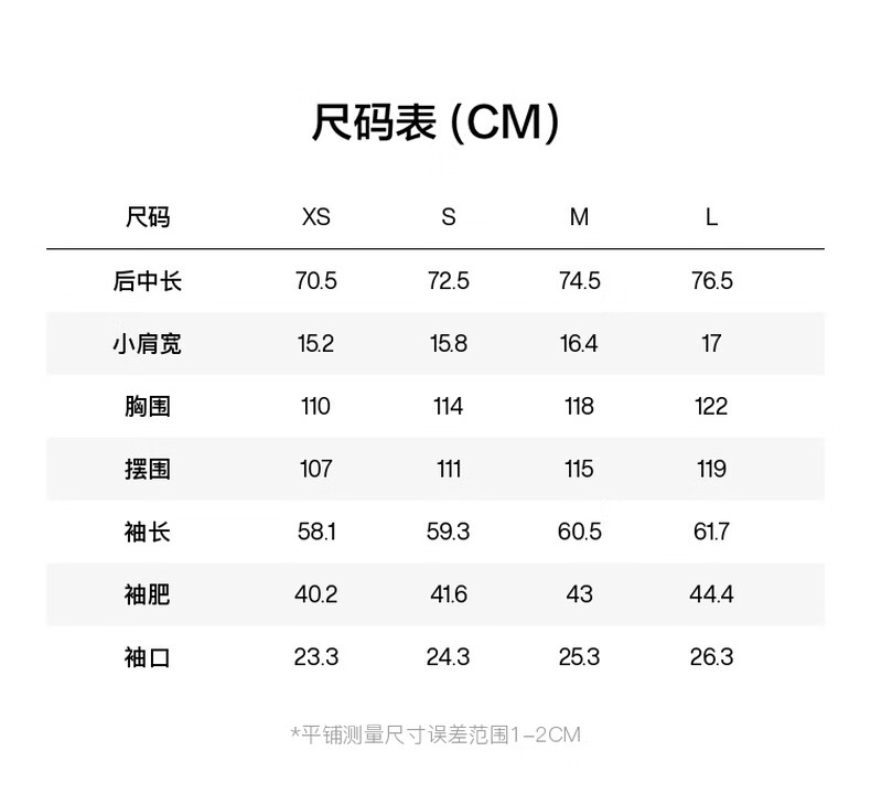 China(cm) 72-76 76-81 81-87 87-93 93-98