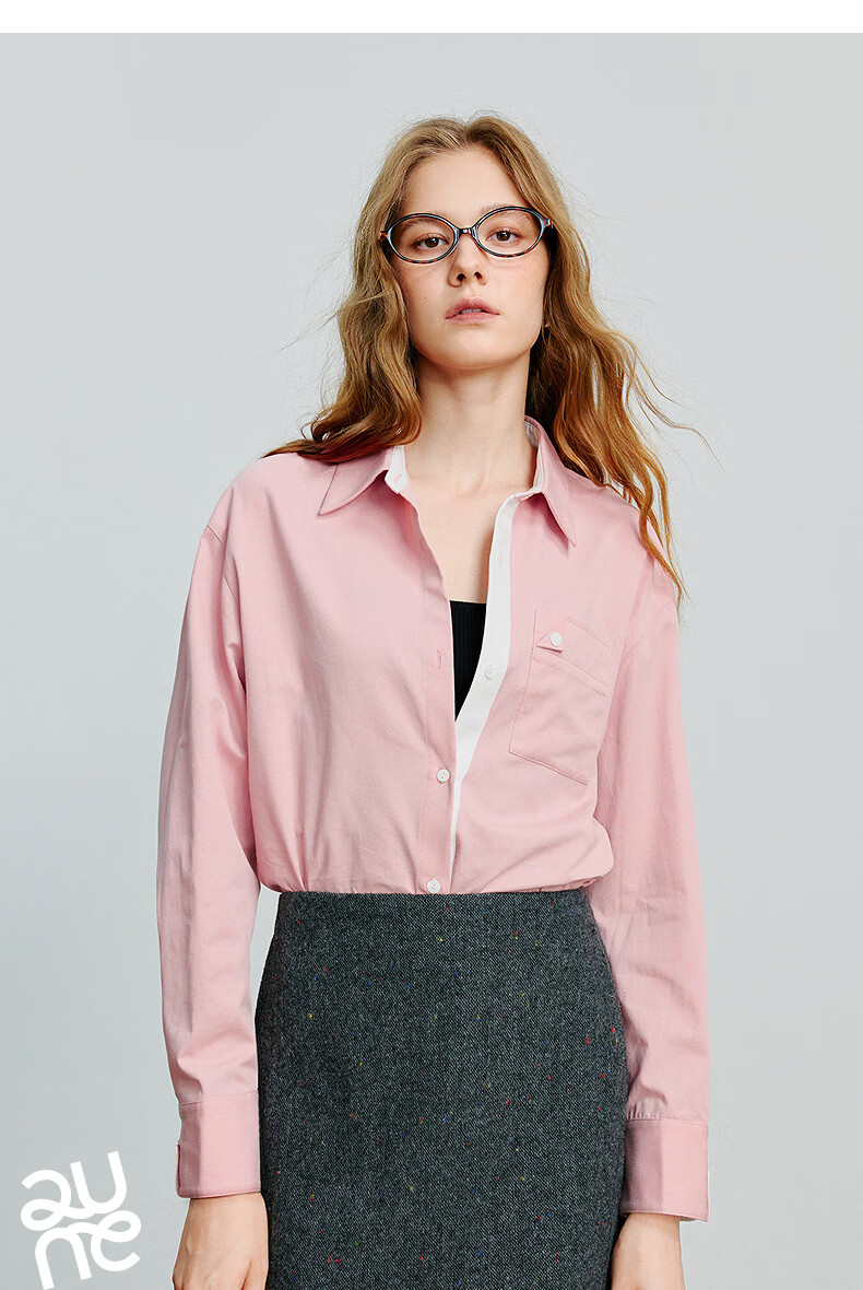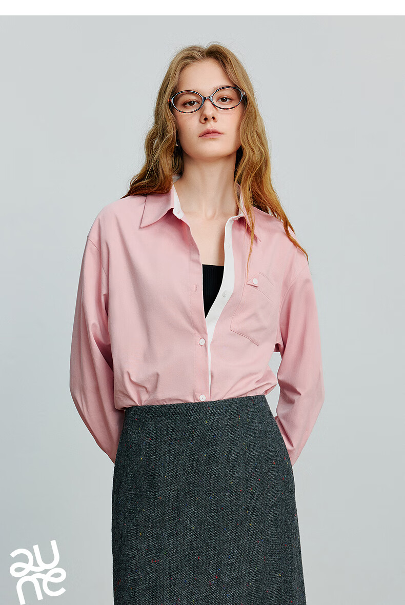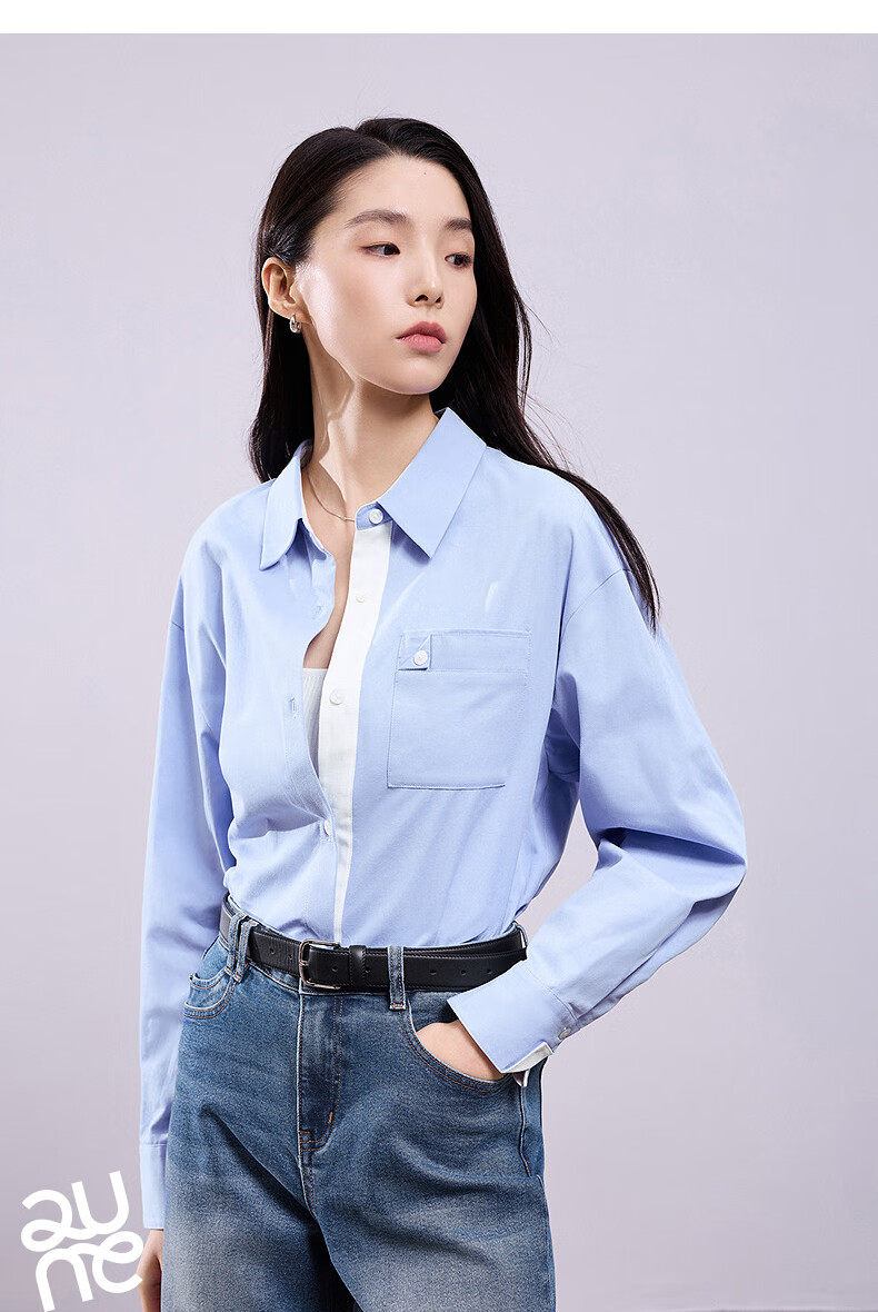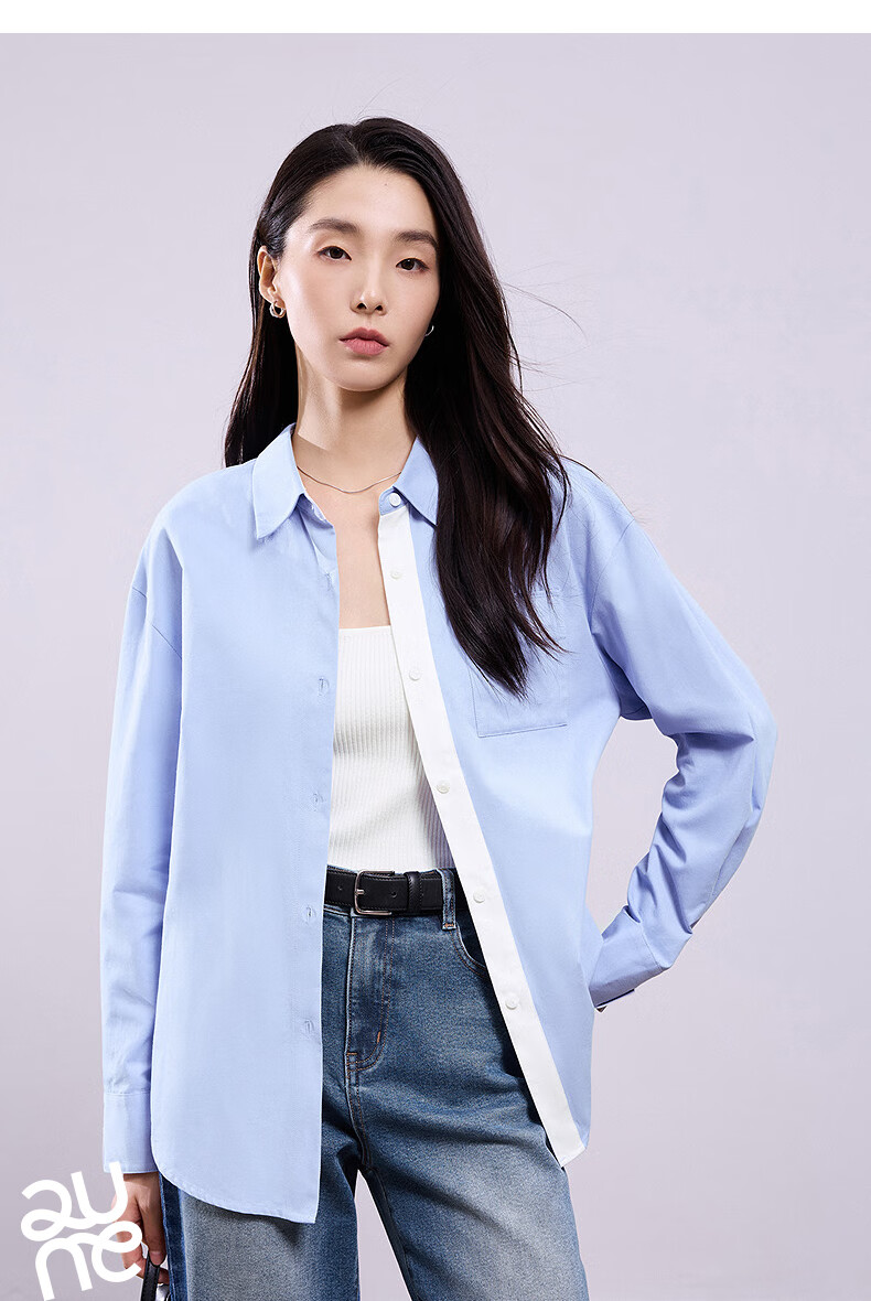 Chuyu Shirt Women's 2025 Autumn New European Style Multi-Color Bottoming Shirt Pure Cotton Versatile Top Sky Blue M