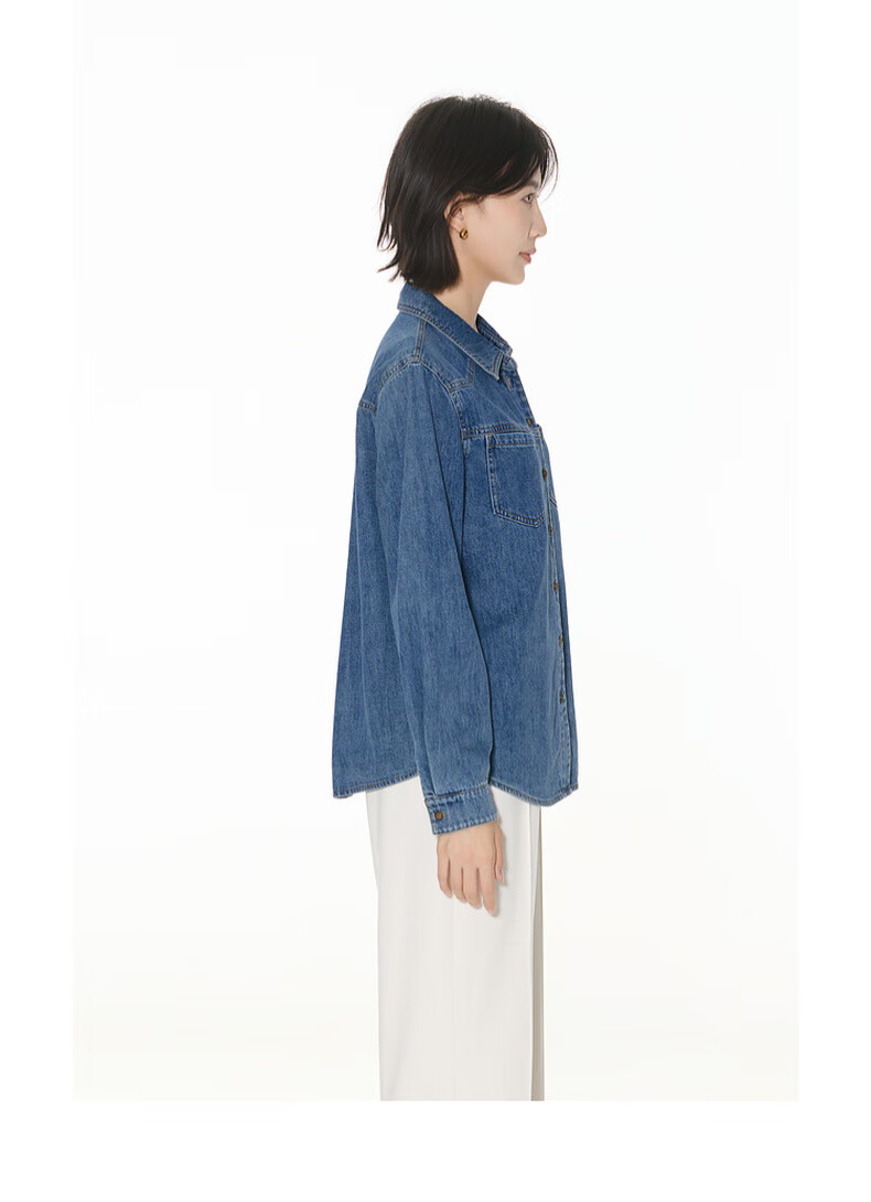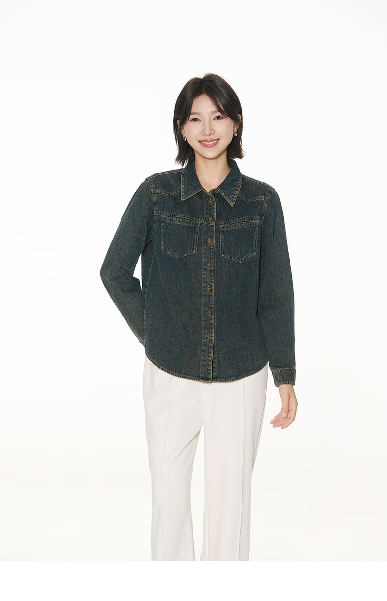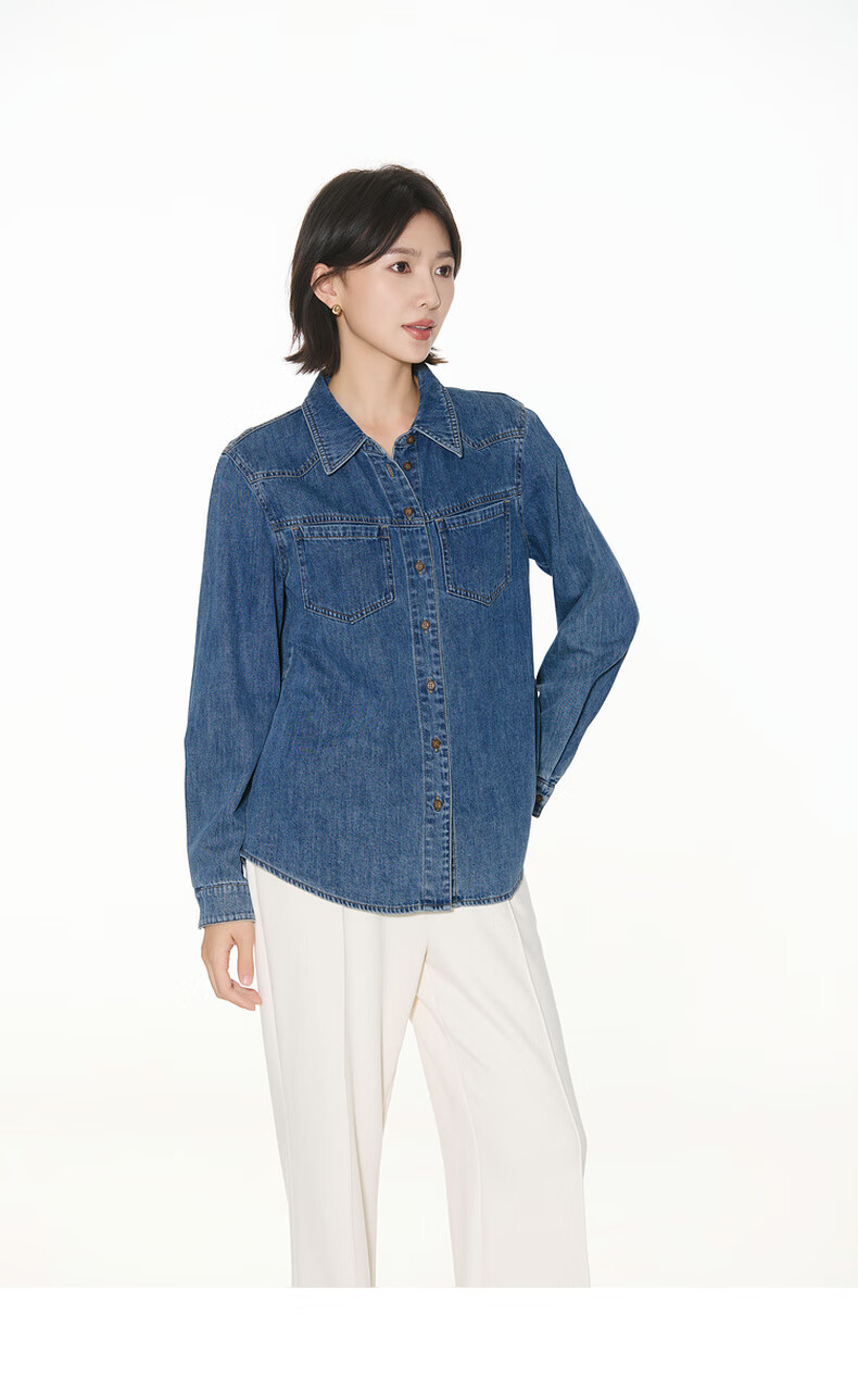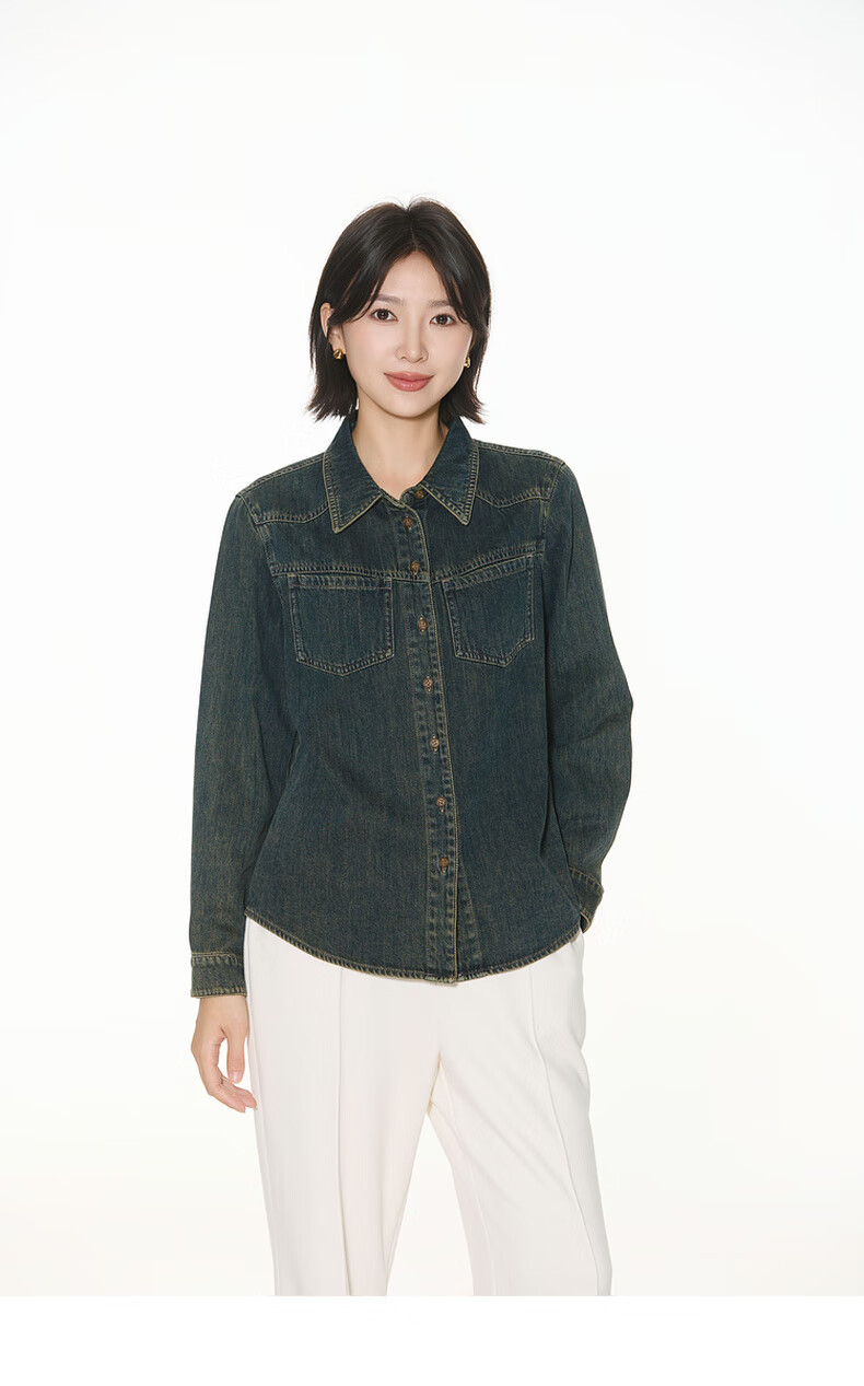 Bagpipe Bagpipe 2025 Autumn New Dark Blue Retro Denim Shirt Women's Layered Small Shoulder Soft Top Denim Lan M 160