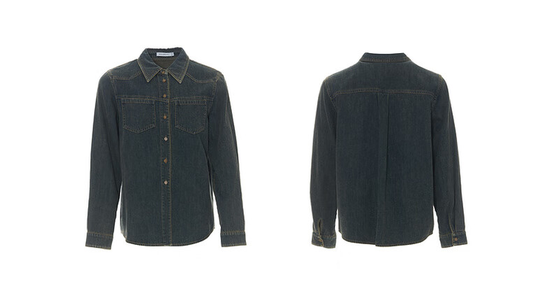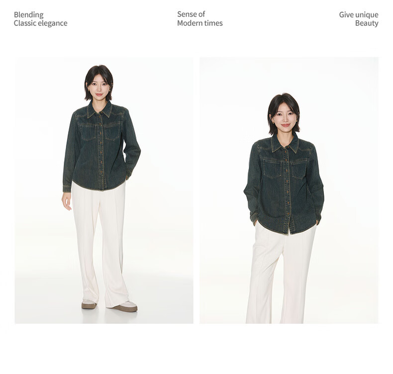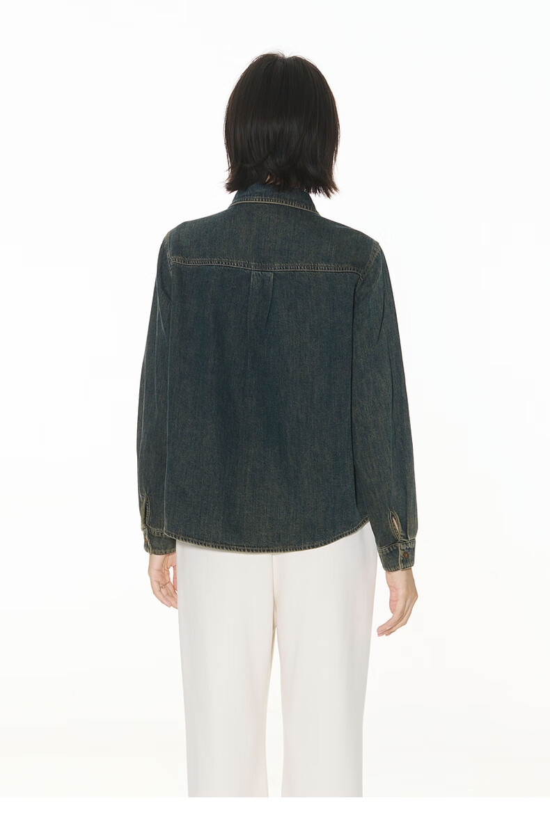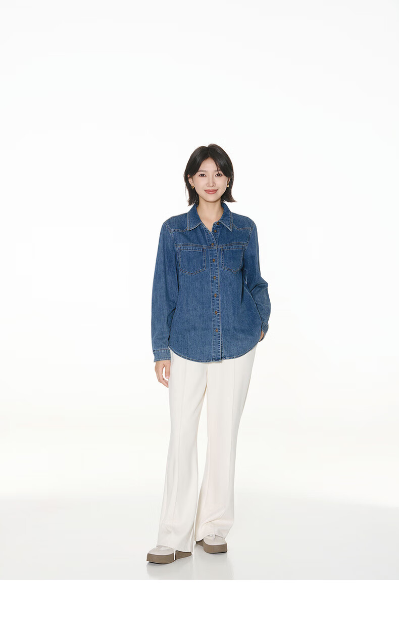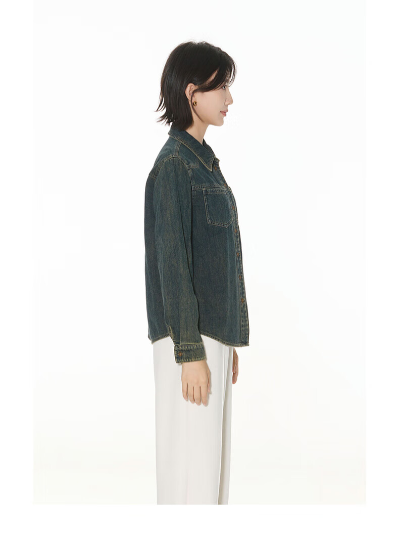 Bagpipe Bagpipe 2025 Autumn New Dark Blue Retro Denim Shirt Women's Layered Small Shoulder Soft Top Denim Lan M 160
