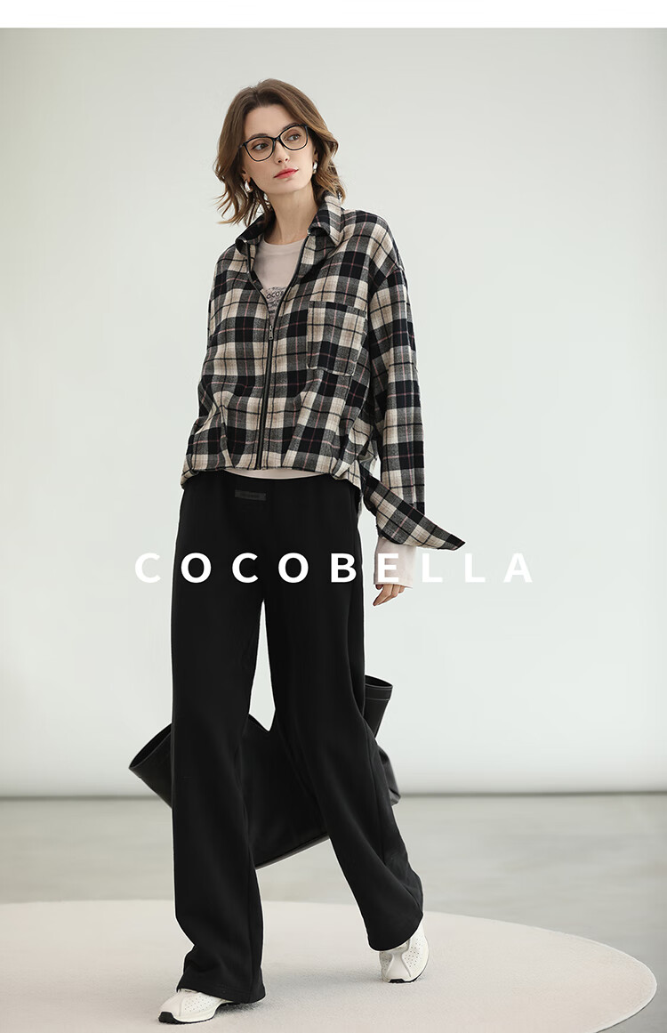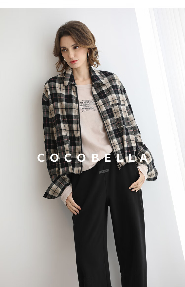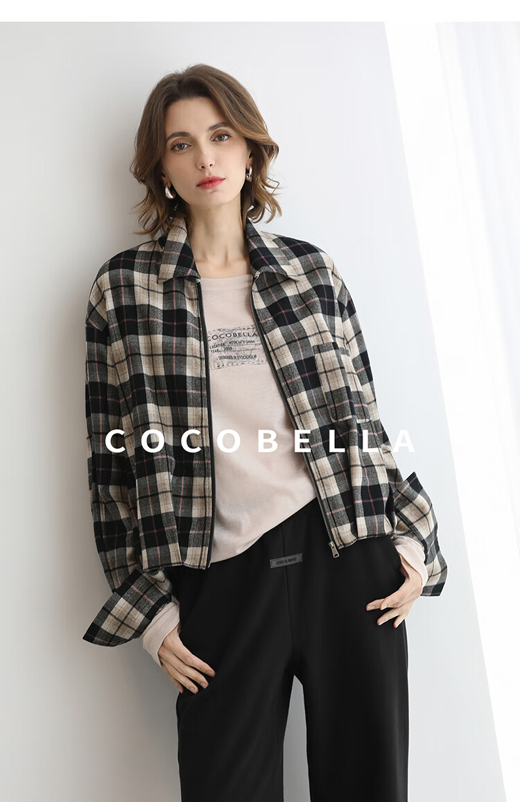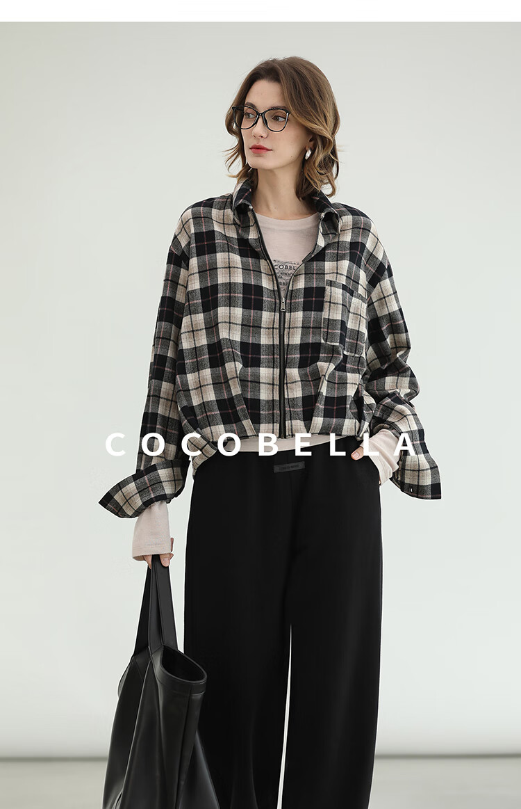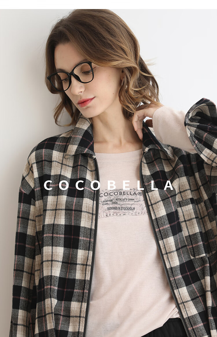 COCOBELLA25 Early Autumn New Cotton Plaid Shirt Women's Commuting Casual Fashion Jacket SR3230 Color Black Plaid M