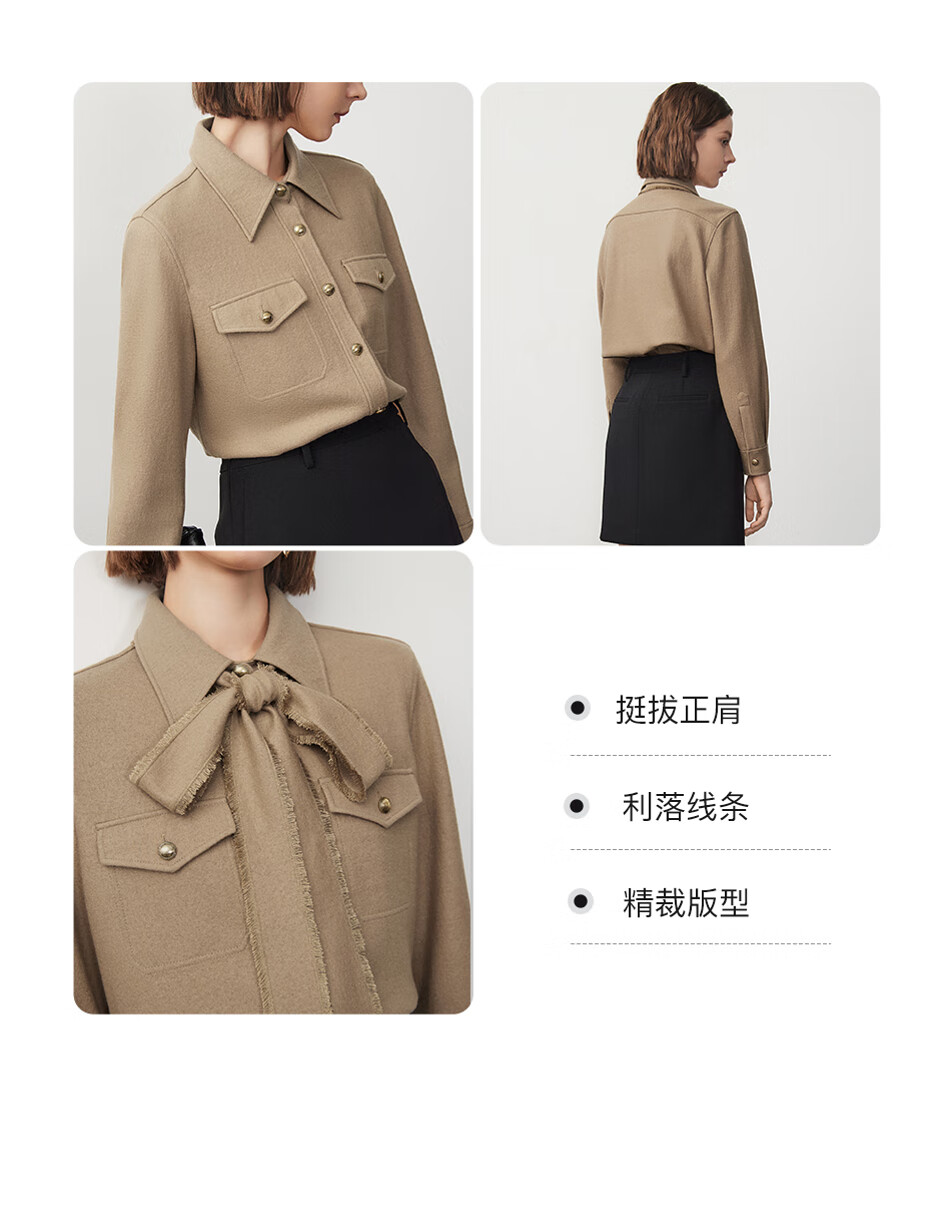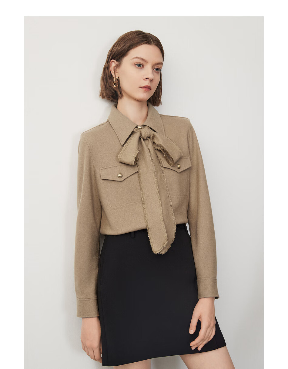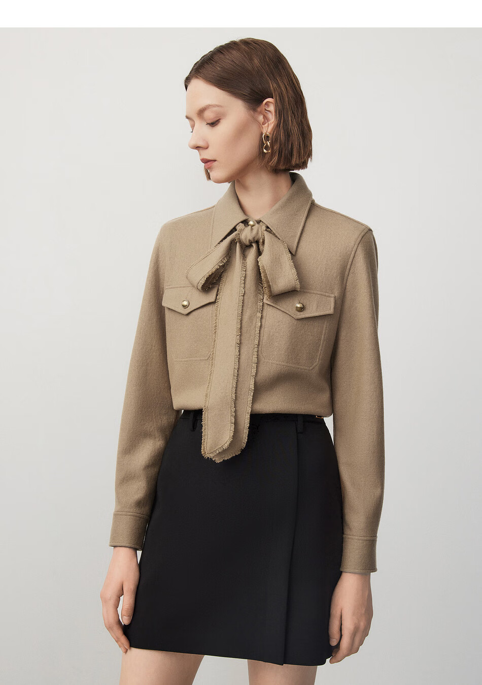 Langzi pure wool design detachable streamer shirt top winter new long-sleeved commuter shirt light beige 2XL