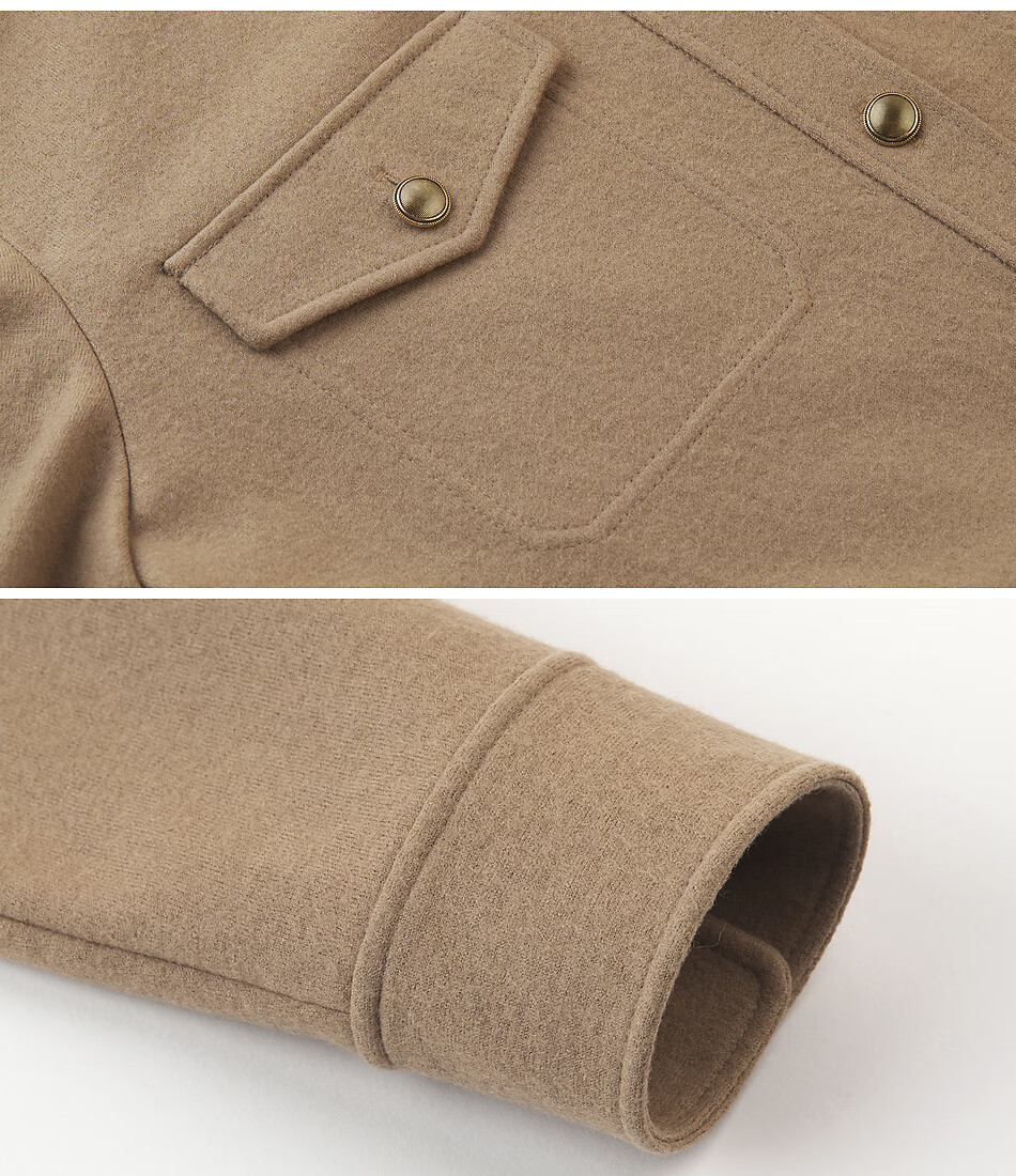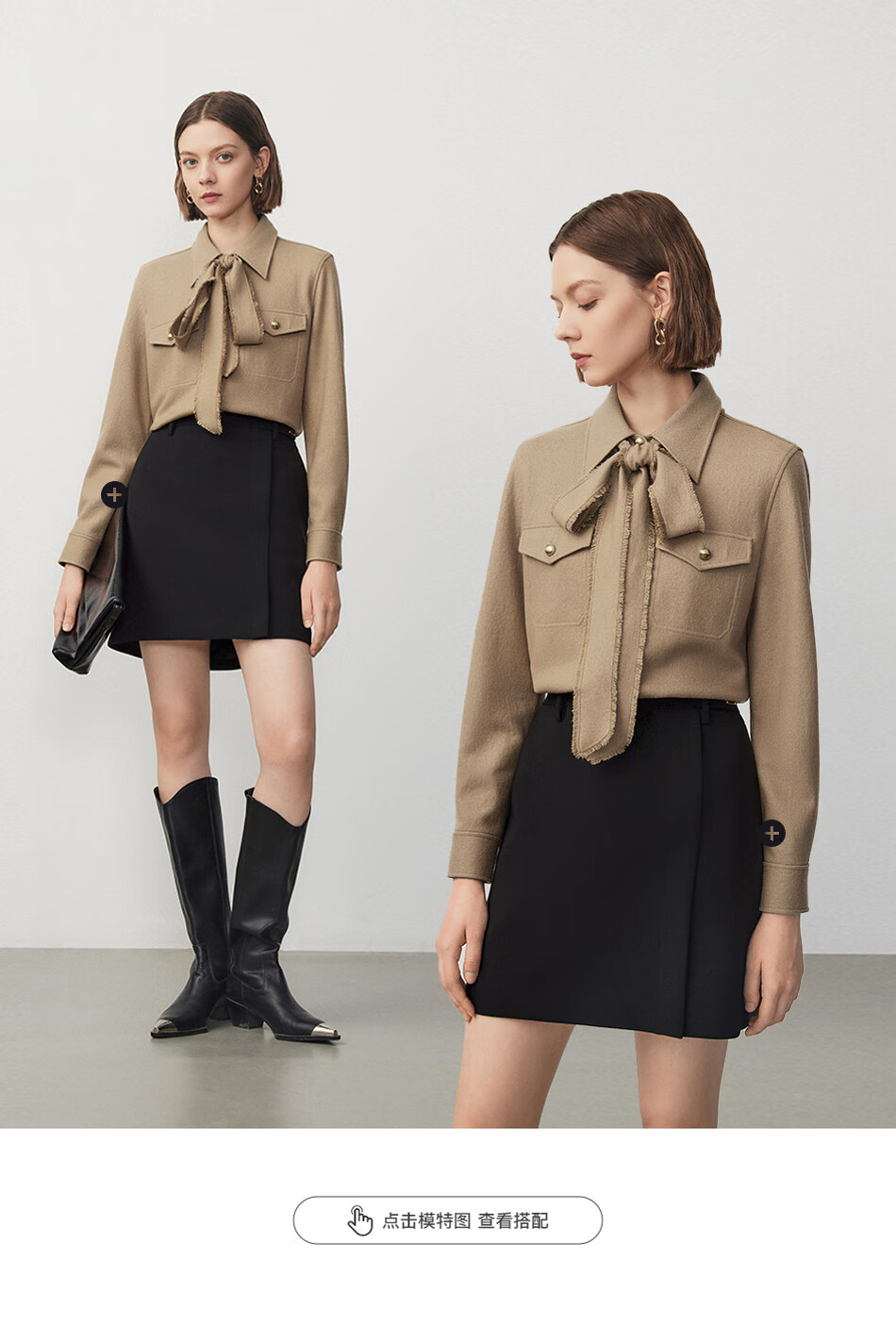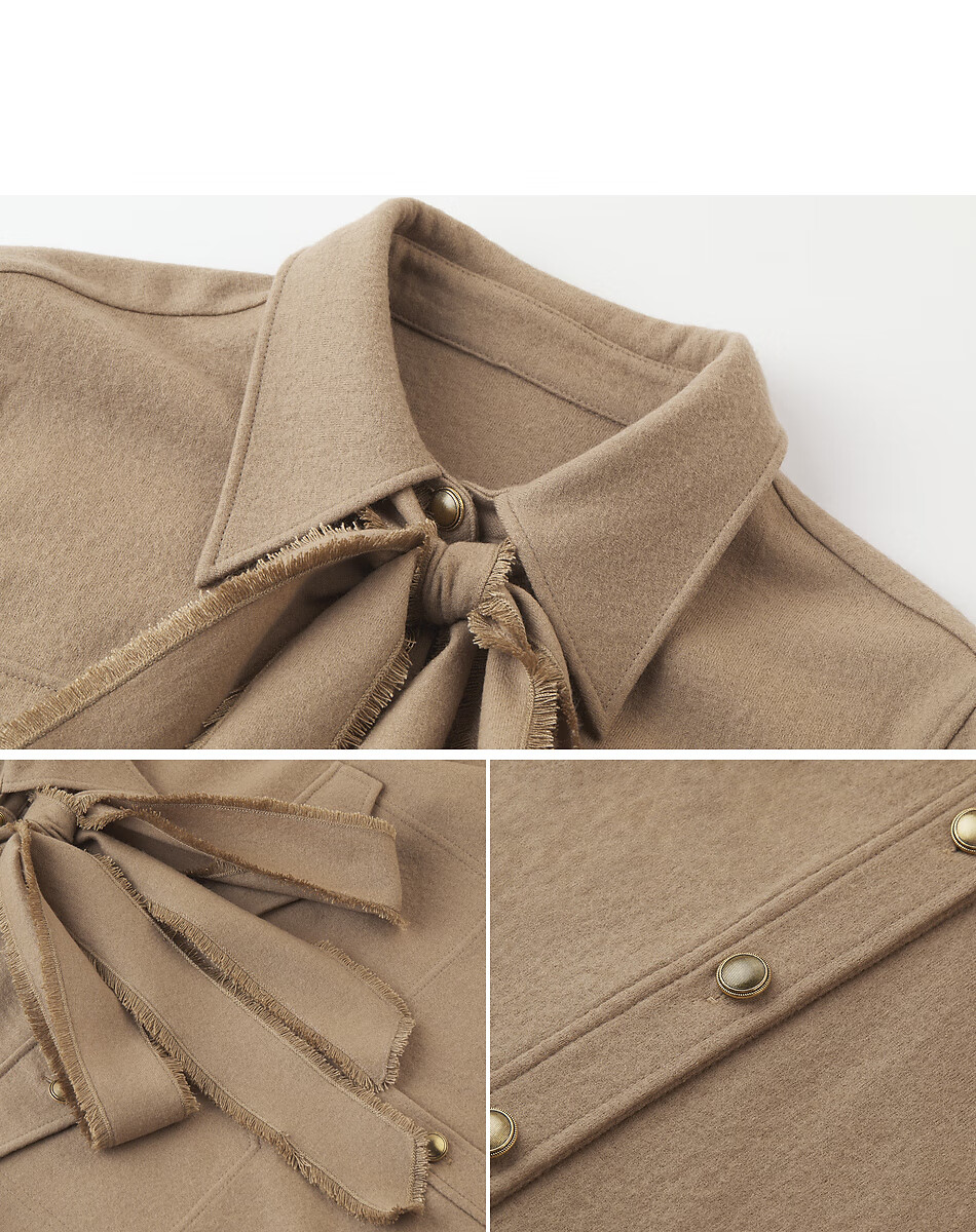 Langzi pure wool design detachable streamer shirt top winter new long-sleeved commuter shirt light beige 2XL