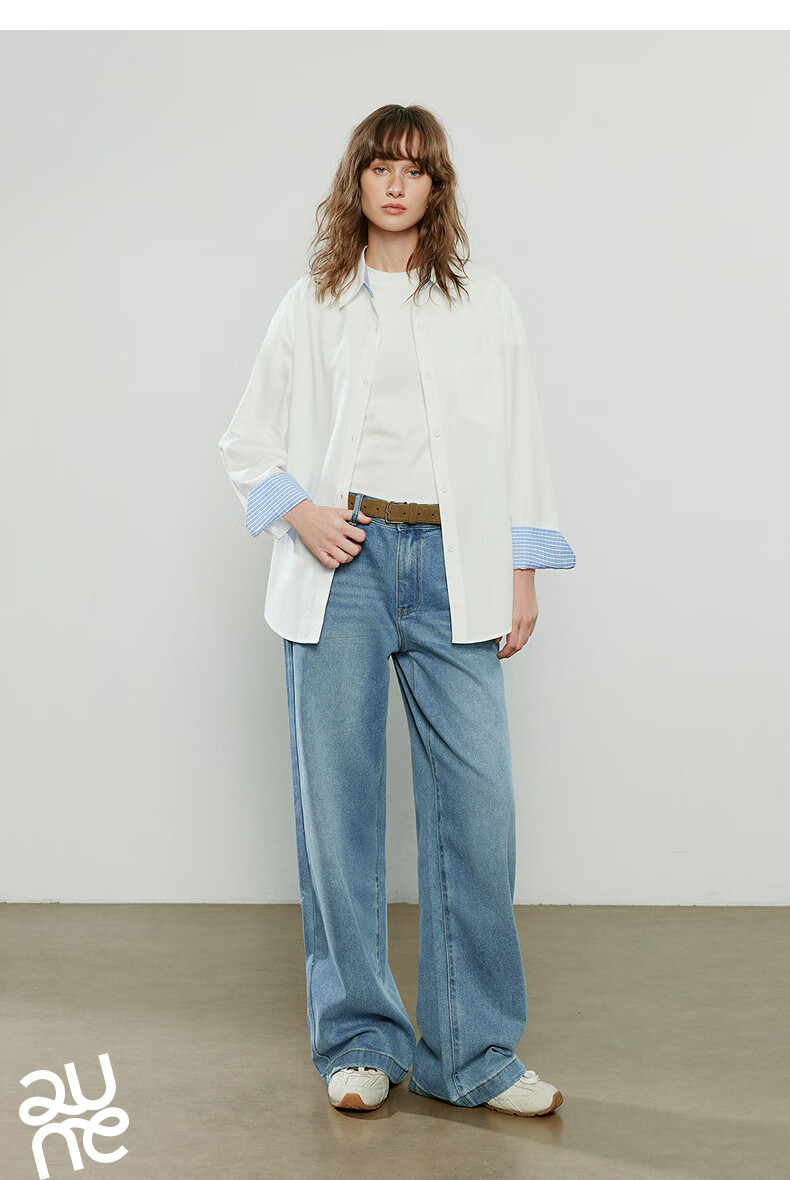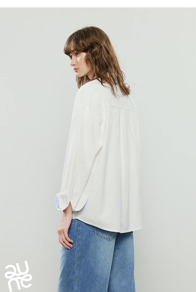 Chuyu pure cotton long-sleeved shirt for women 2025 autumn new style stitching plaid design niche shirt commuting top off-white L