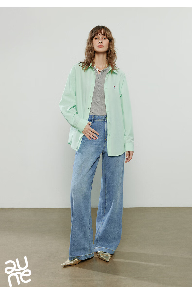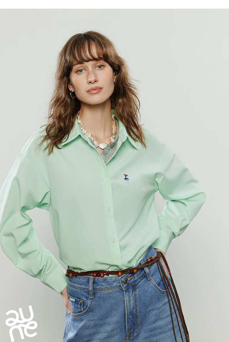 Chuyu Shirt Women's 2025 Autumn New Creative Small Embroidery Fresh European Style Inner Shirt Casual Top Haiyun Blue M