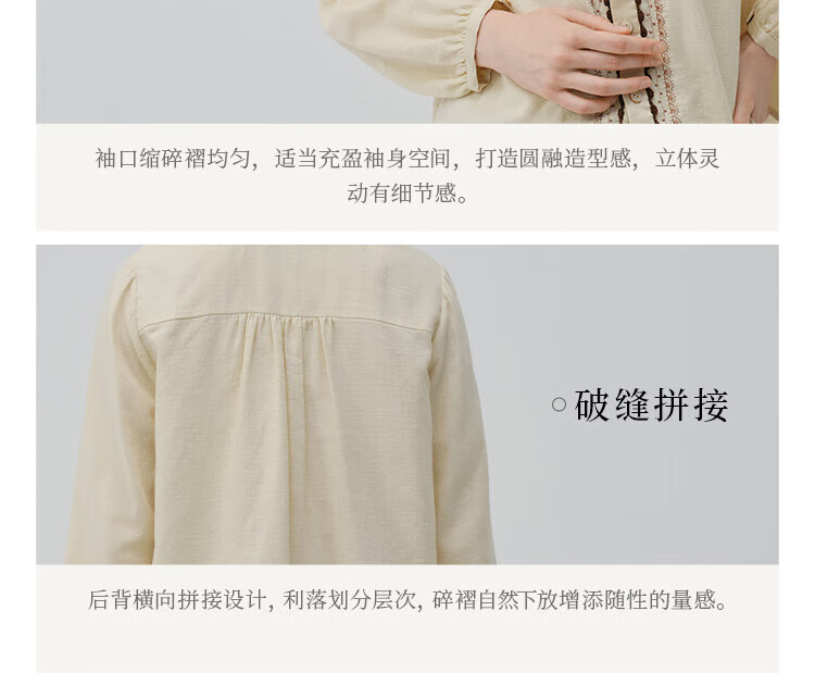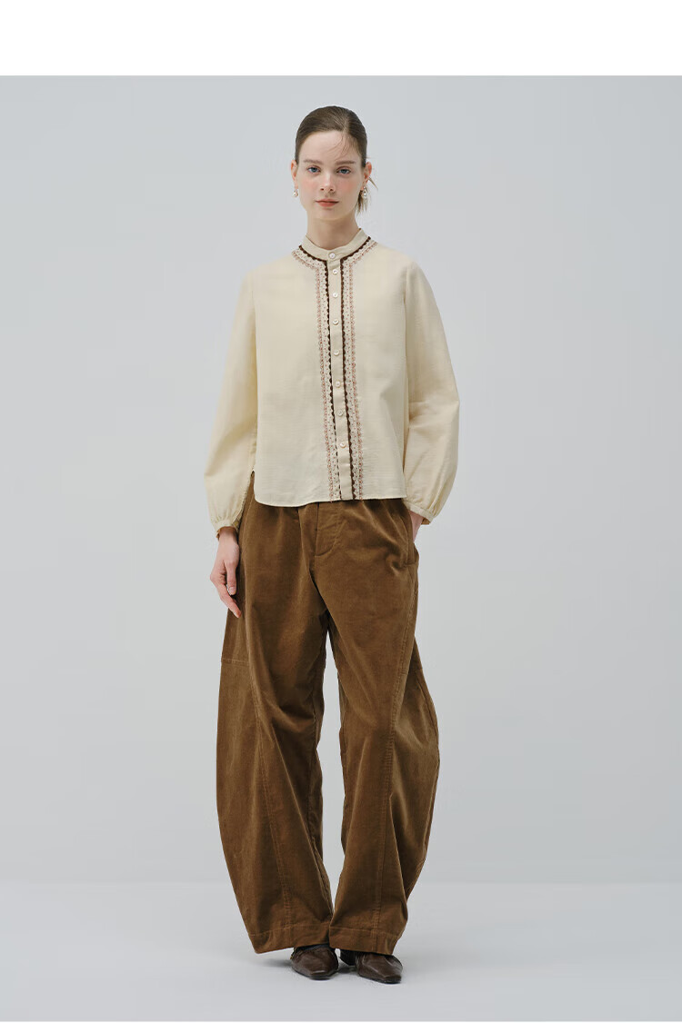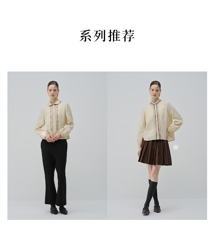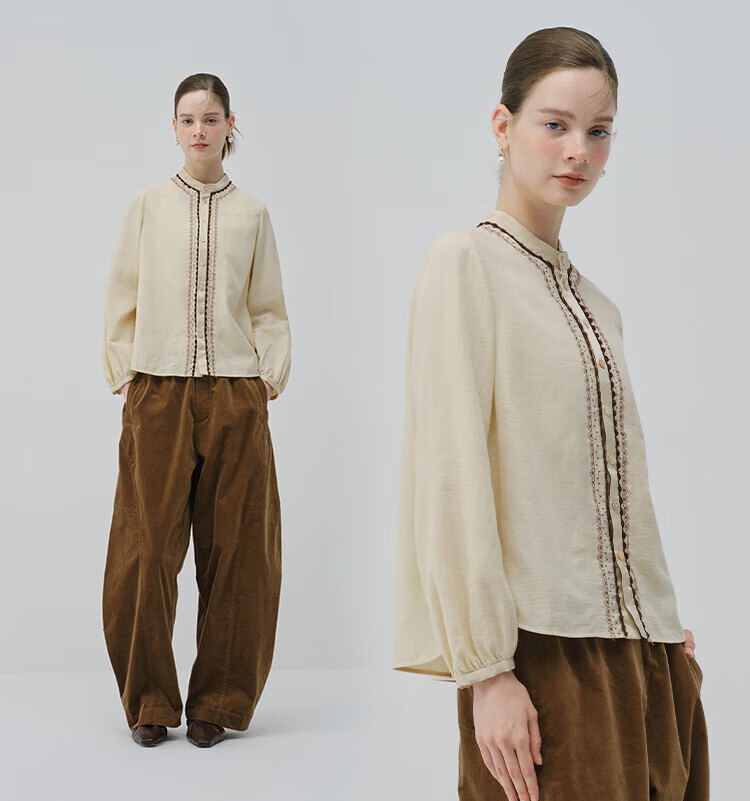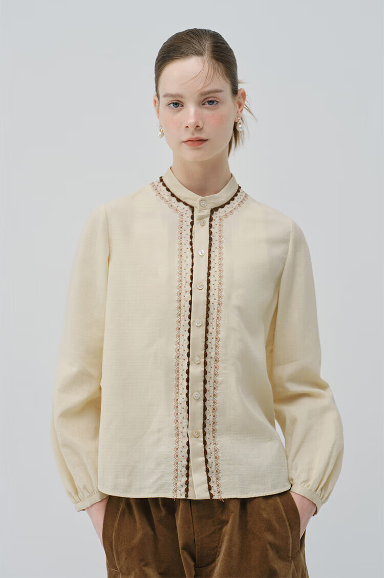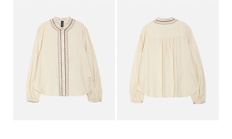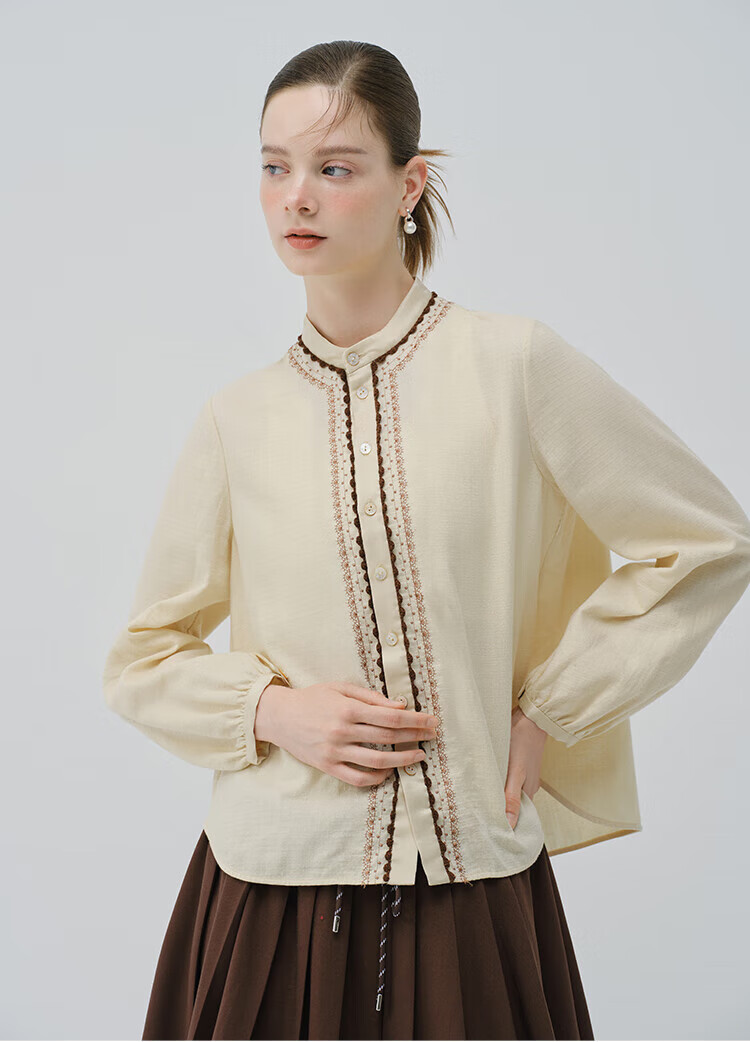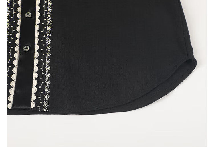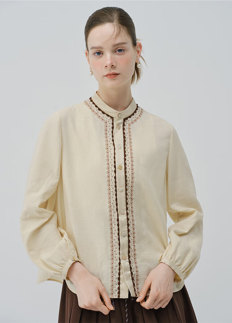 PURE TEA Shopping mall same style puretea tea artistic French stand collar peony flower embroidered shirt for women 2025 winter new graphite black S