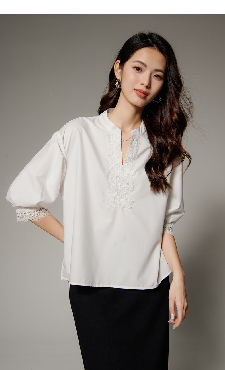 Late White New Product 2025 Autumn Generous Top Chic Versatile Fashion Temperament Skin Friendly Commuting Shirt Women White M