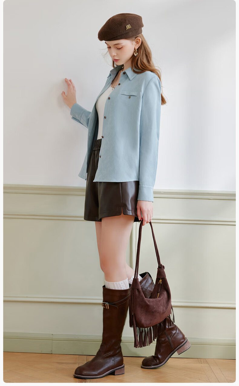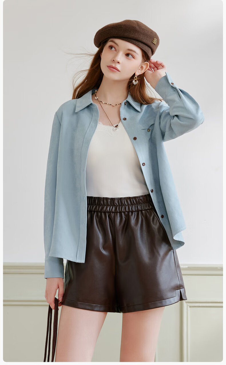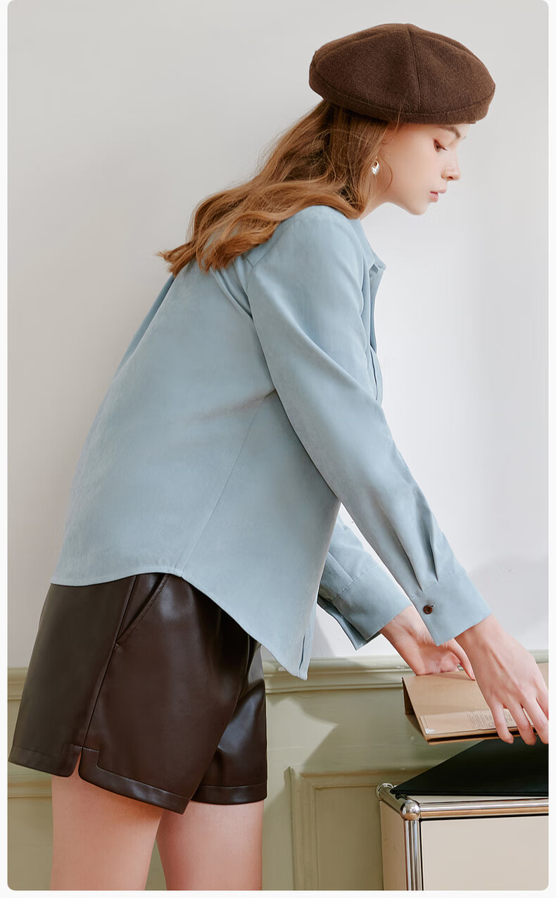 Xiangying blue lapel shirt for women 2025 winter new style velvet right shoulder light workplace commuting loose long-sleeved shirt Route Blue L 165/88A/110-125Jin Jin is equal to 0.5 kg