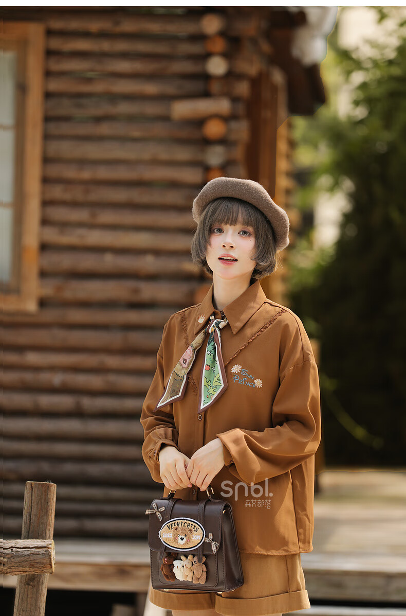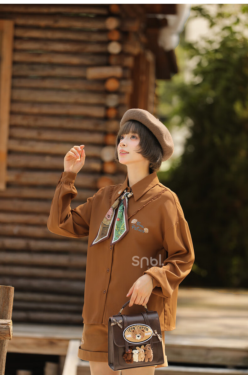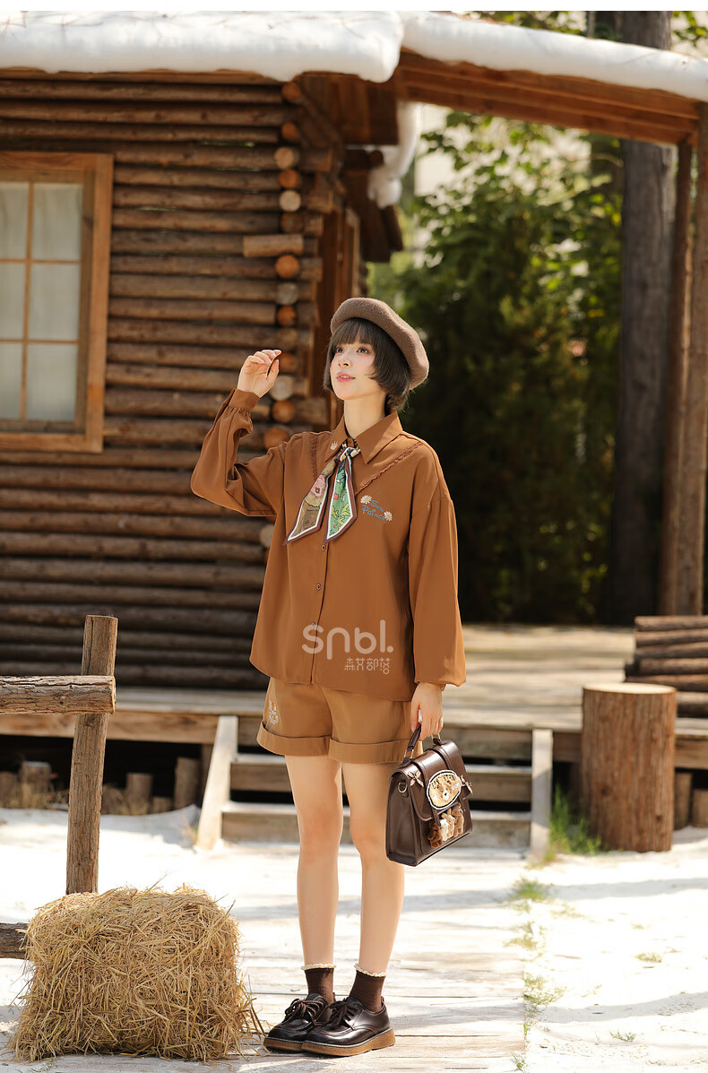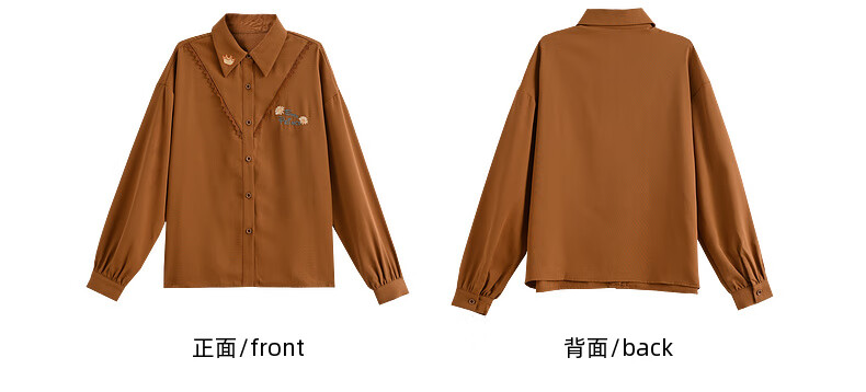 Mori Girl Tribe Autumn and Winter Loose Long Sleeve Shirt Women 2025 New Retro Embroidery Design Versatile Commuting Top Brown Shirt S Model Code