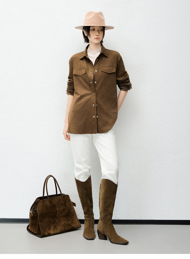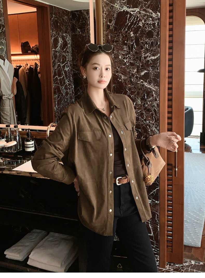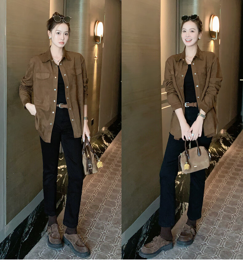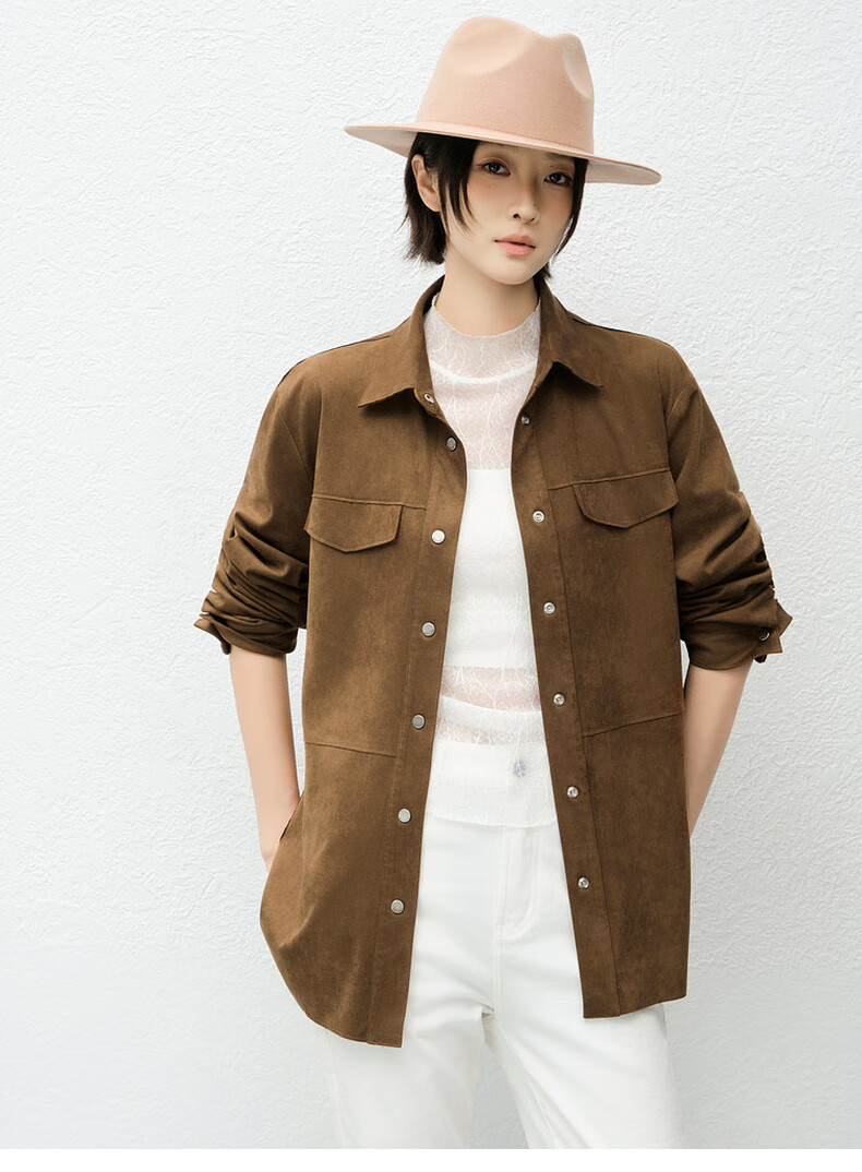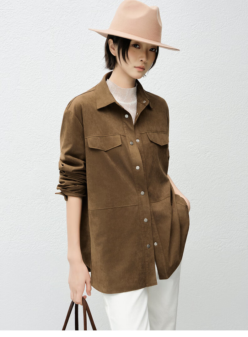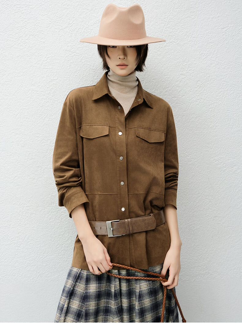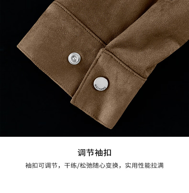 MEIYANG Makino Shirt Amber Streamer Mist Suede Lapel Button-Down Shirt Loose Fashionable Winter New Style Camel M
